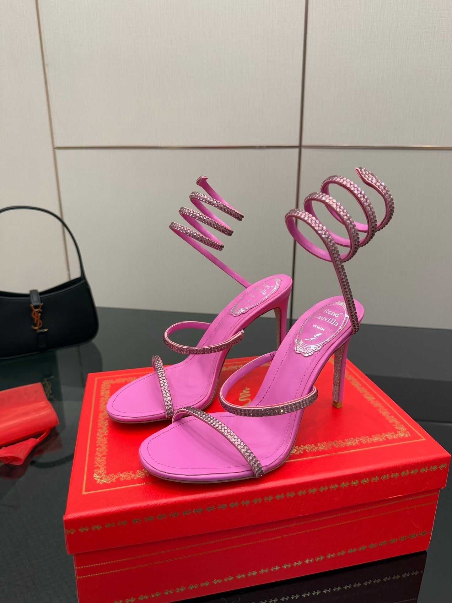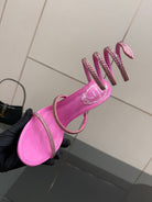 RC Sandals 9.5cm Dark Pink Silk Creole Crystal Diamond 302607