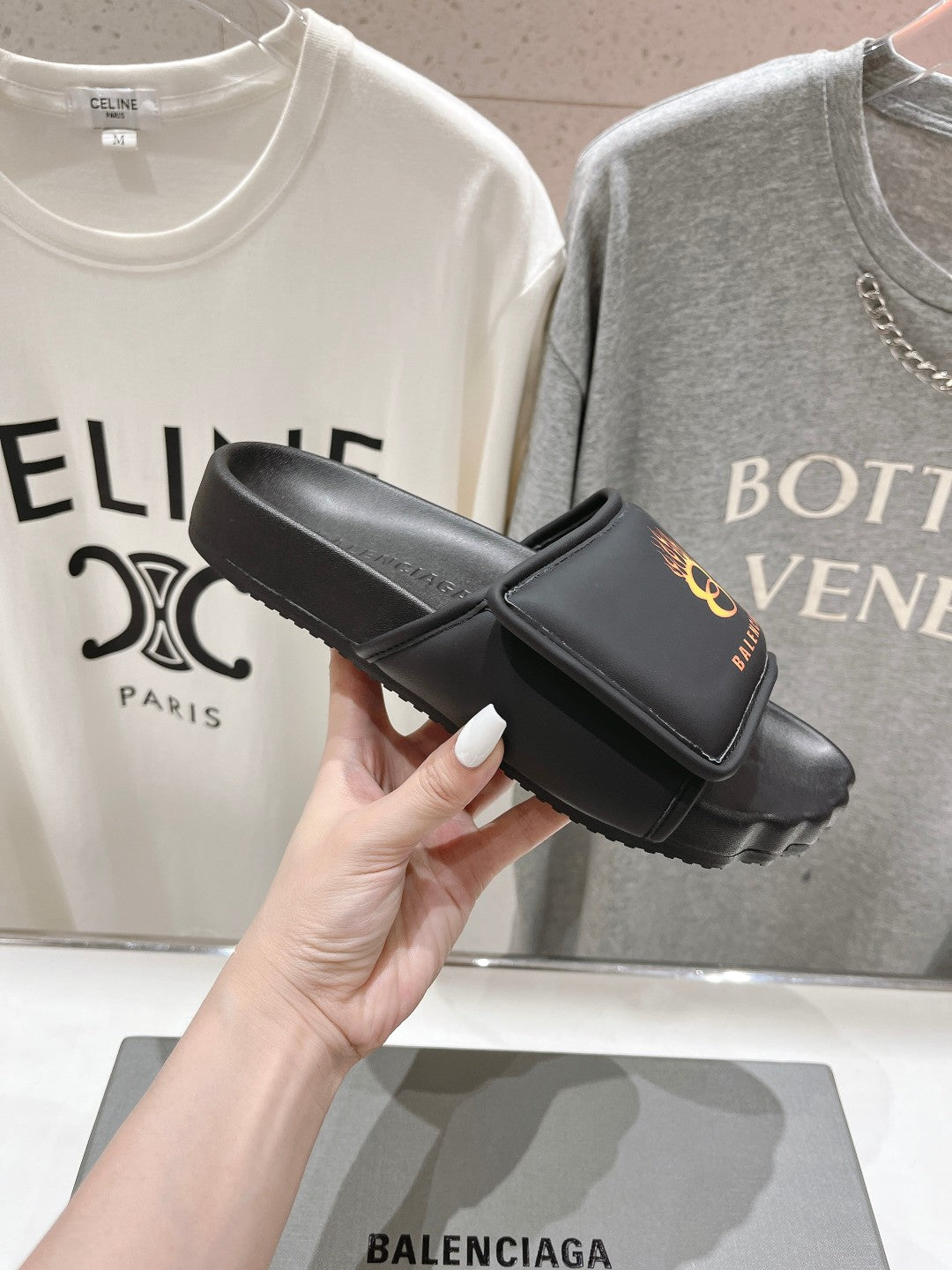 SLIDE SANDALS IN BLACK NYLON AND RUBBER YELLOW PRINT