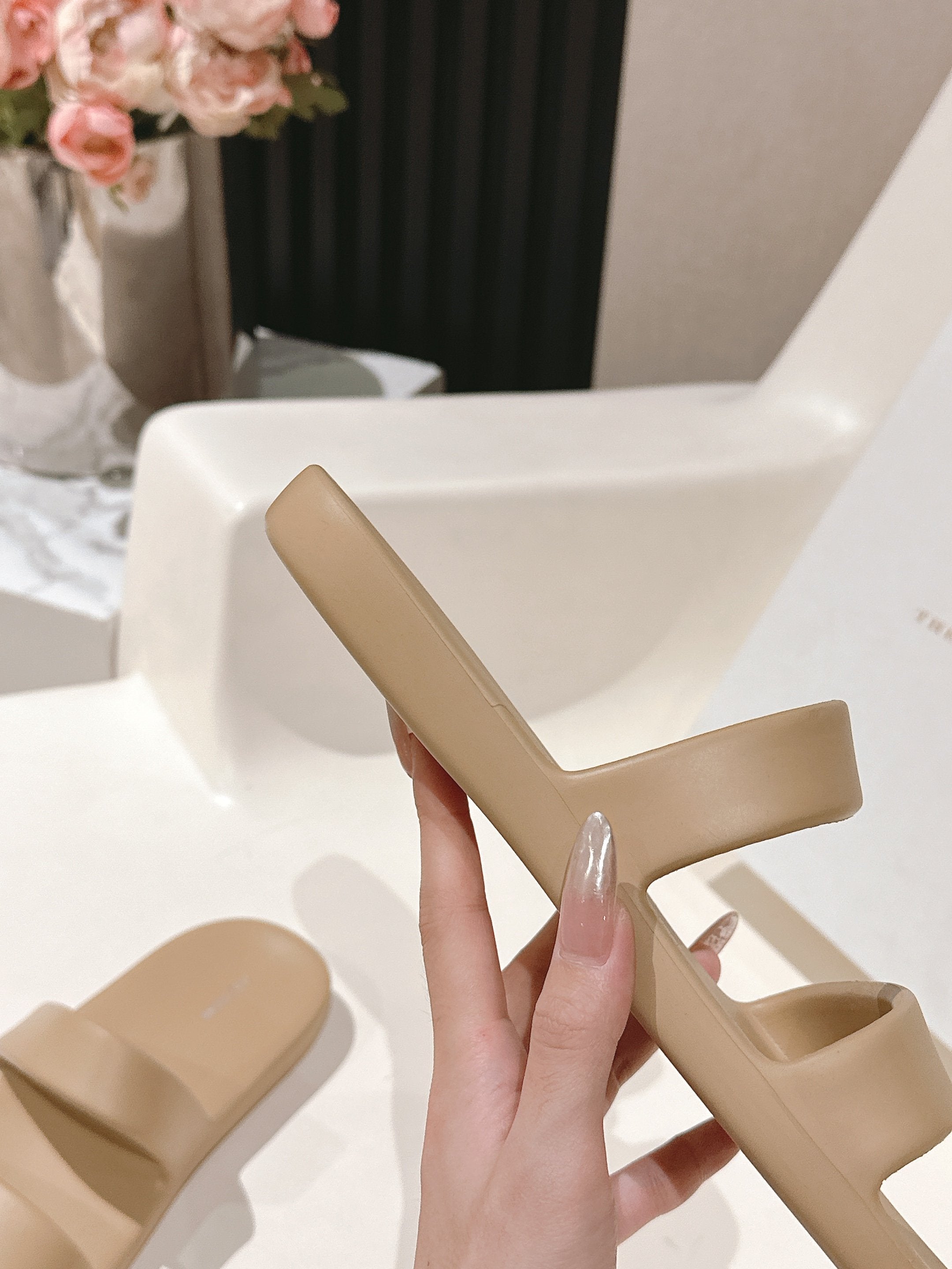 The Row 25s Foam Sandal In Beige Rubber 340609