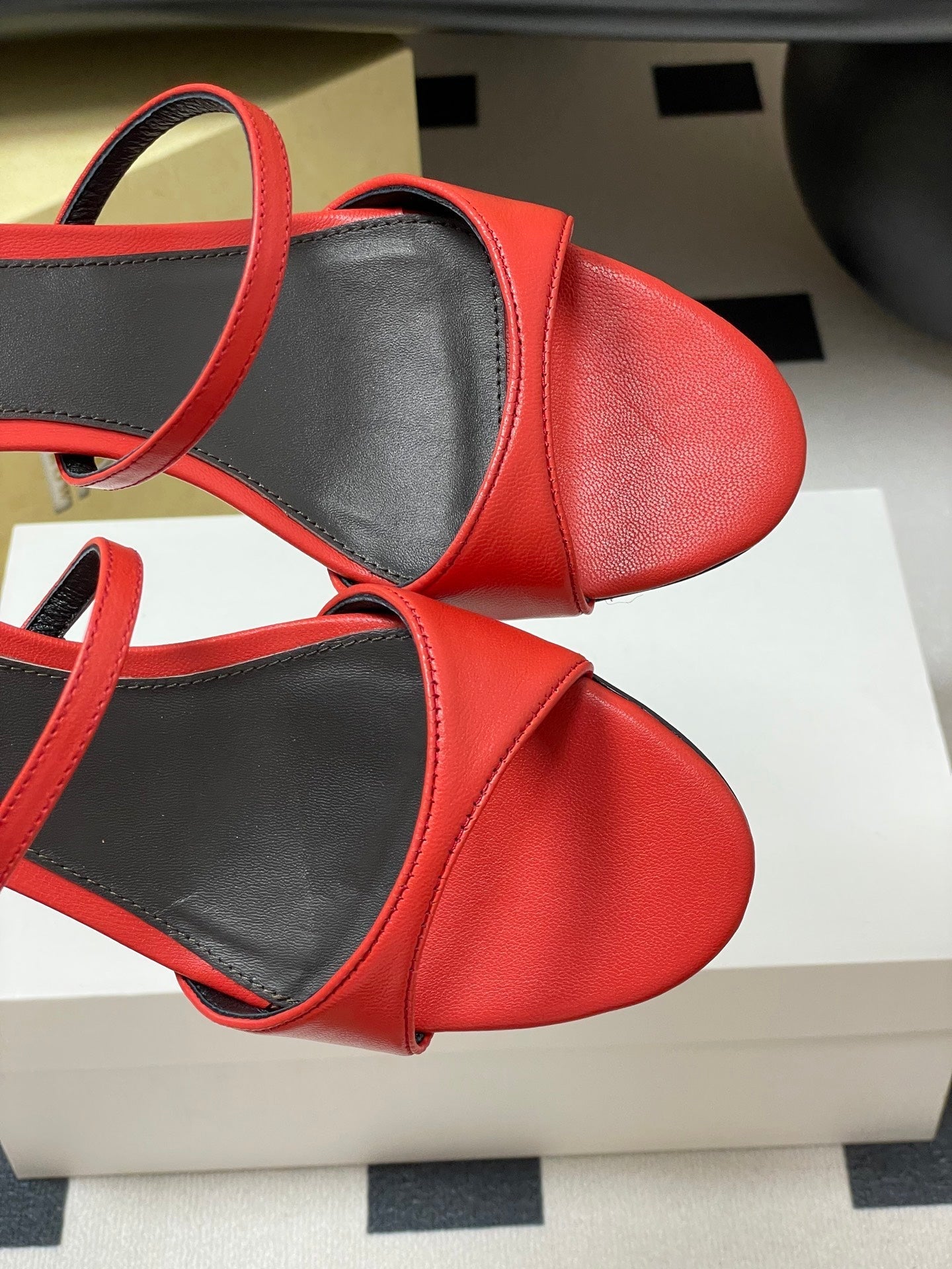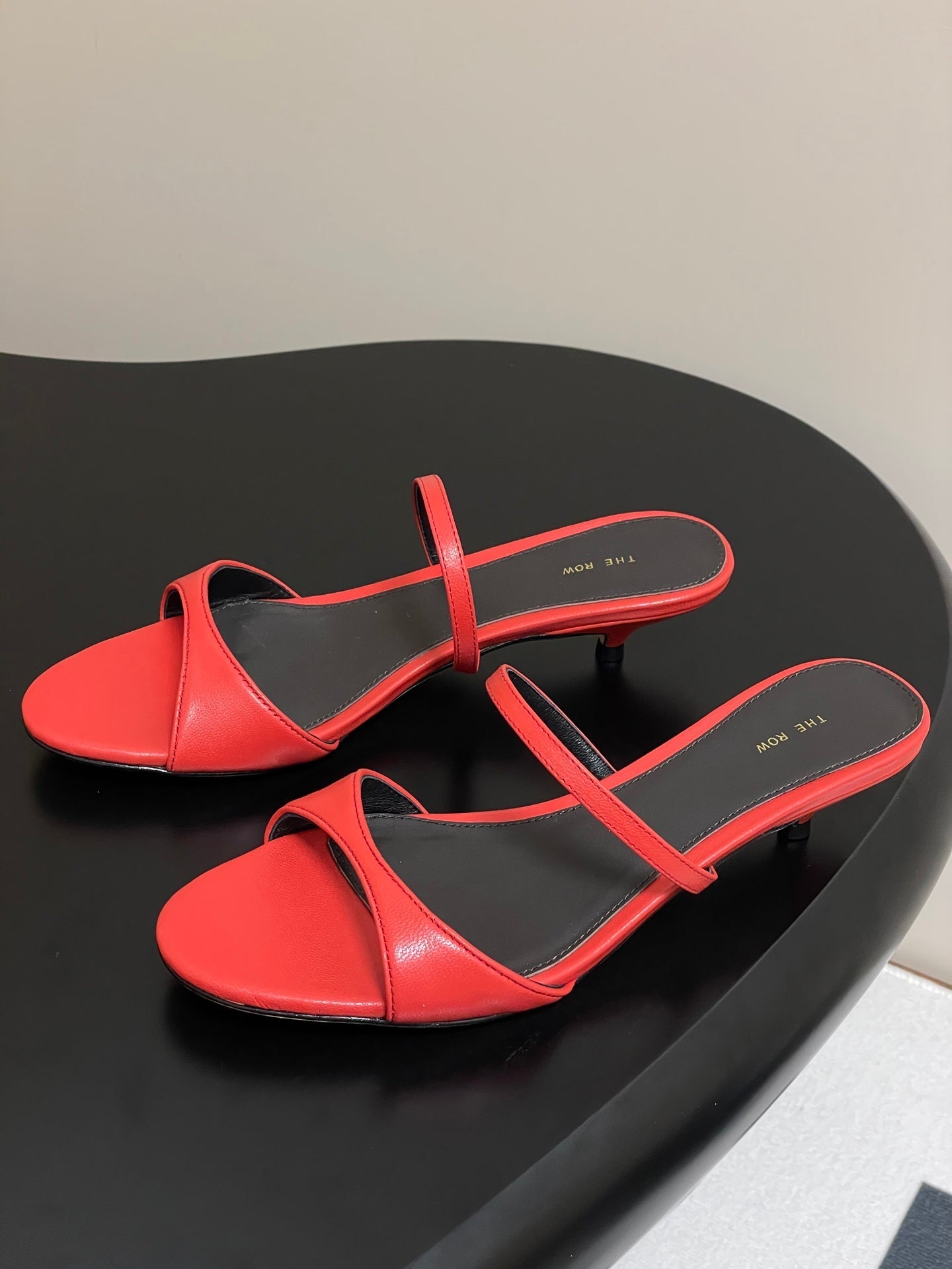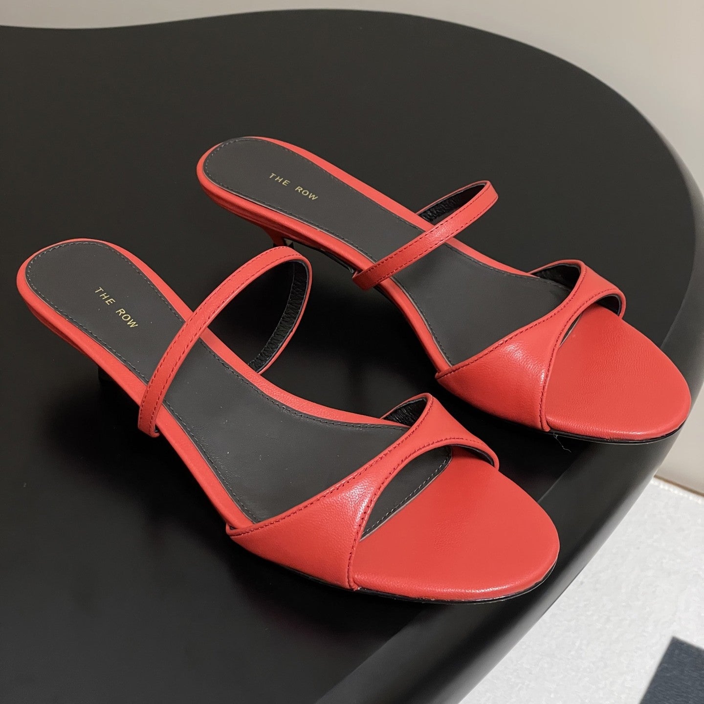 The Row 25S Strap High Heel Mule Sandals 35mm Red Sheepskin 286214