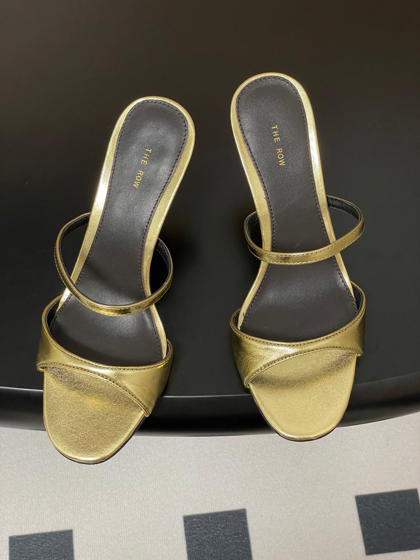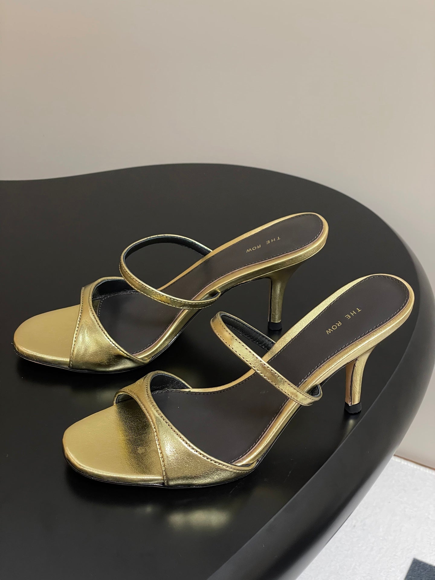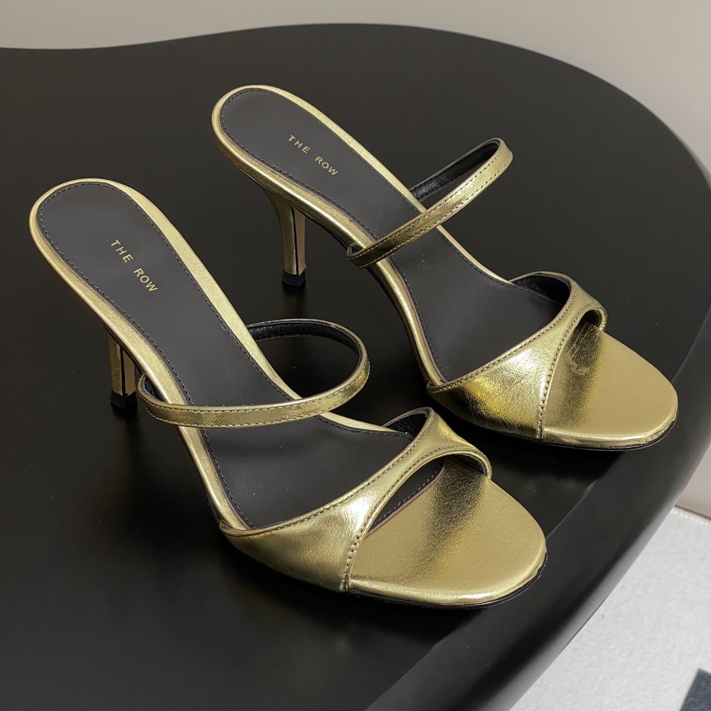 The Row 25S Strap High Heel Mule Sandals 85mm Black Mix Gold Metallic Cowhide 286210