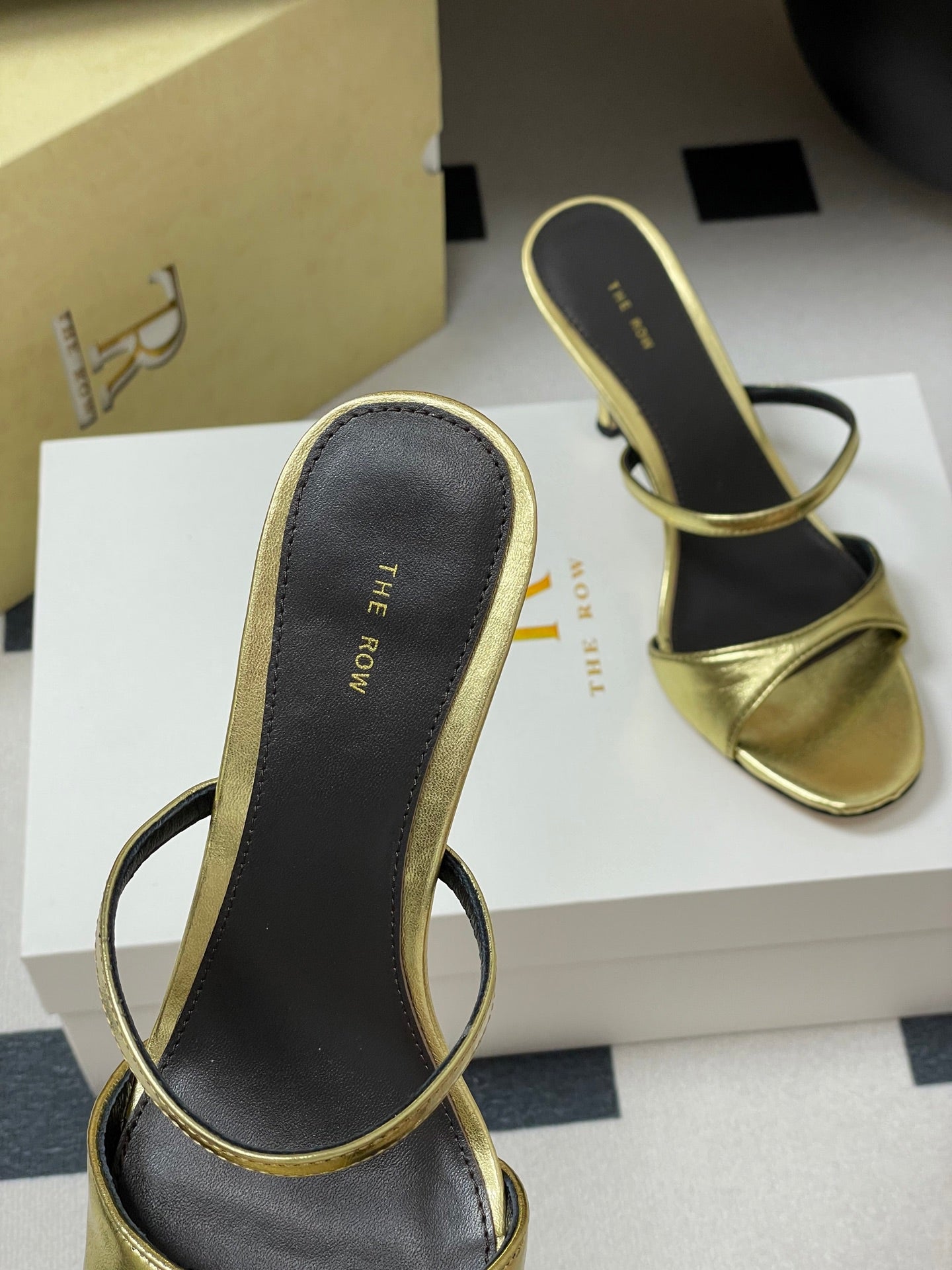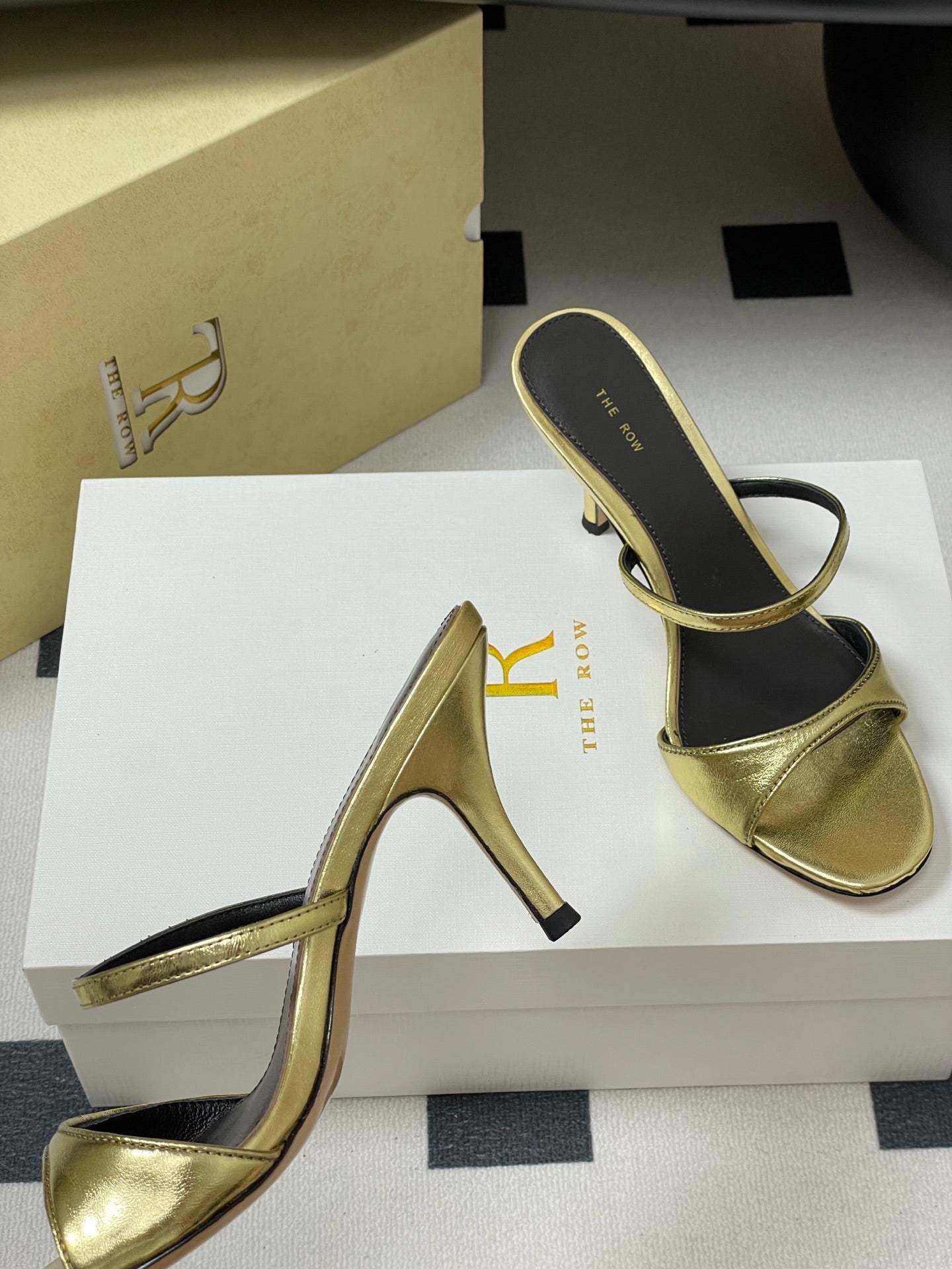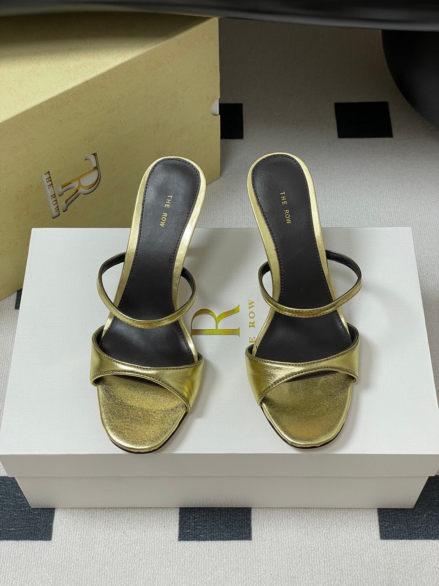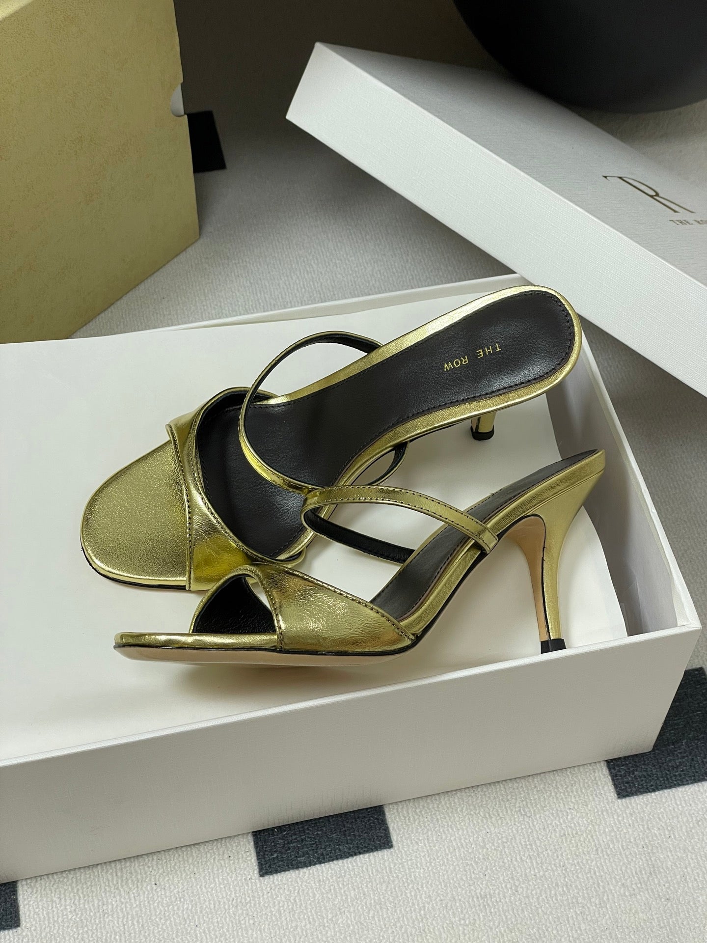 The Row 25S Strap High Heel Mule Sandals 85mm Black Mix Gold Metallic Cowhide 286210