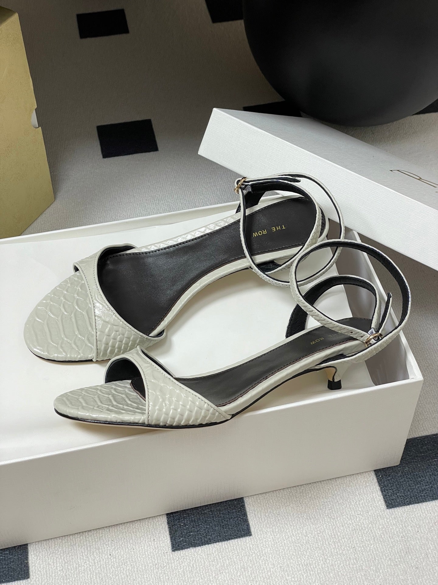 The Row 25S Strap High Heel Sandals 35mm White Snake Pattern Cowhide 286196