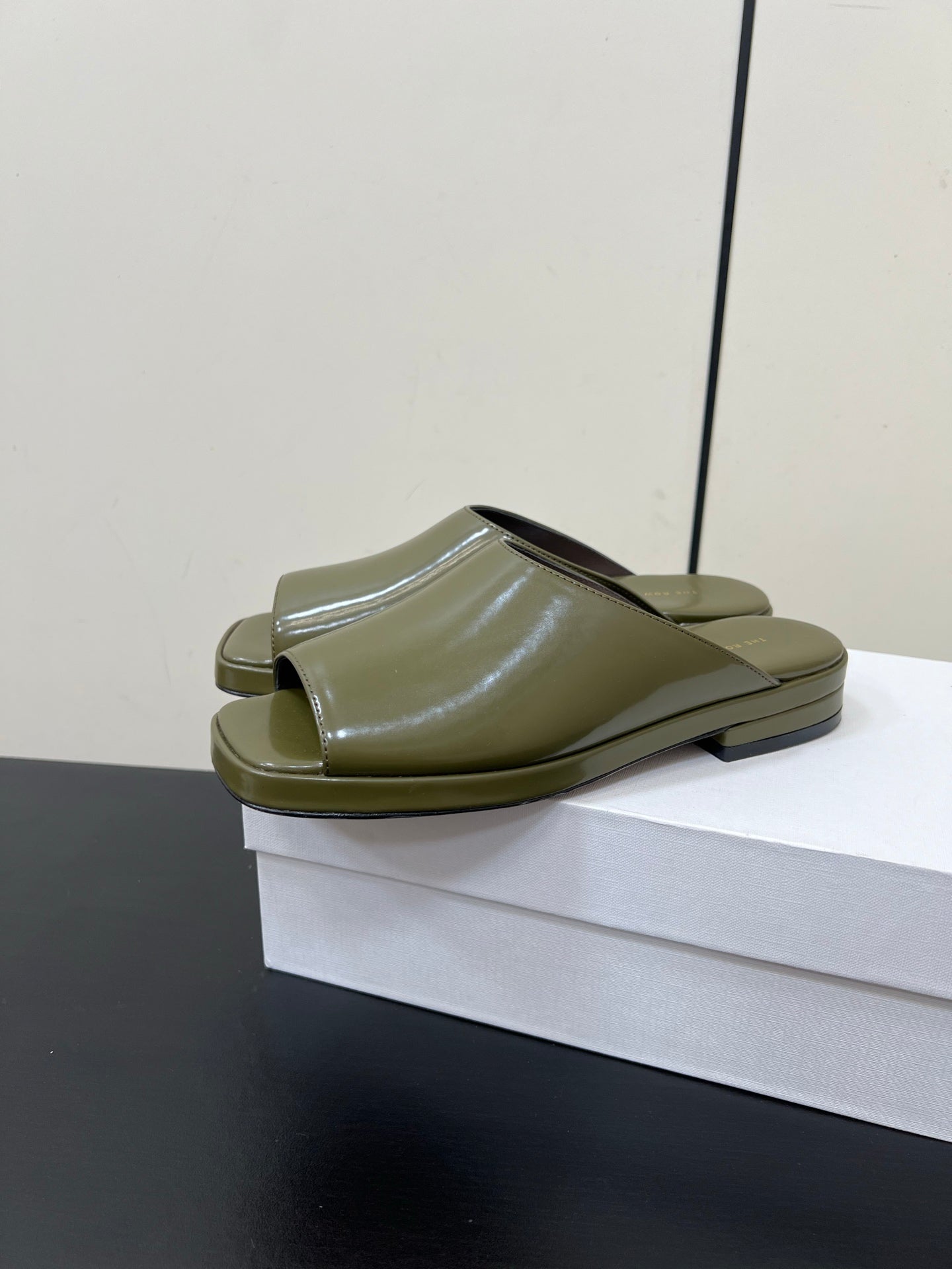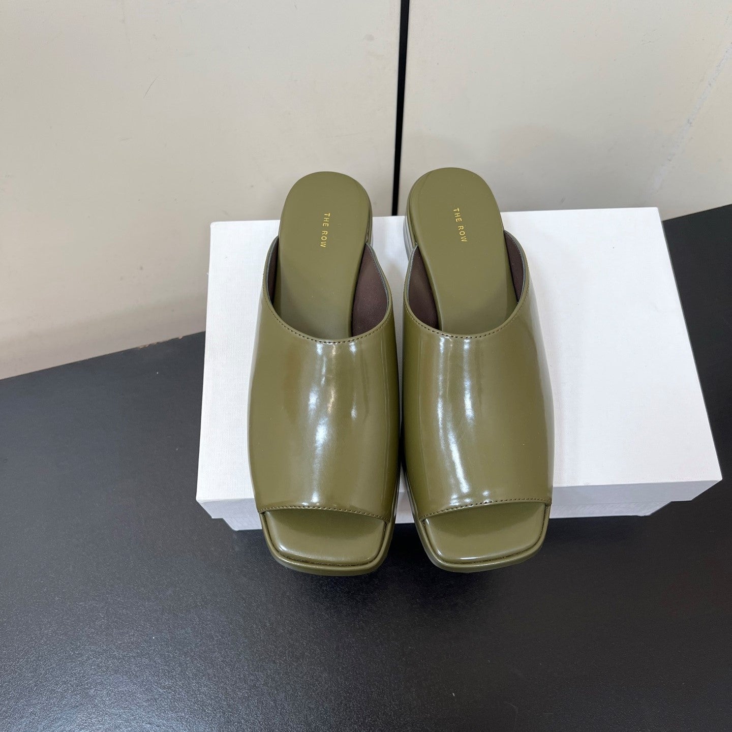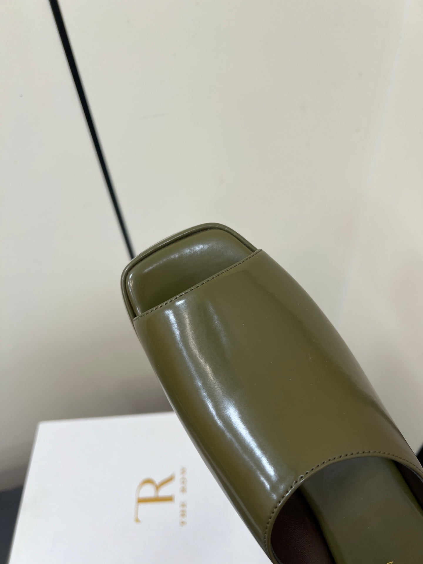 The Row Emi Flatform Sandal 25mm Olive Patent Leather 340006