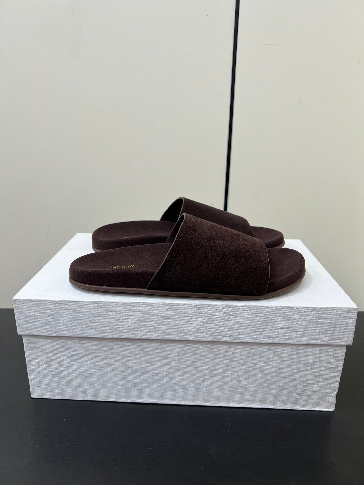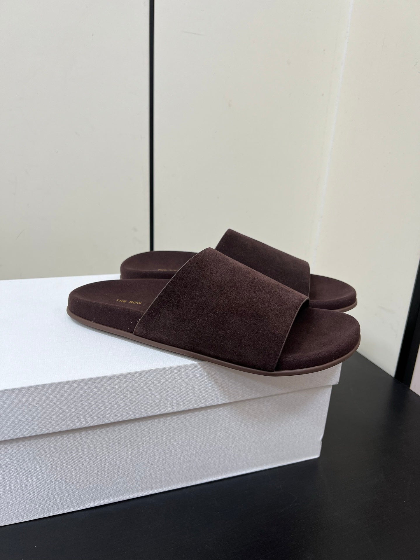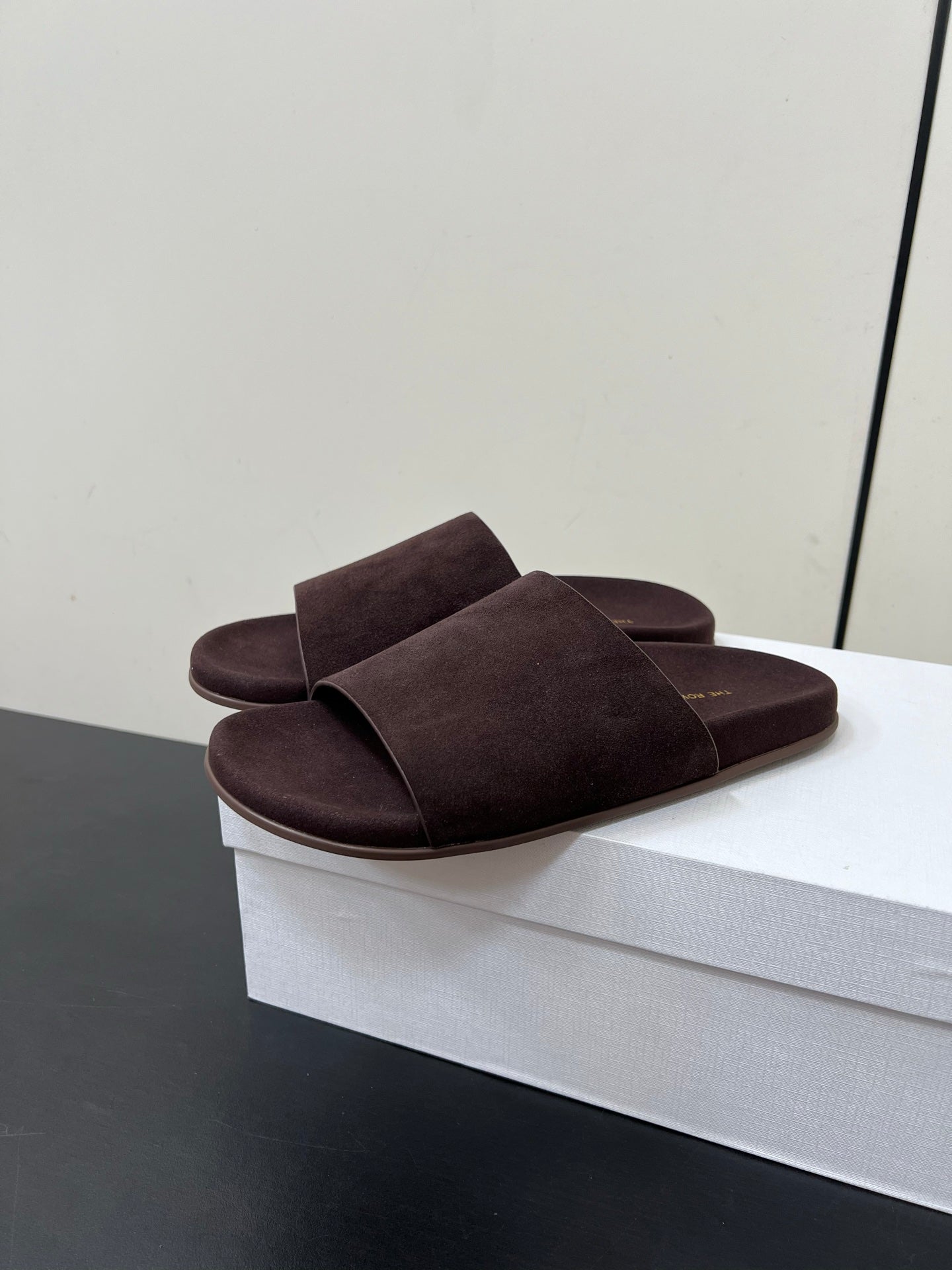 The Row Slippers In Chocolate Suede 340023