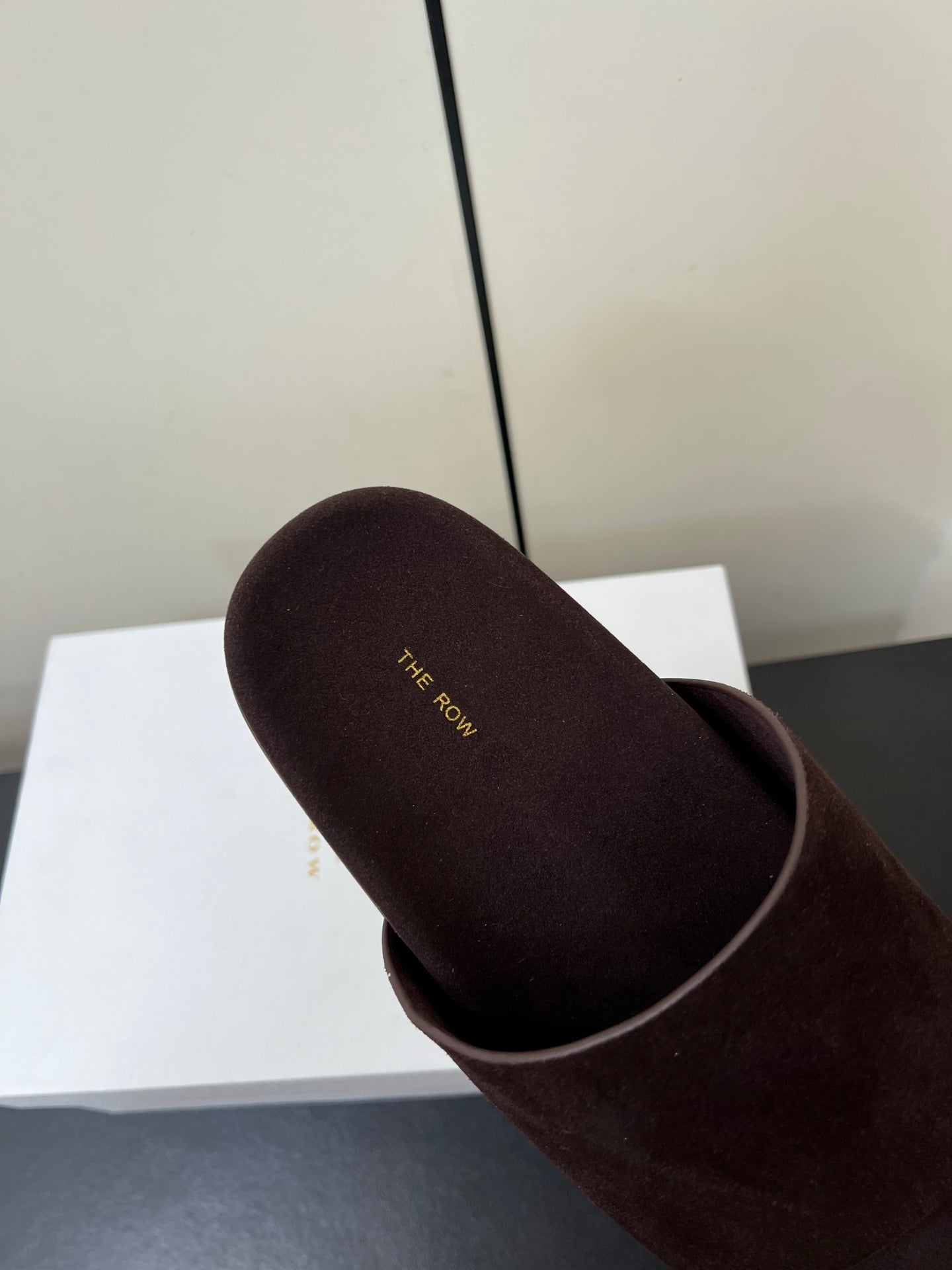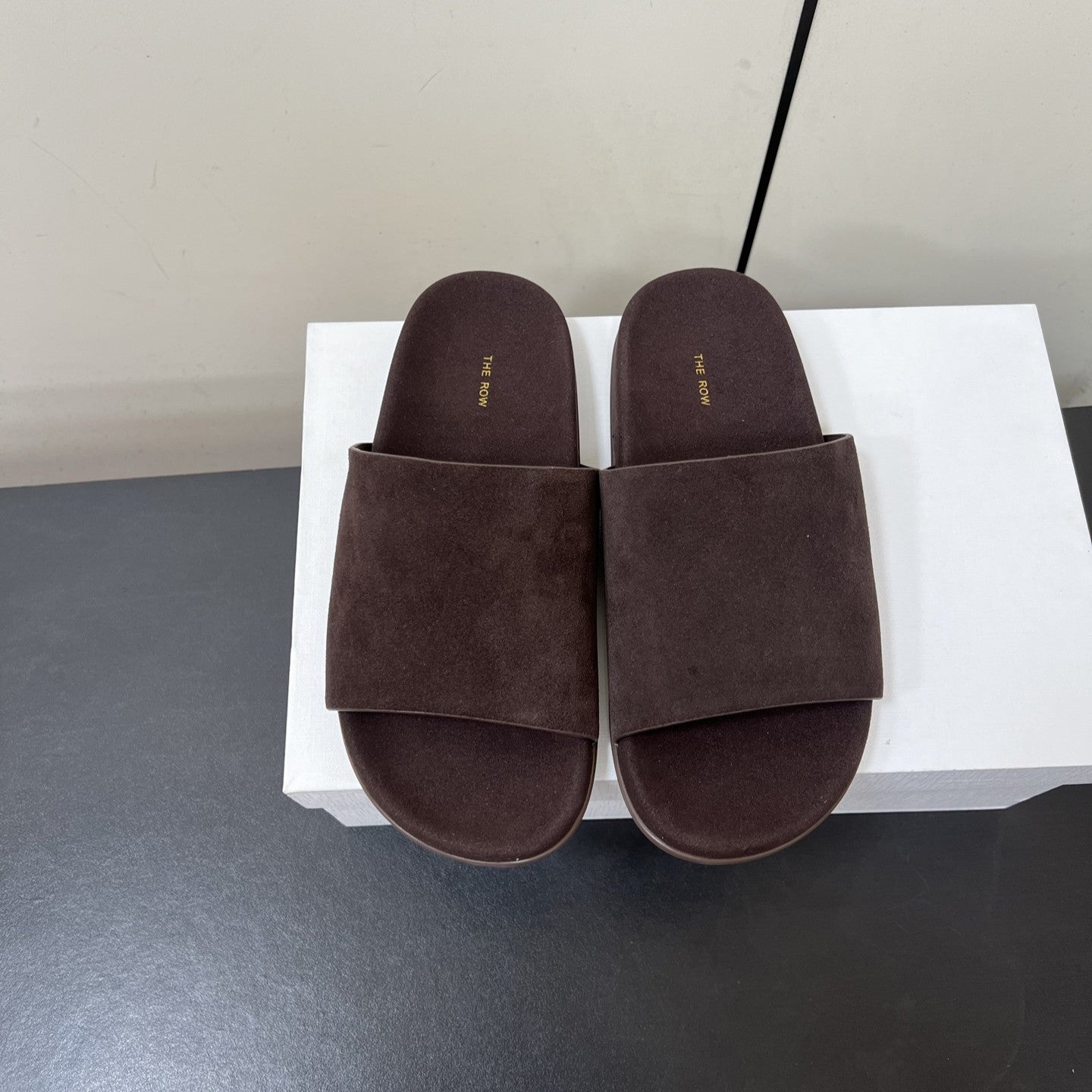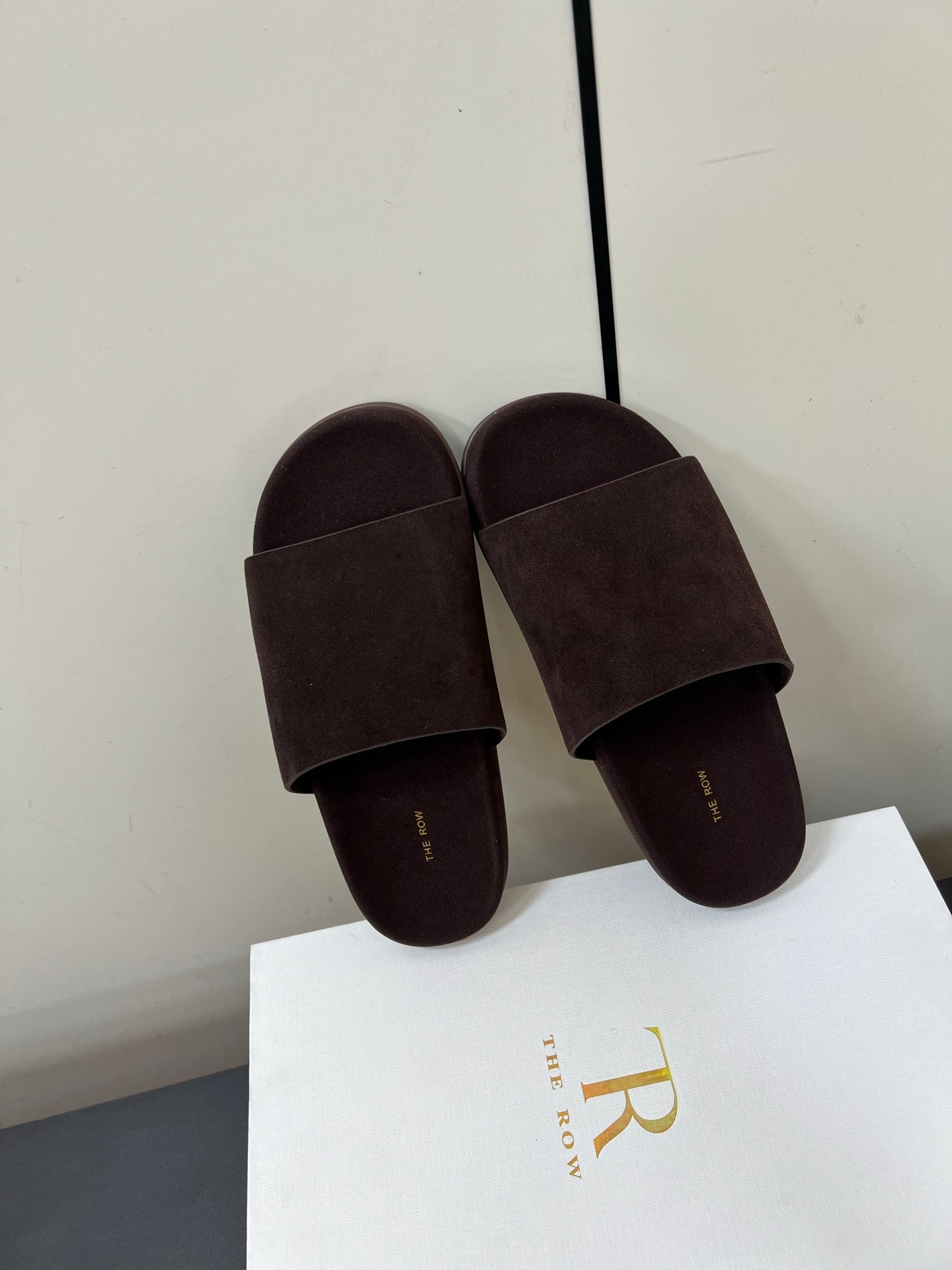 The Row Slippers In Chocolate Suede 340023