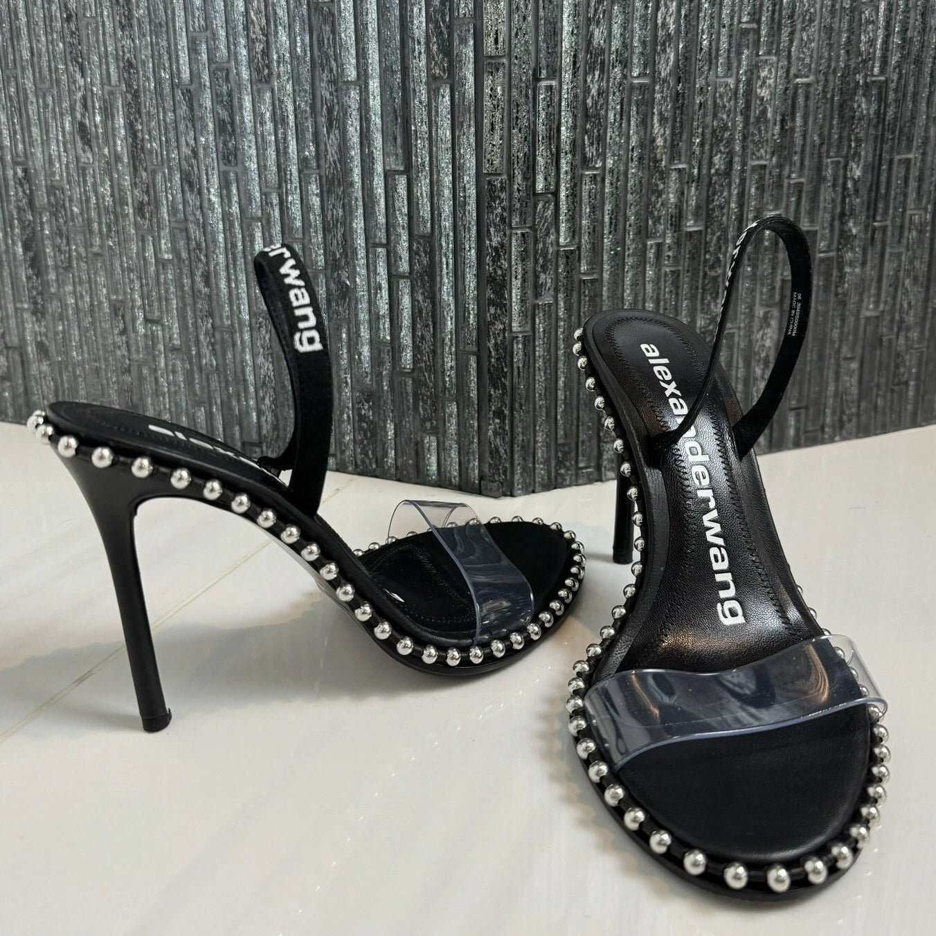 Alexander Wang Nova Logo Sandal in Black Leather