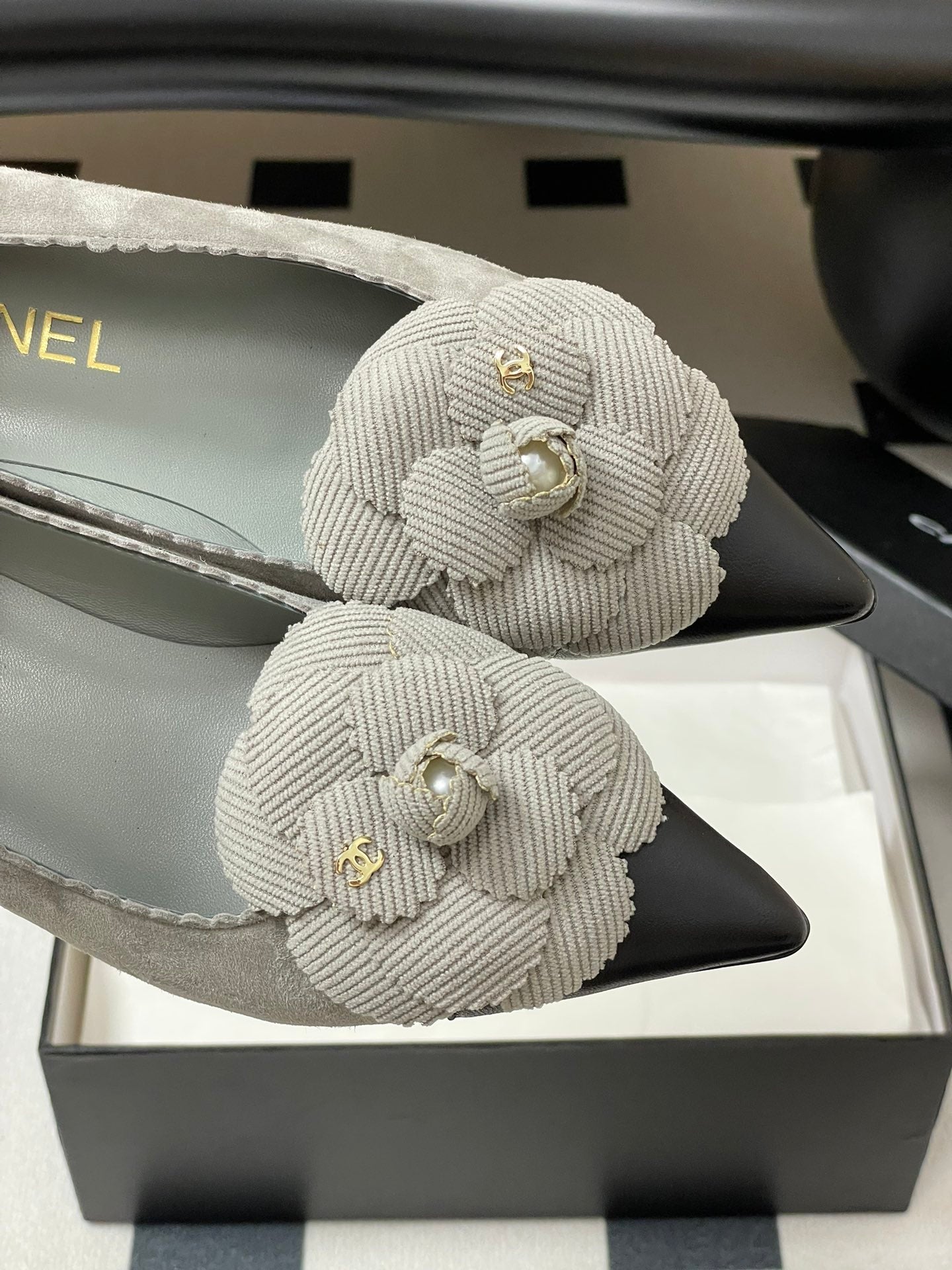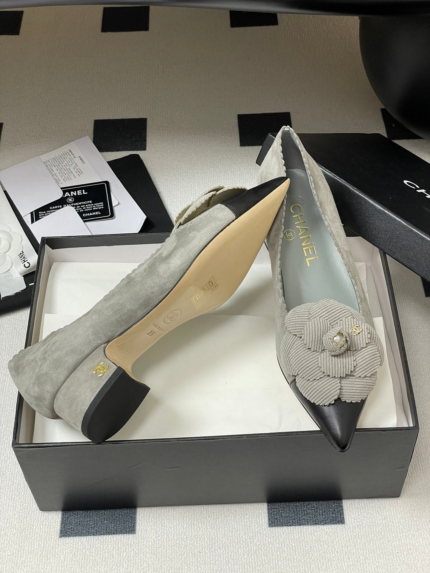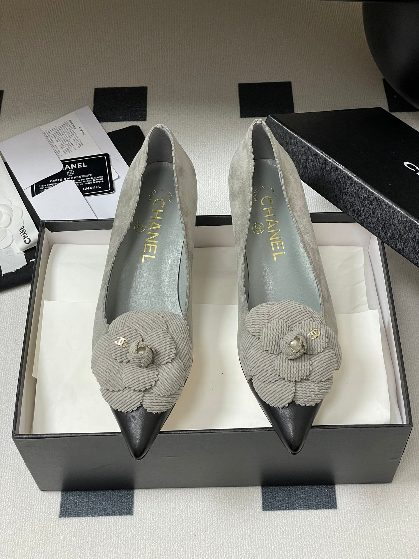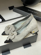 CC 25C Classic Camellia Pointed High Heels Pump 35mm Grey Suede 247611