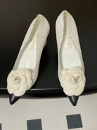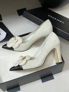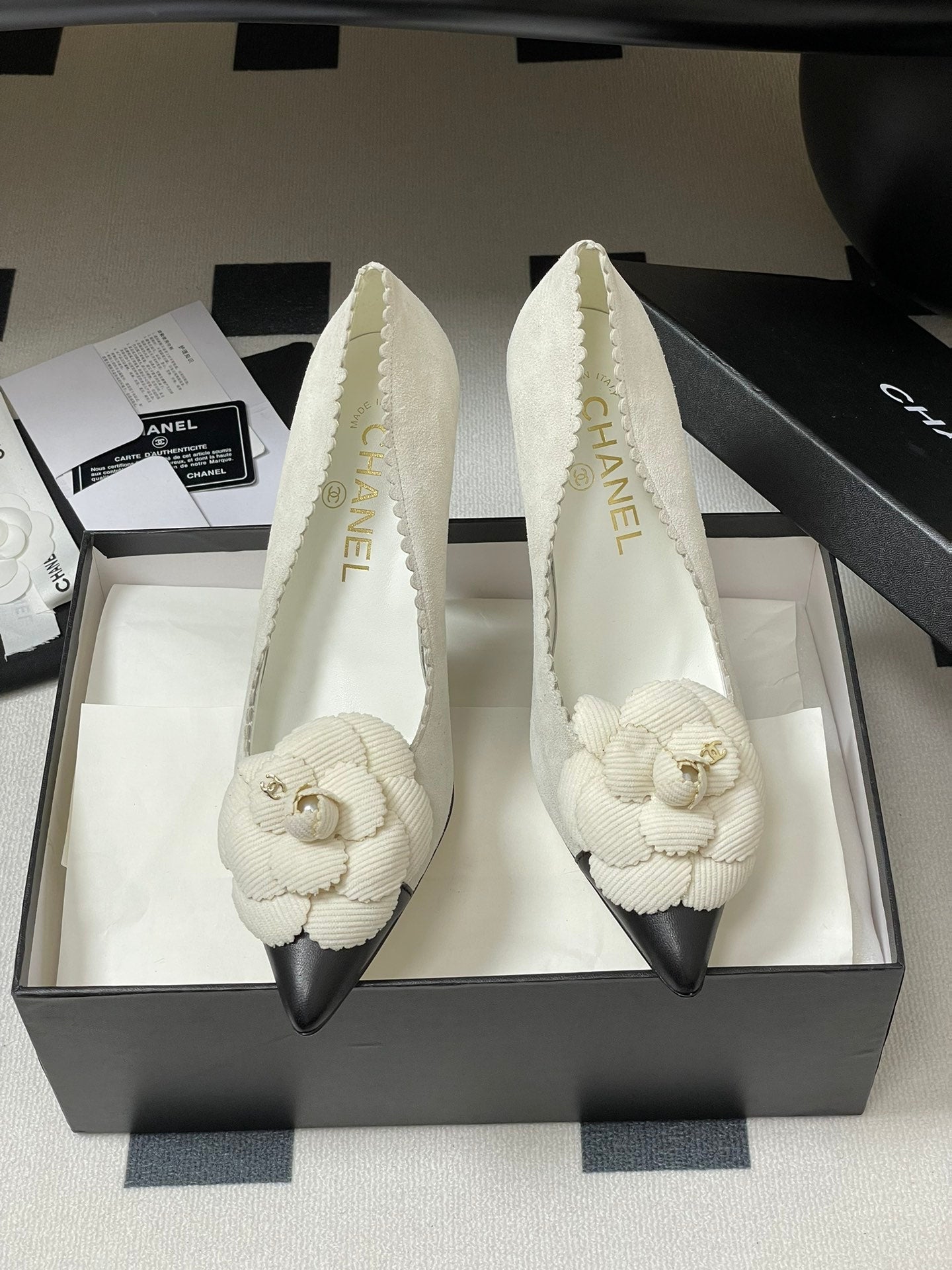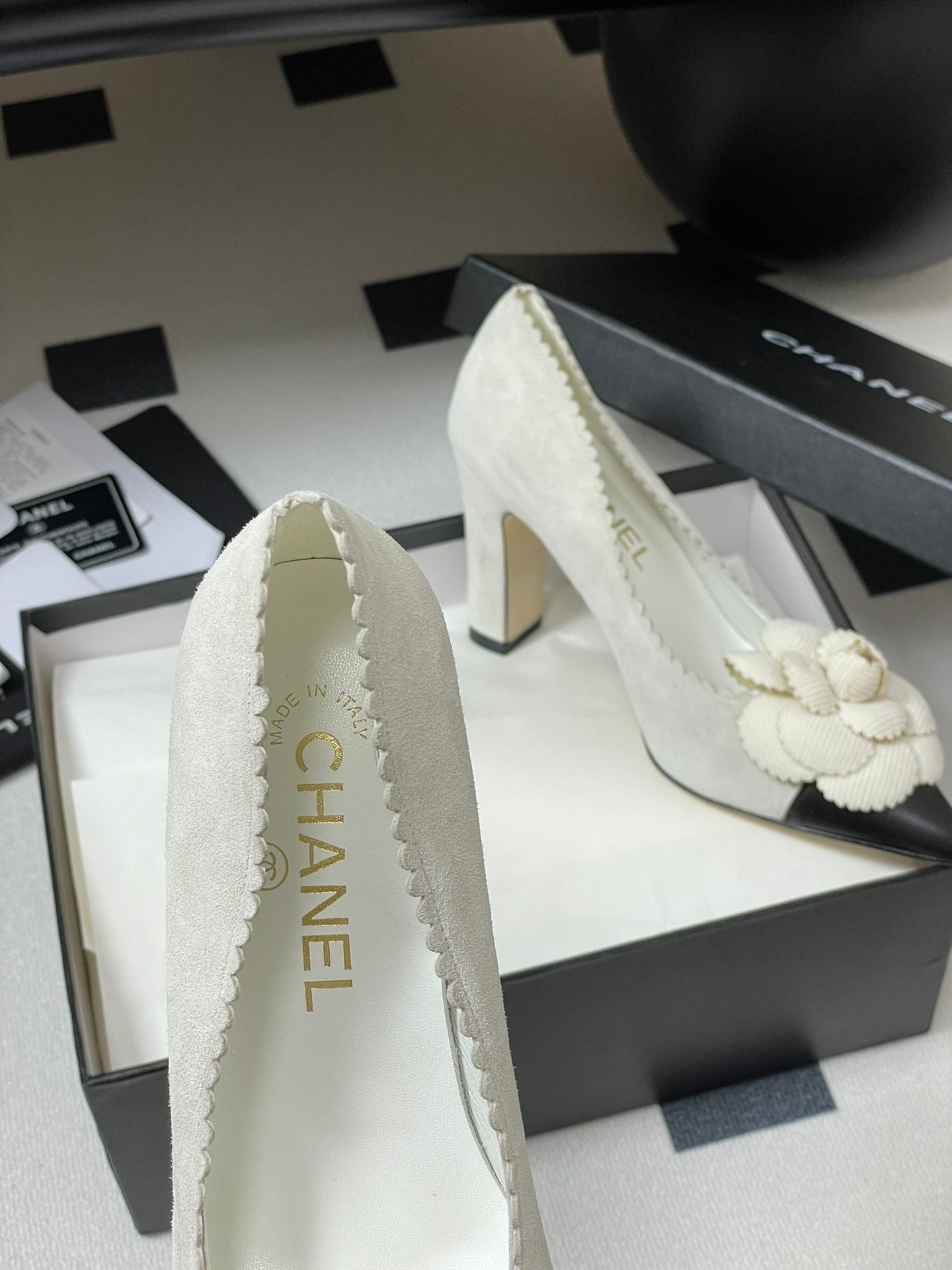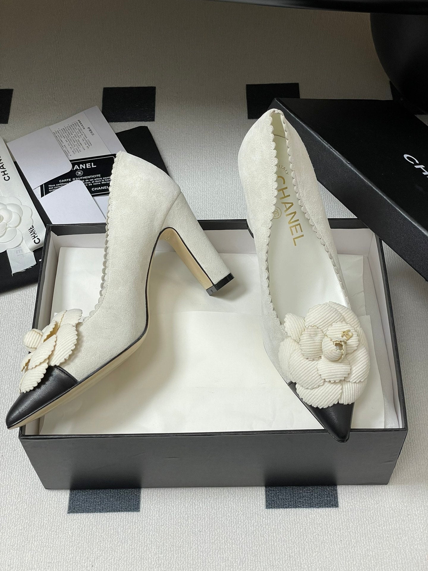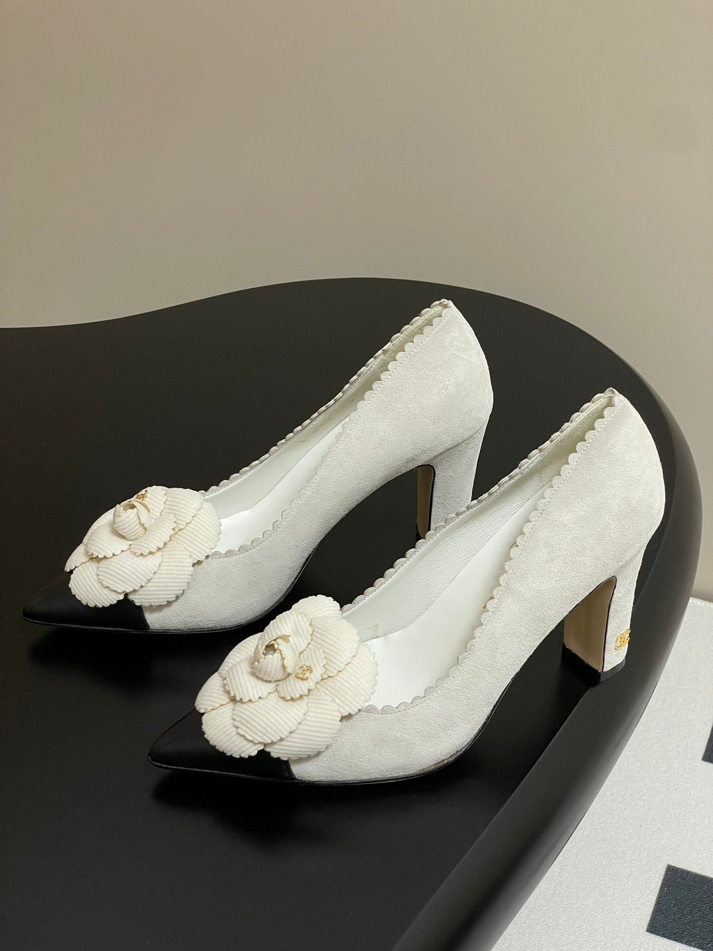 CC 25C Classic Camellia Pointed High Heels Pump 85mm White Suede 247616
