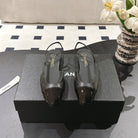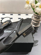 cc 25c slingback flat 15mm cross line pattern black lambskin 237492