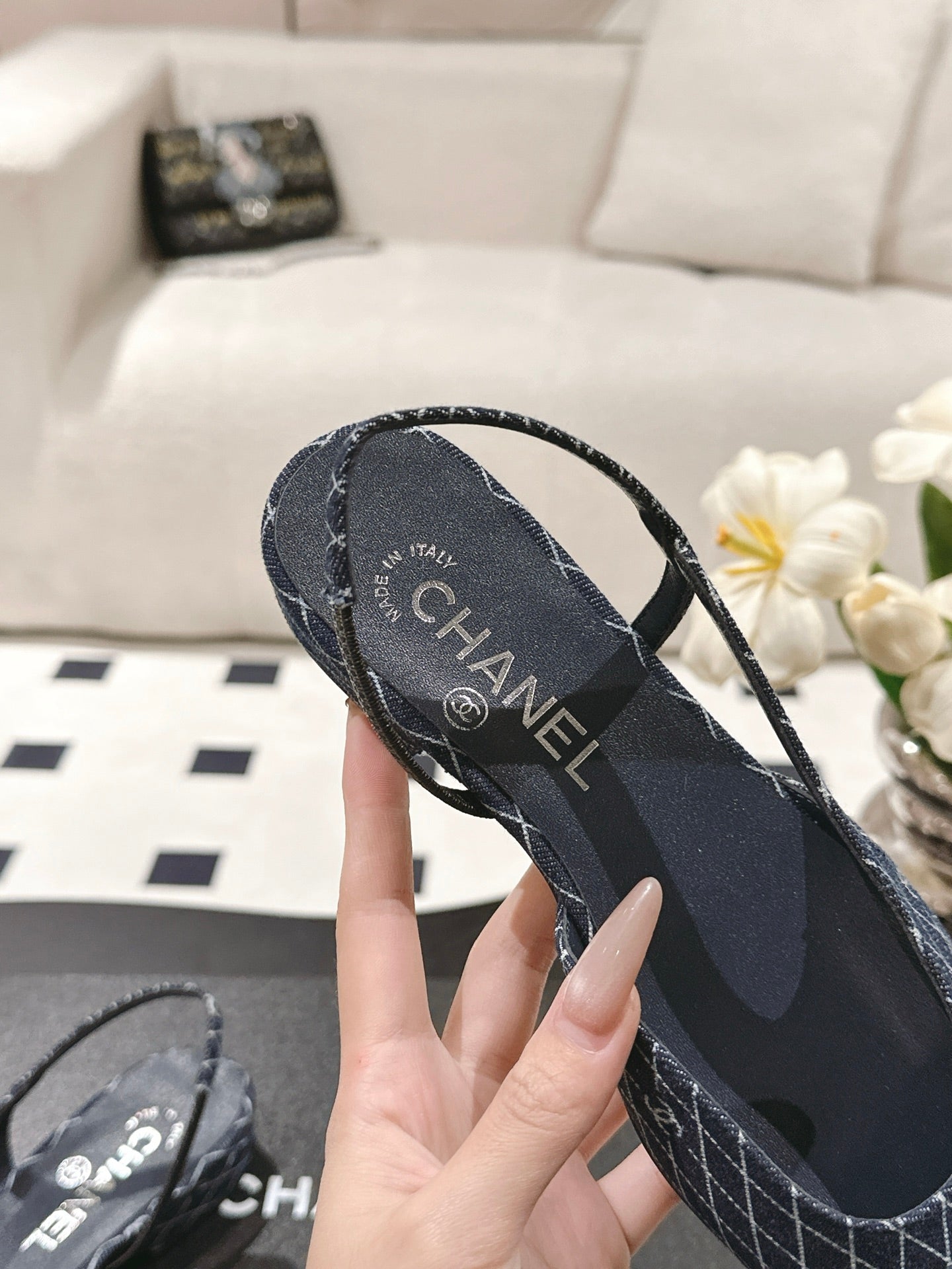 cc 25c slingback flat 15mm cross line pattern dark blue denim 237486