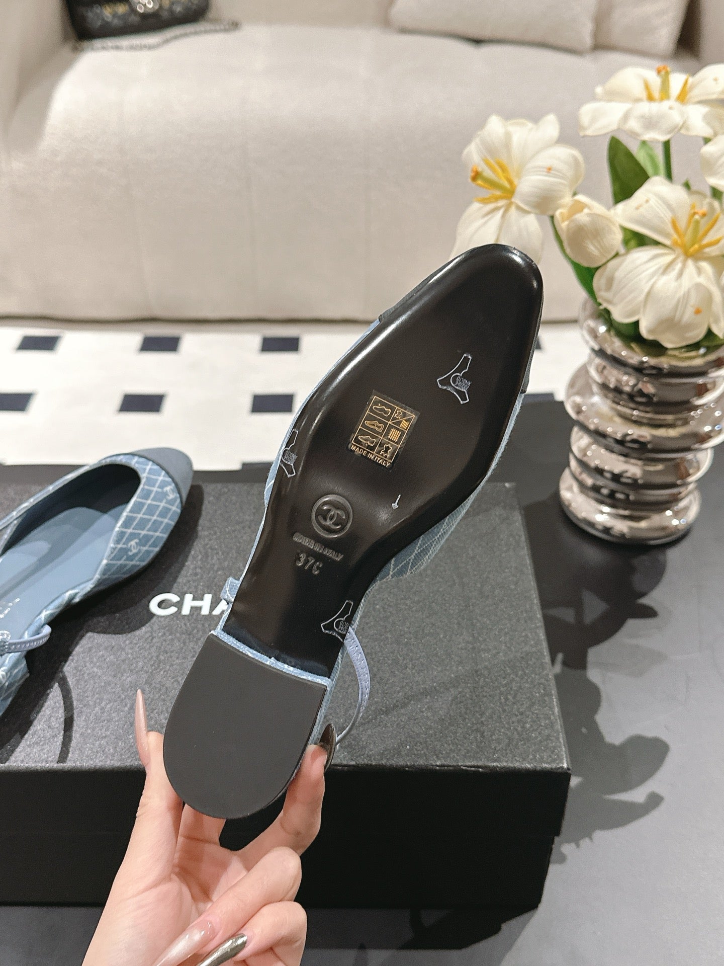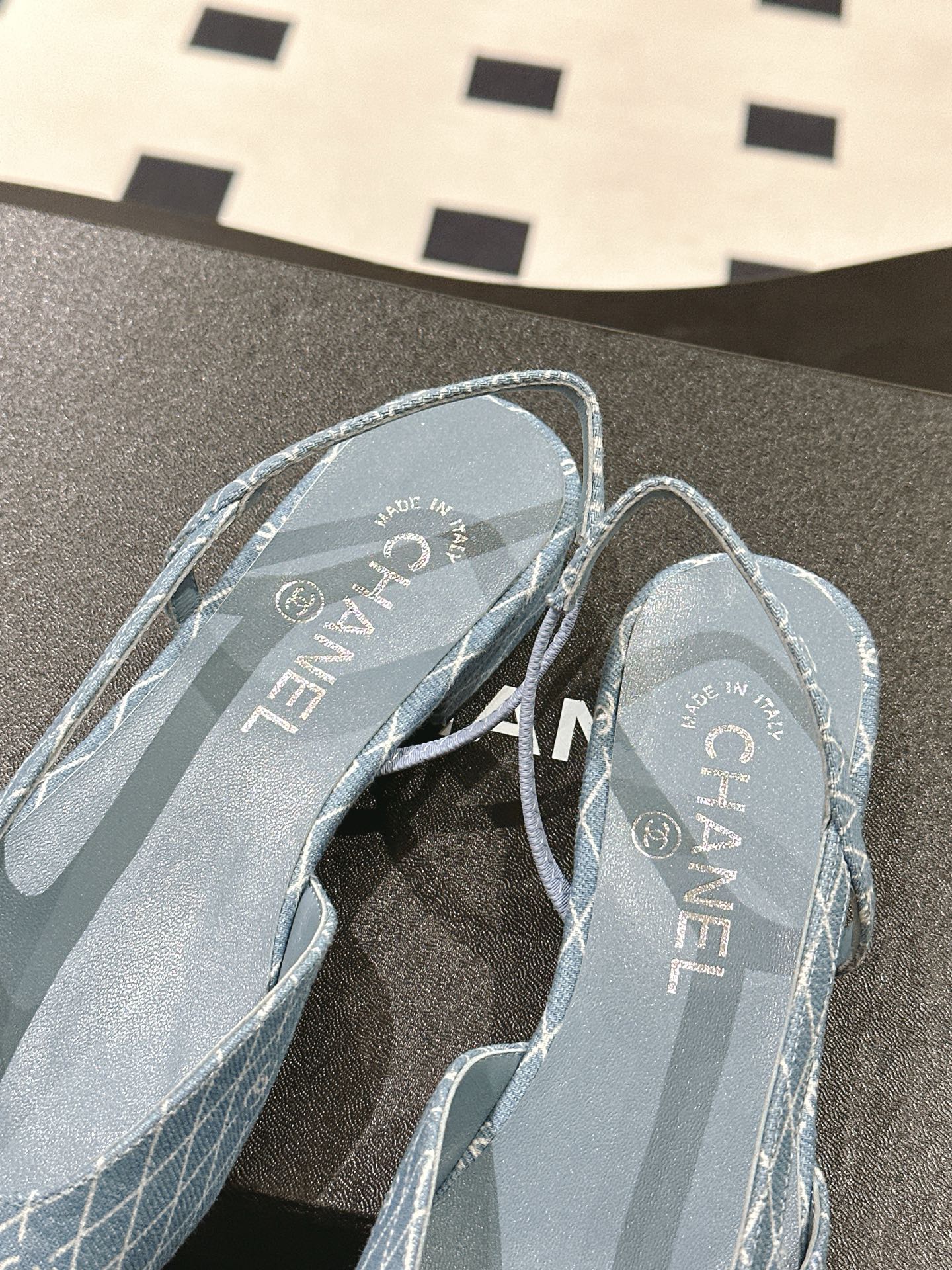 cc 25c slingback flat 15mm cross line pattern light blue denim 237485