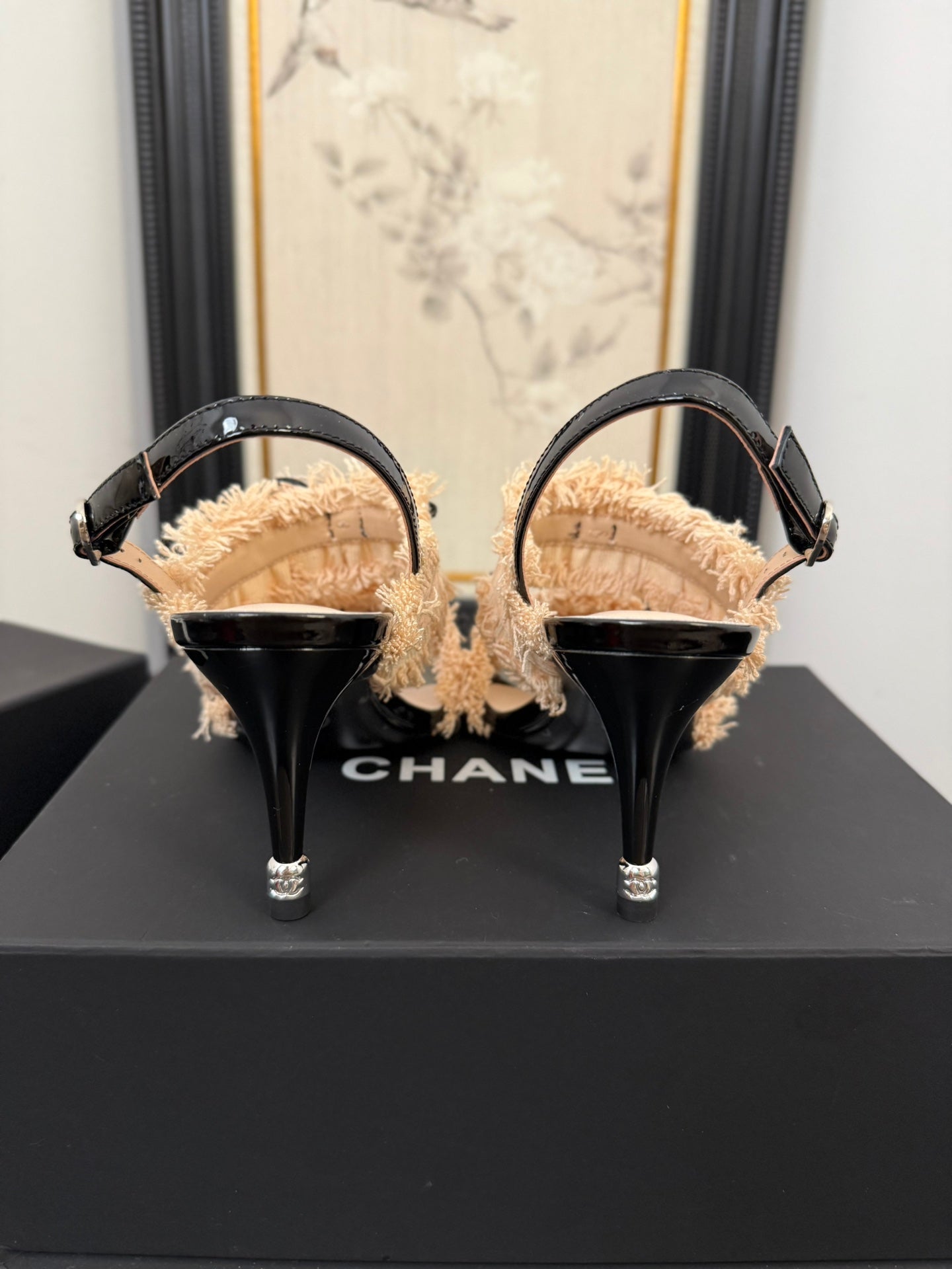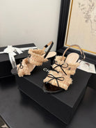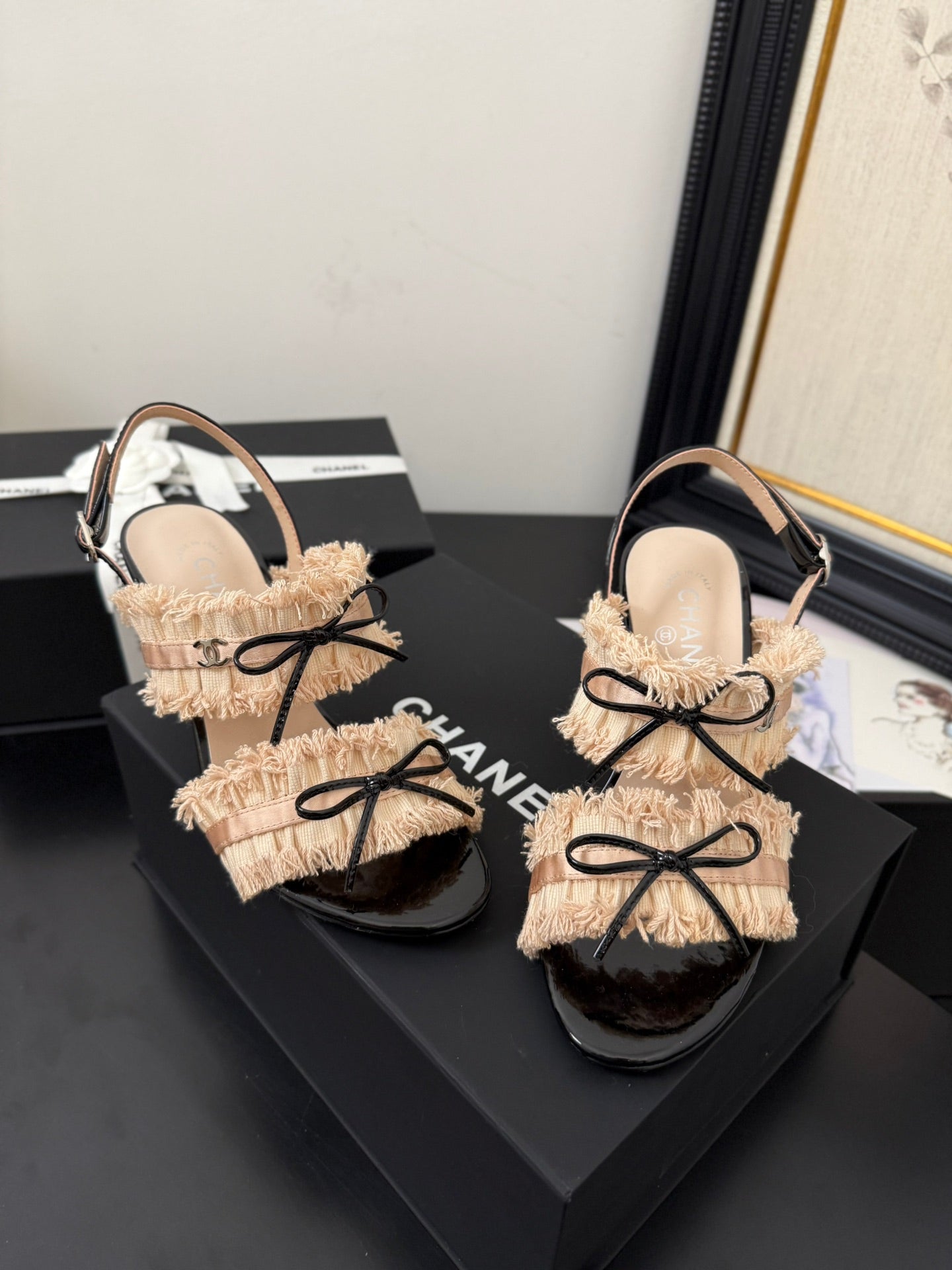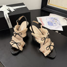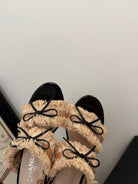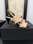 cc25 slingback sandal ̣90mm bow black grosgrain beige canvas 233595