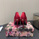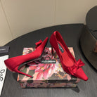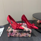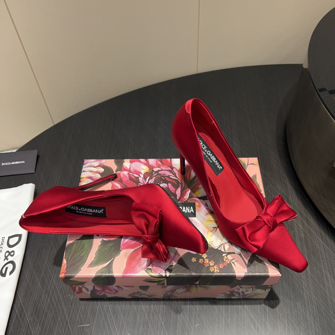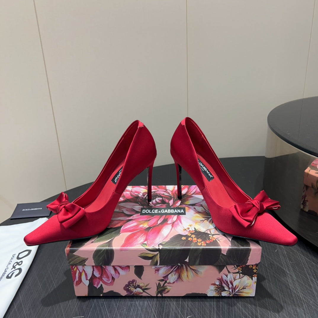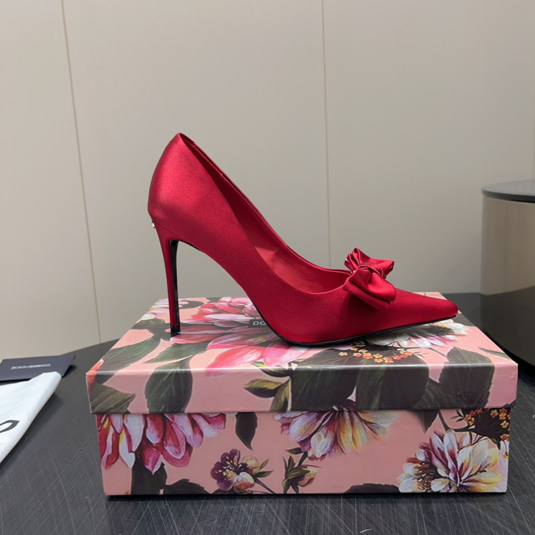 DC 25 Toe Bow High Heel Shoes 100mm Red Silk And Sheepskin 381610