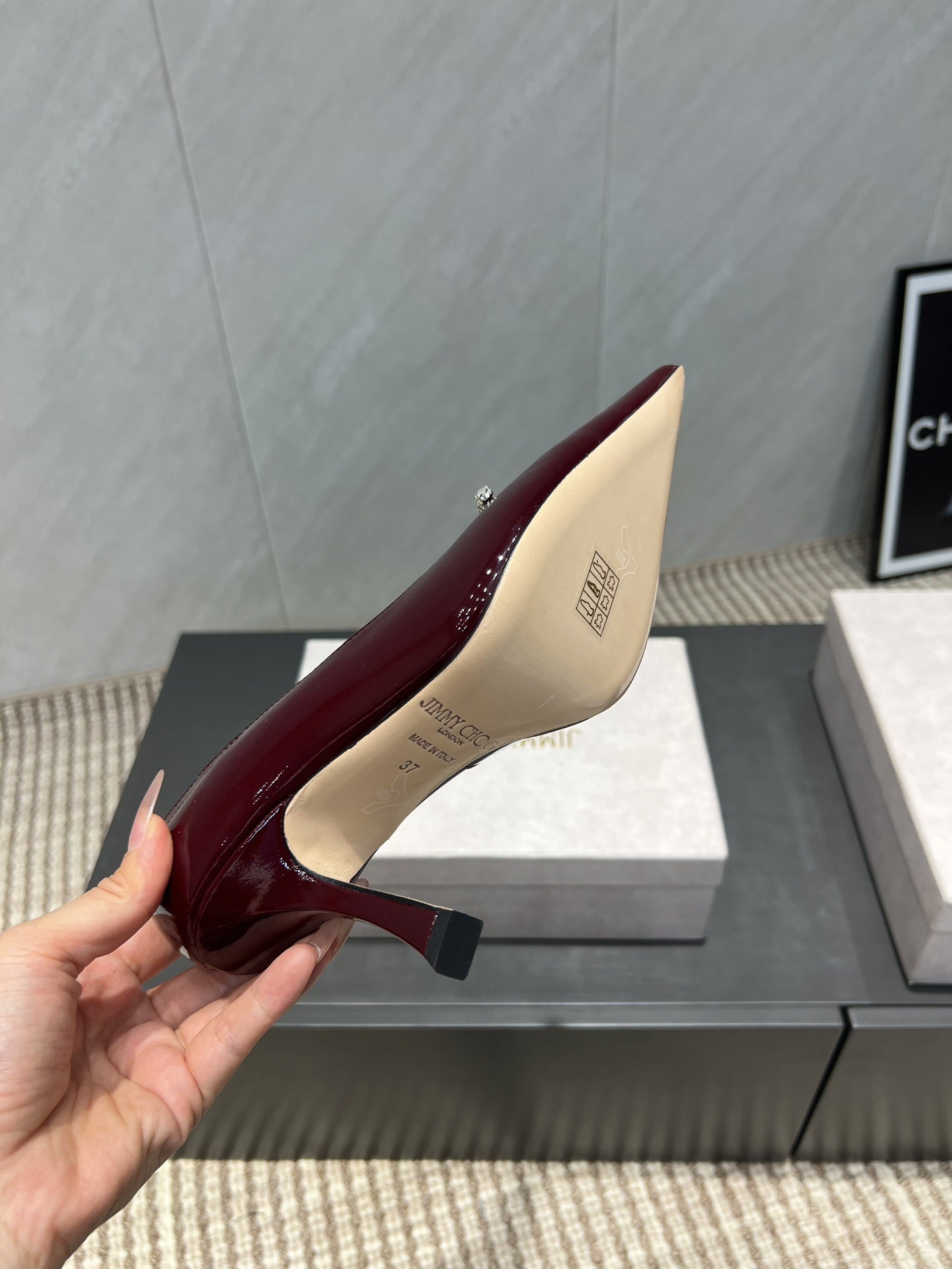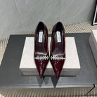 Jimmy Choo Belinda 85mm Heels Burgundy Patent Leather Crystal Studded Heels 540681
