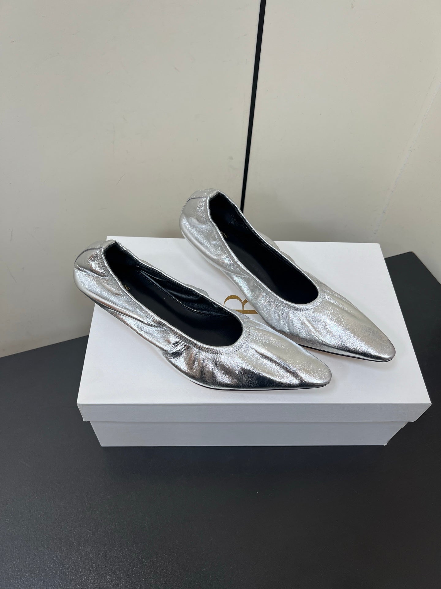 The Row Ava Gathered Leather 35mm Pumps Silver Metallic Calfskin 340013