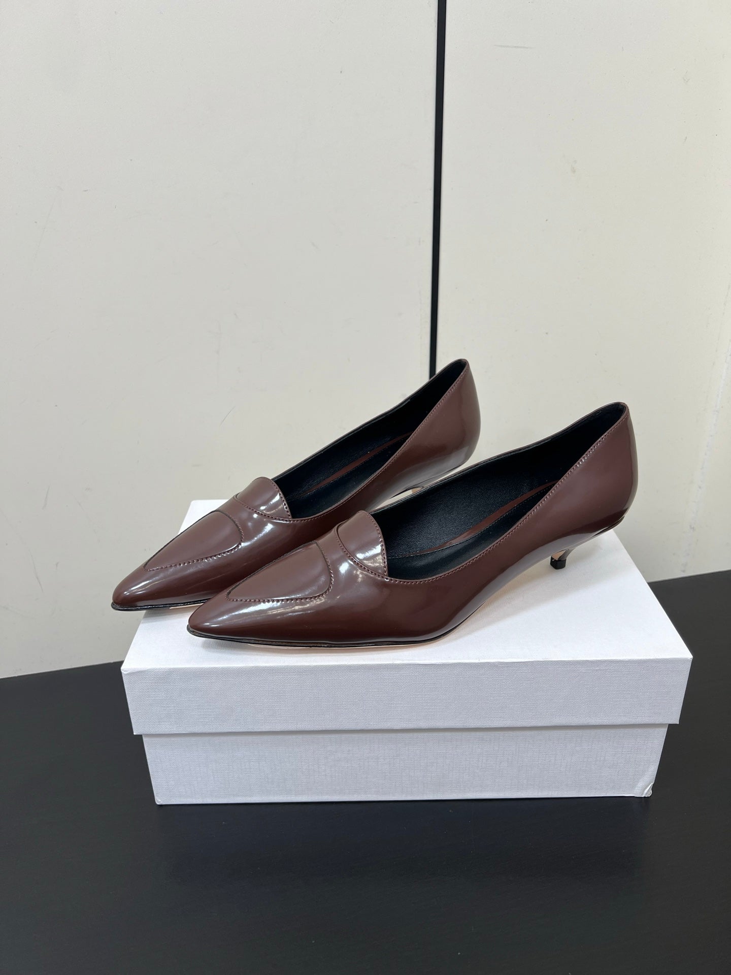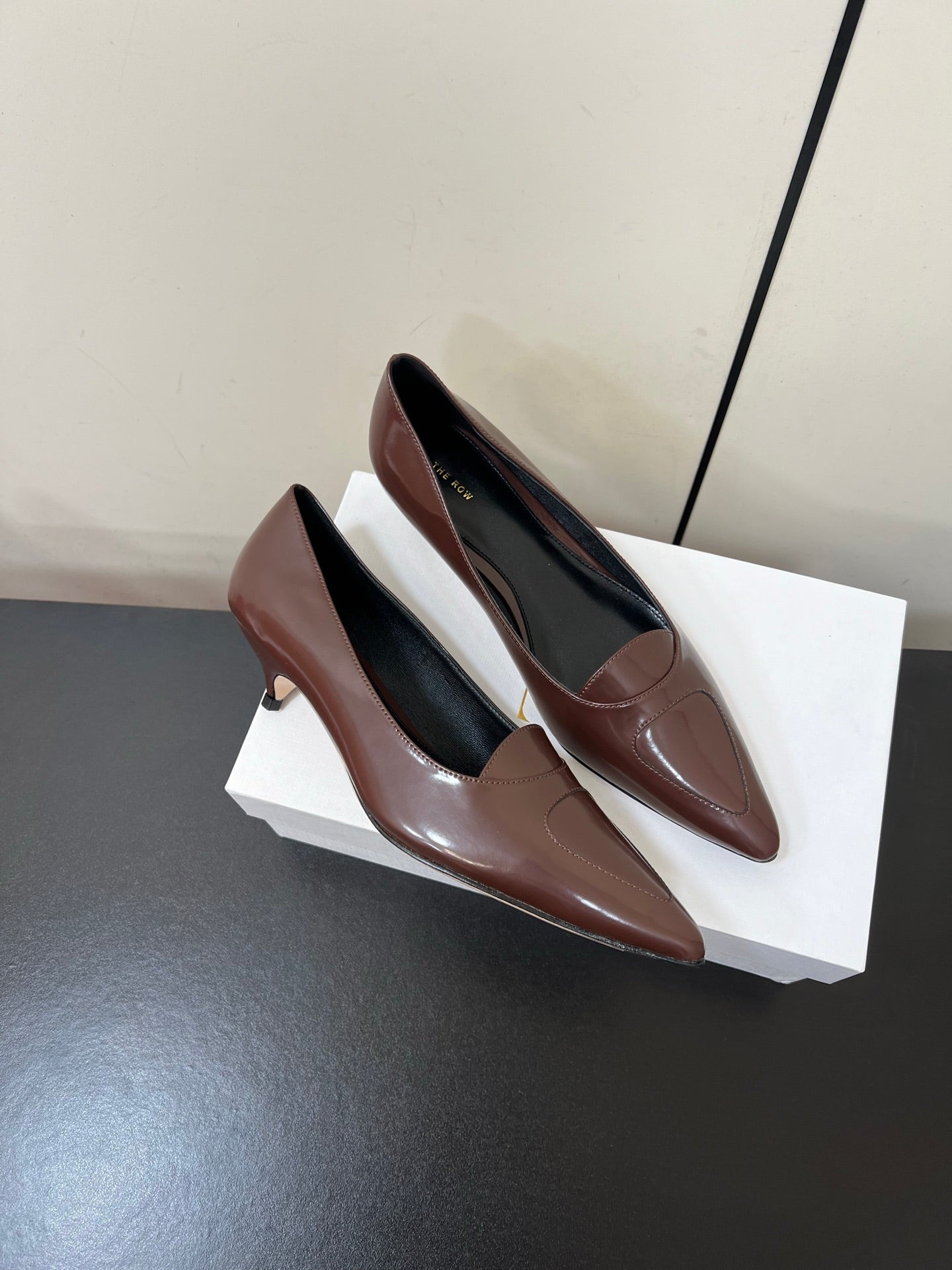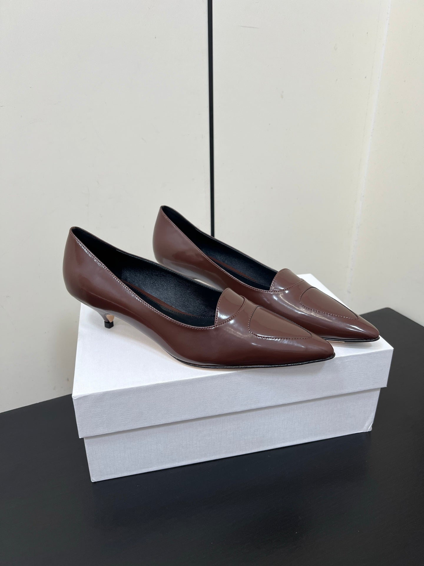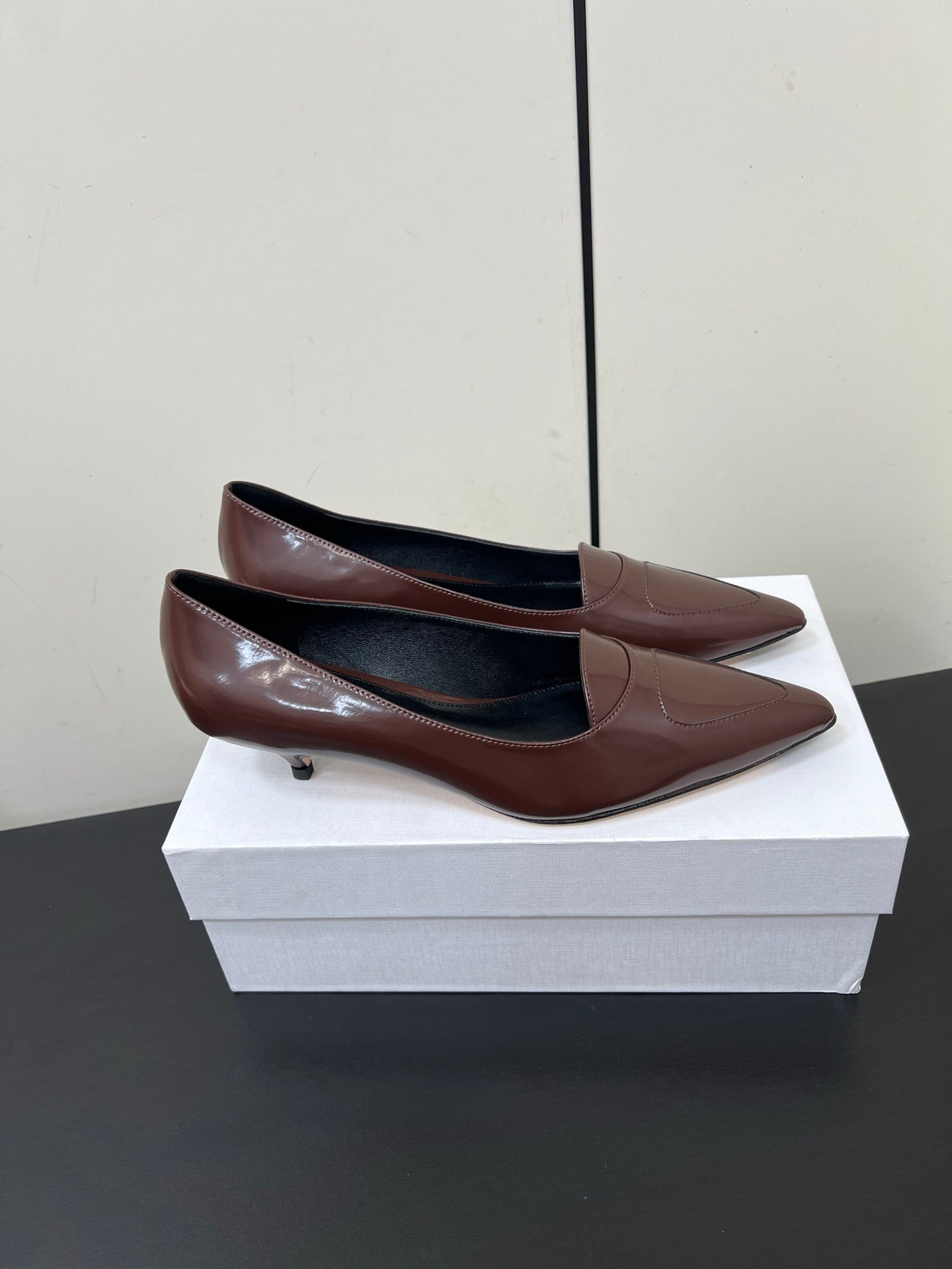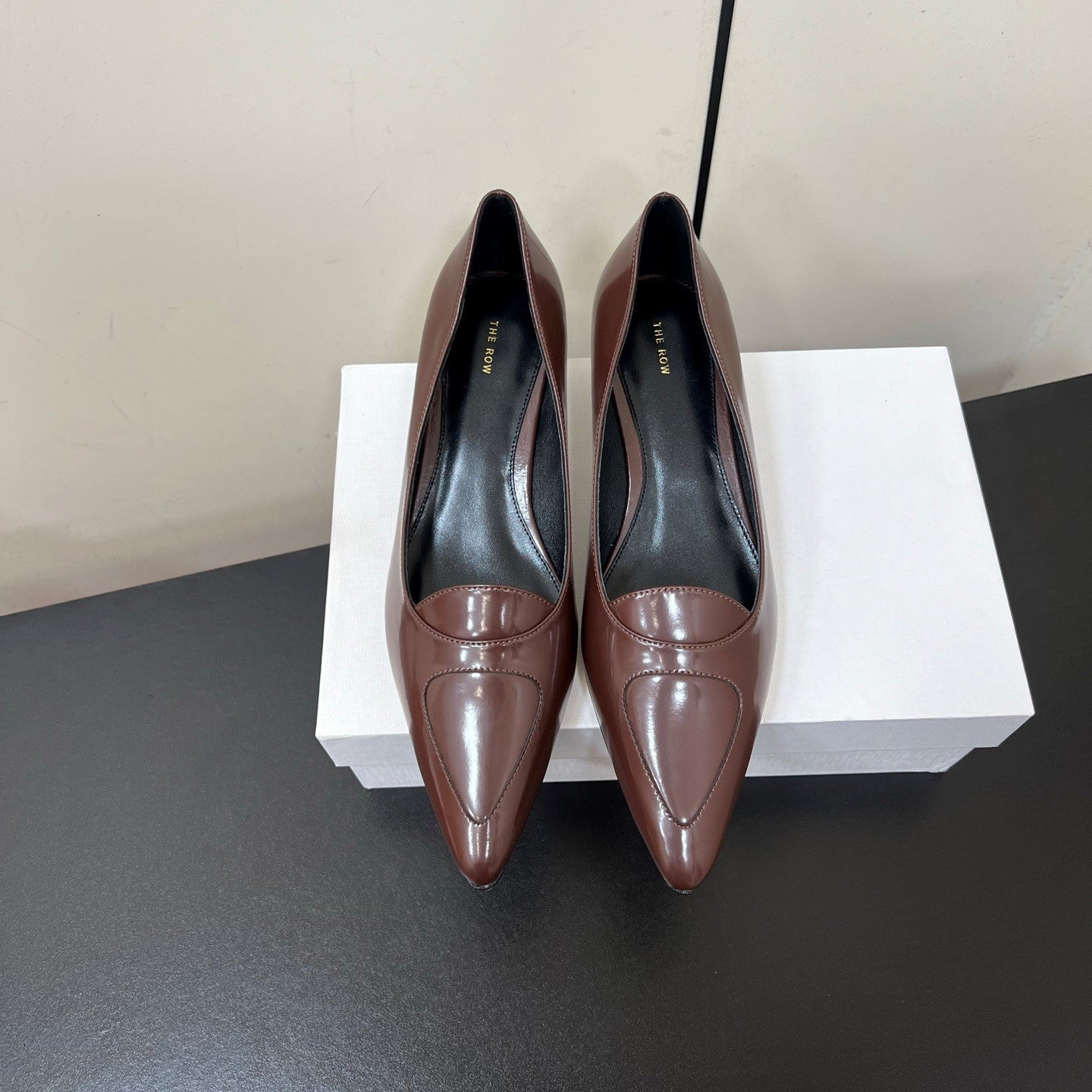 The Row Viv Kitten Pumps 3.5cm Dark Brown Patent Leather 340009