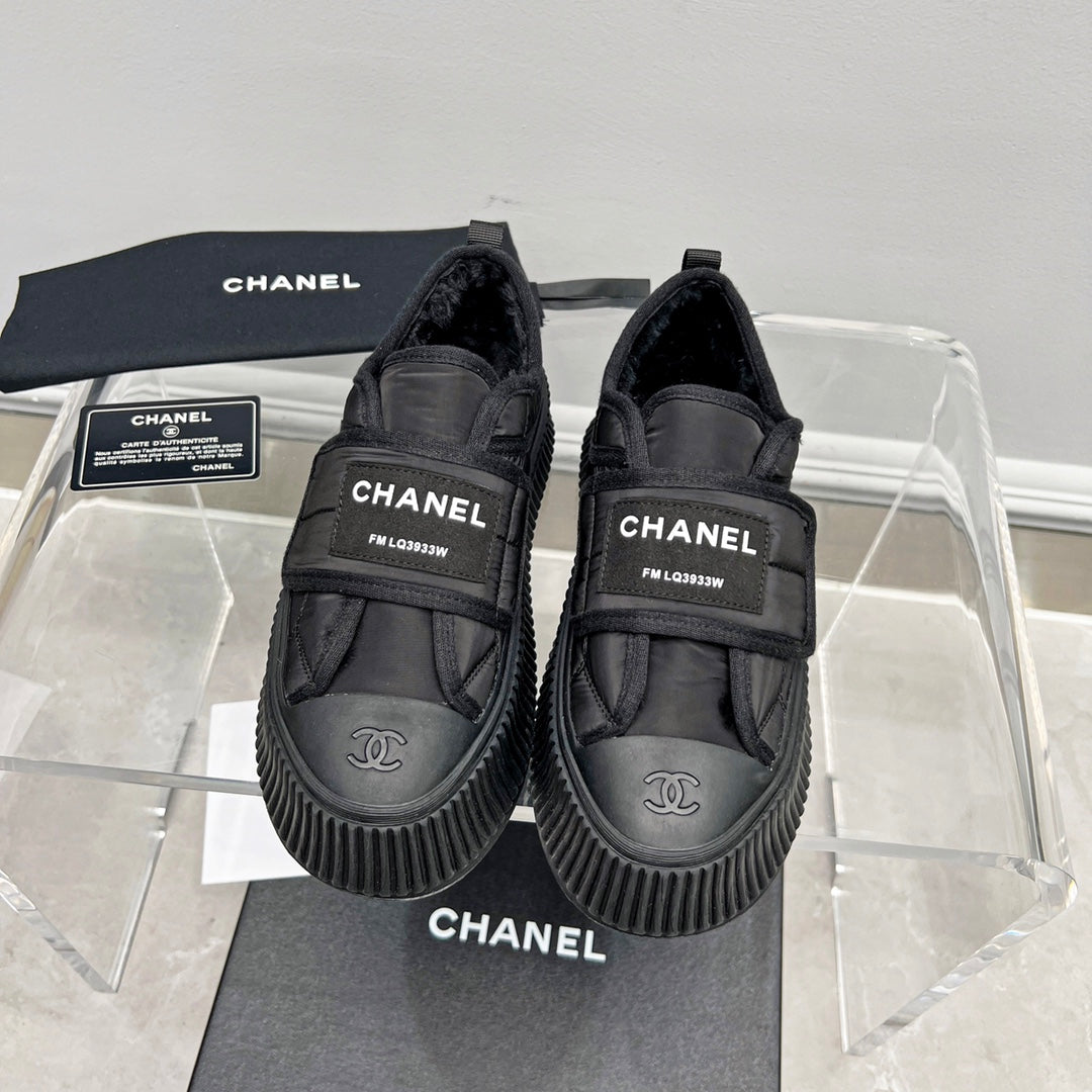 CC Low Sneaker Thick-Soled Black Rain Velvet Fabric