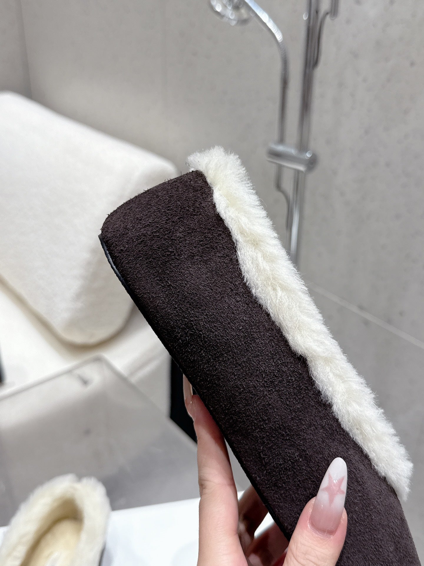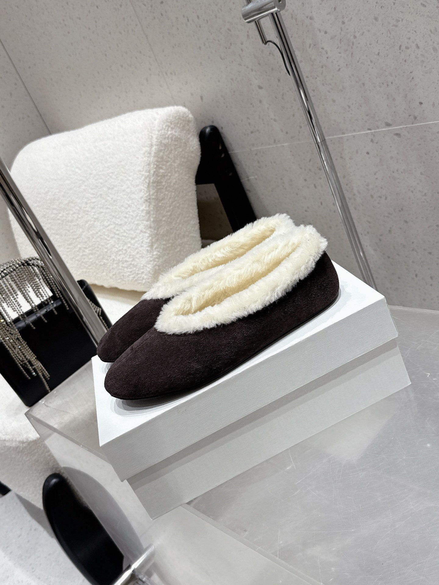 The Row 25ss Ballet Flat Dark Brown Nubuck Leather Fur 554386