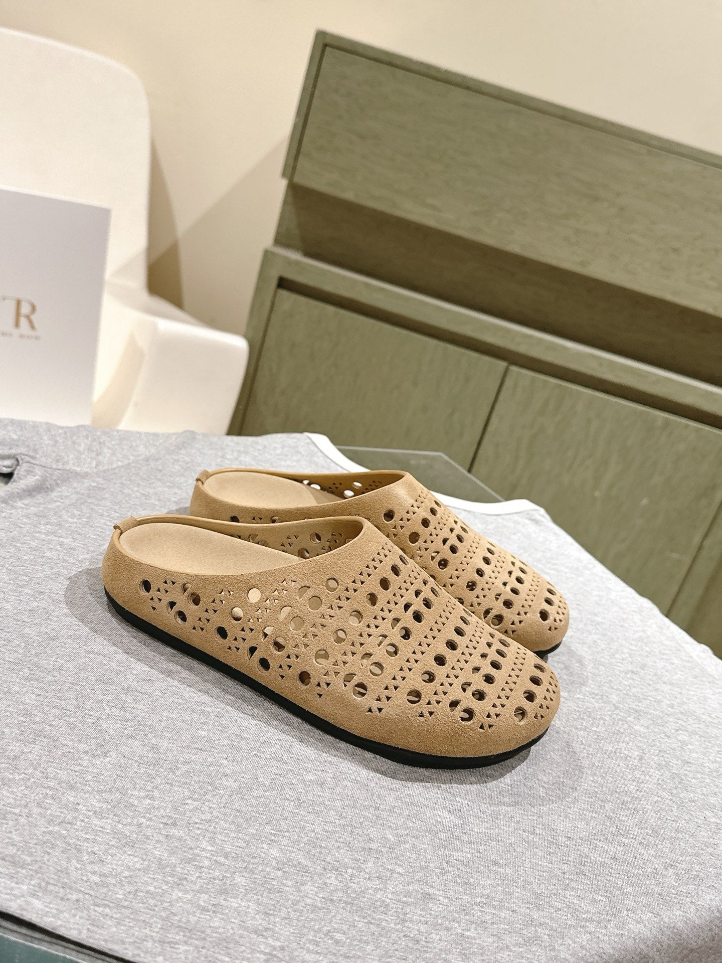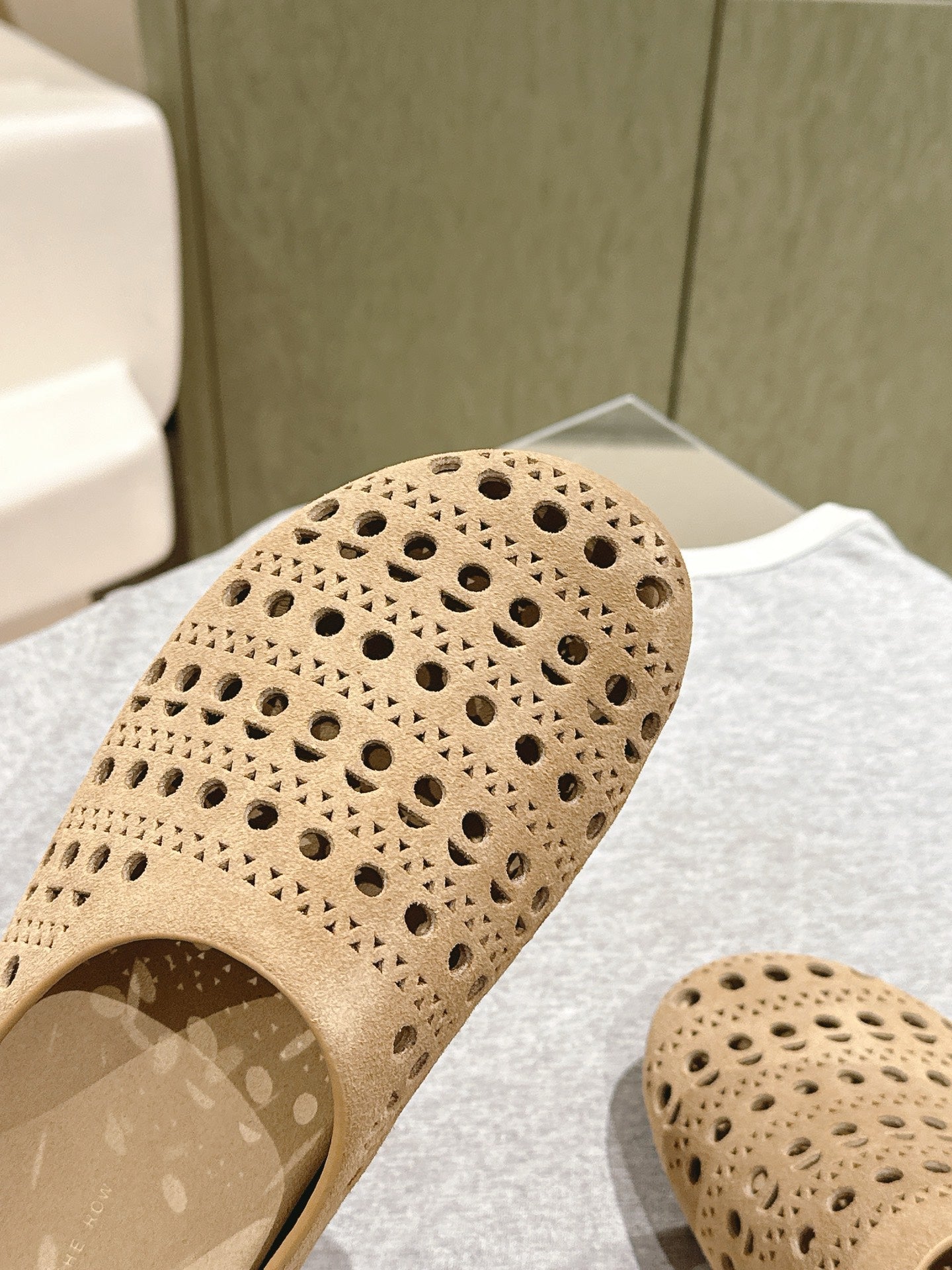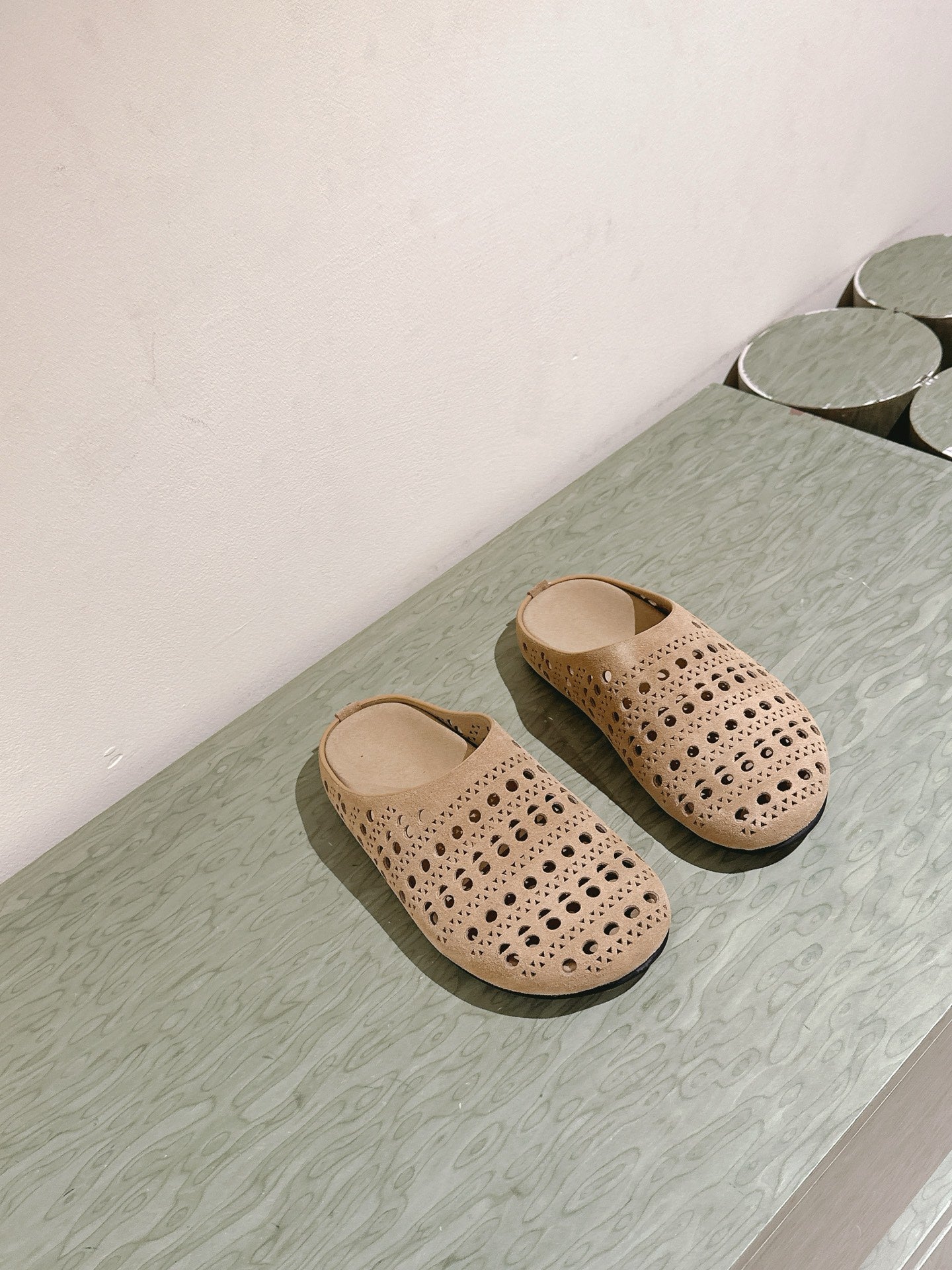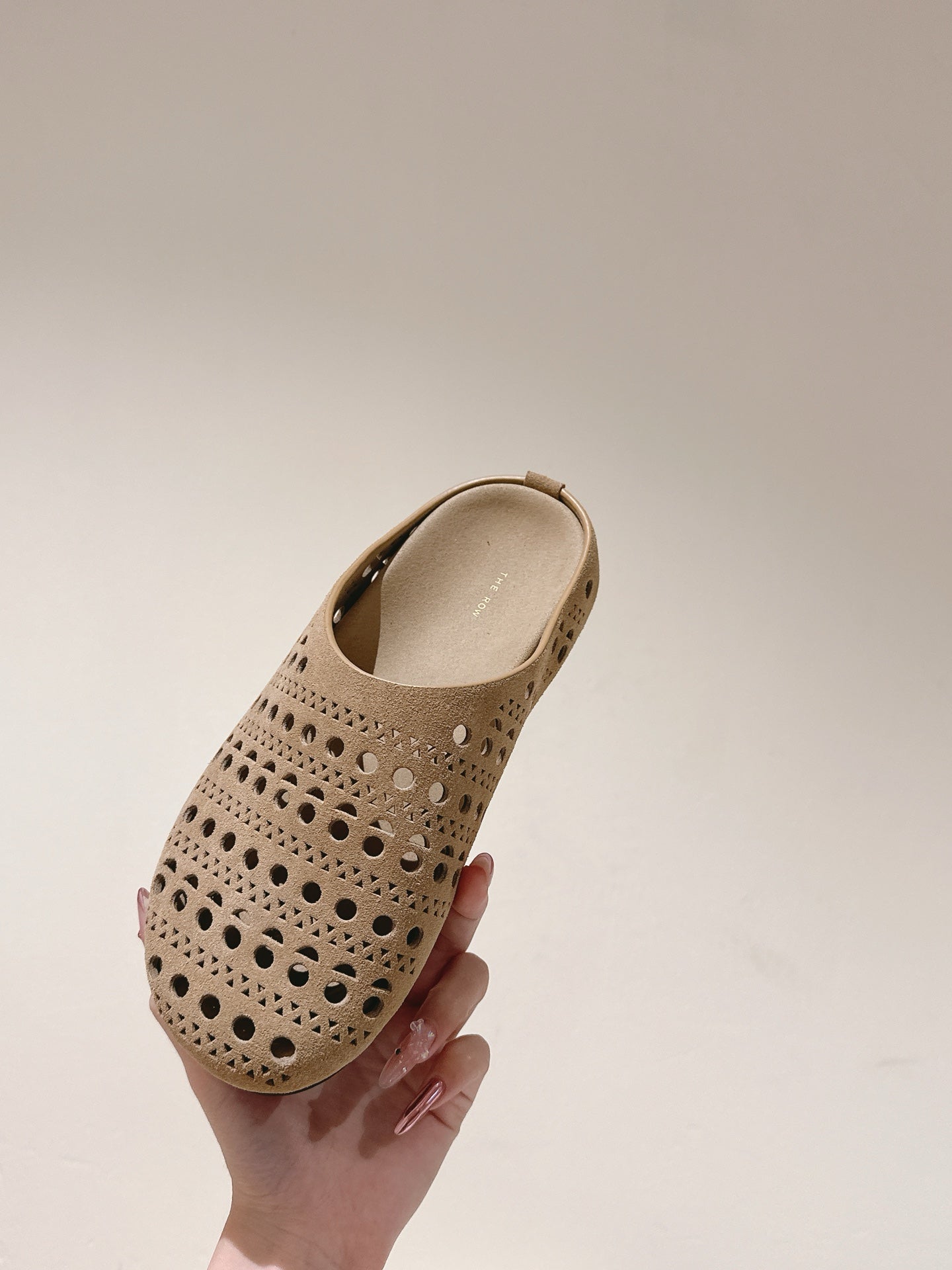 The Row 25ss Perforated Mule 20mm Beige Suede 451272
