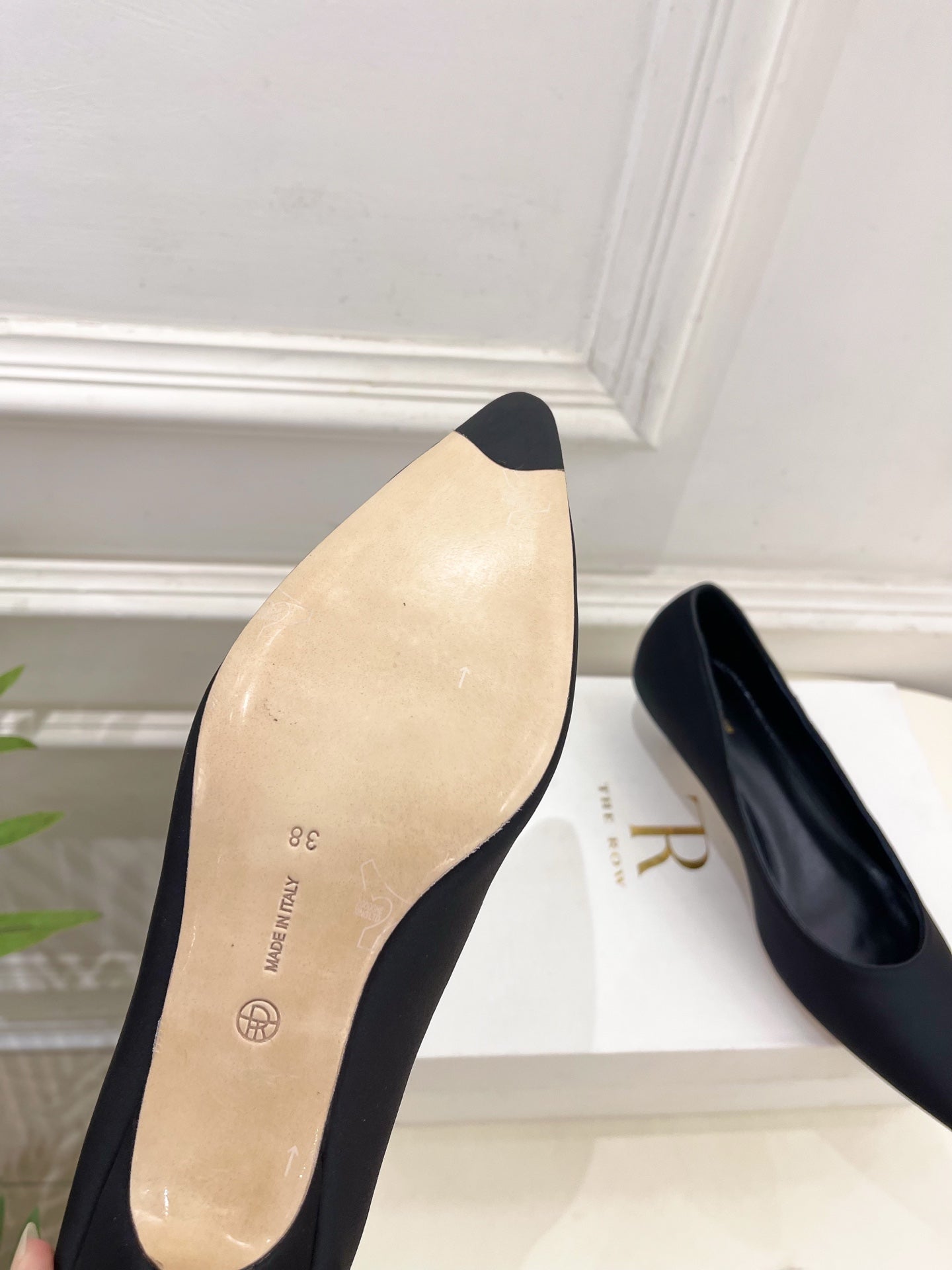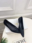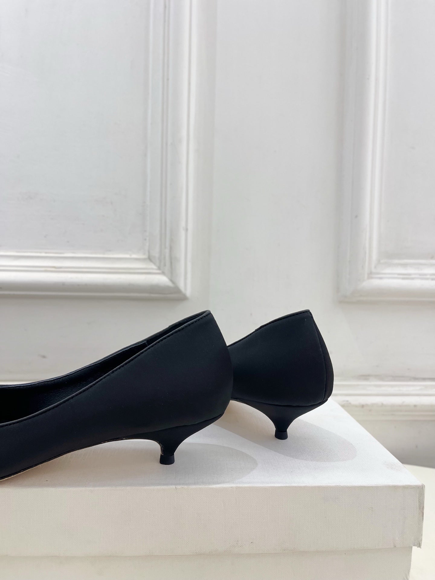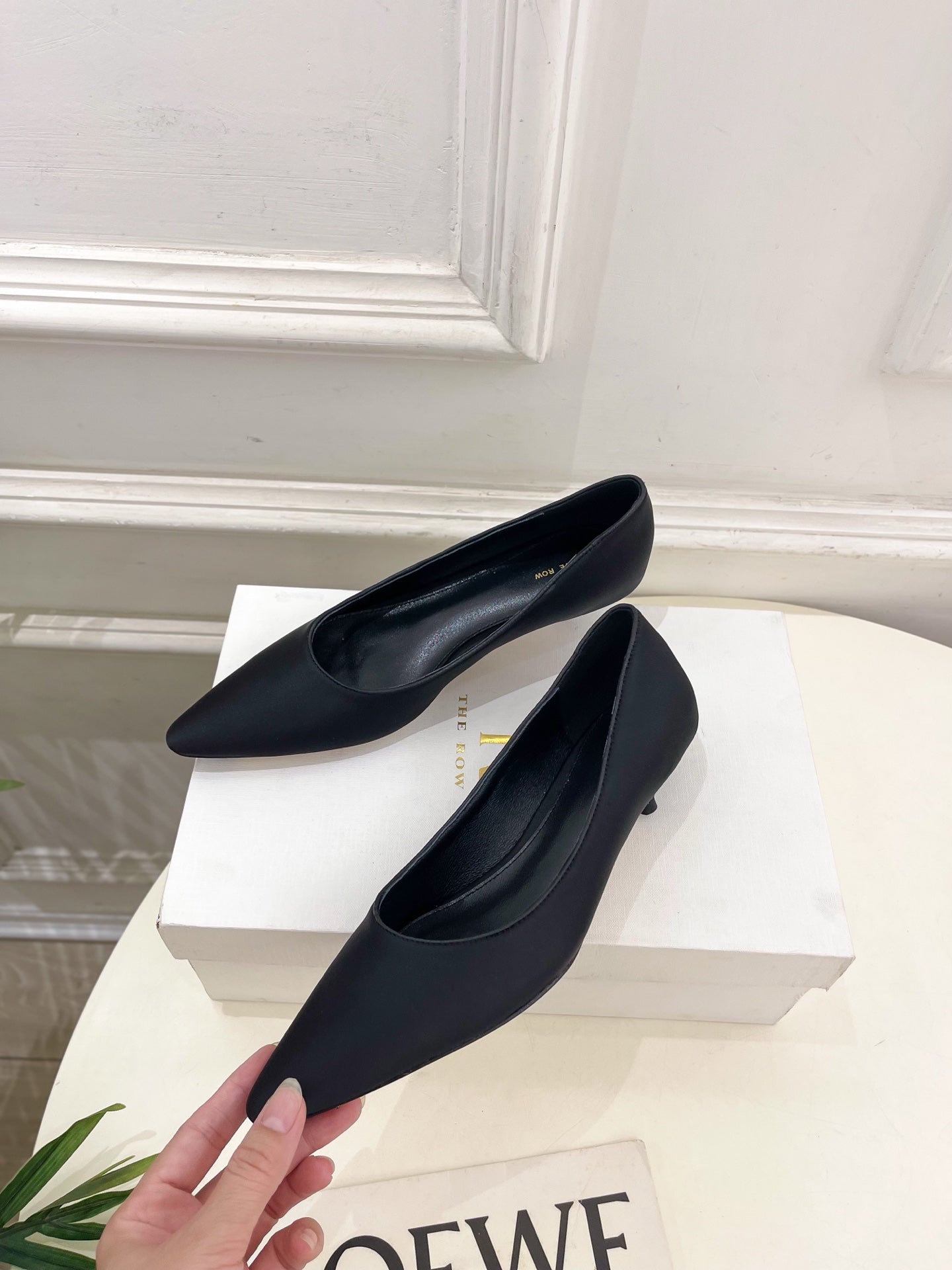The Row 25ss TR Kitten heel Pointed Toe Shoes 35mm Black Frabic Sheepskin 425556