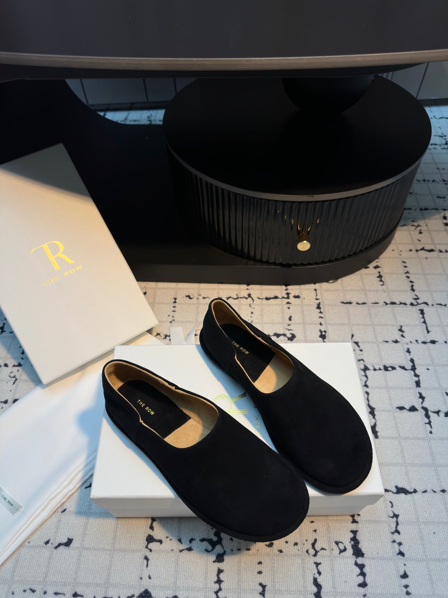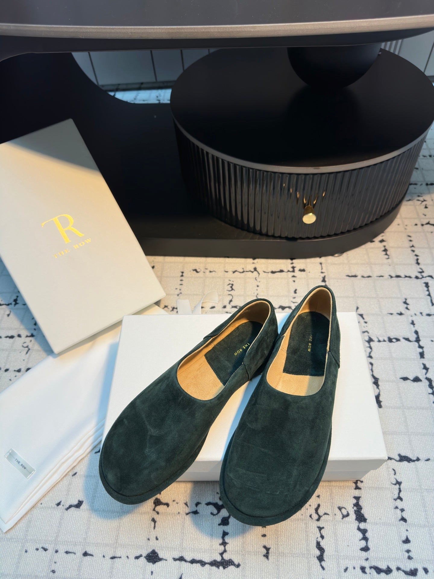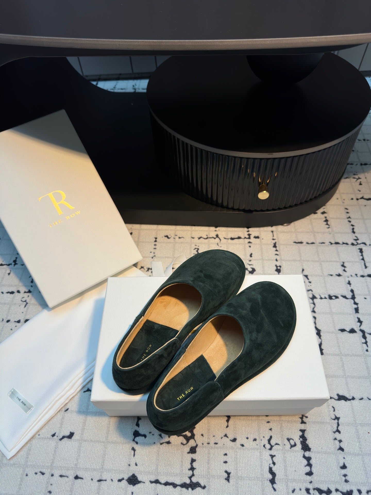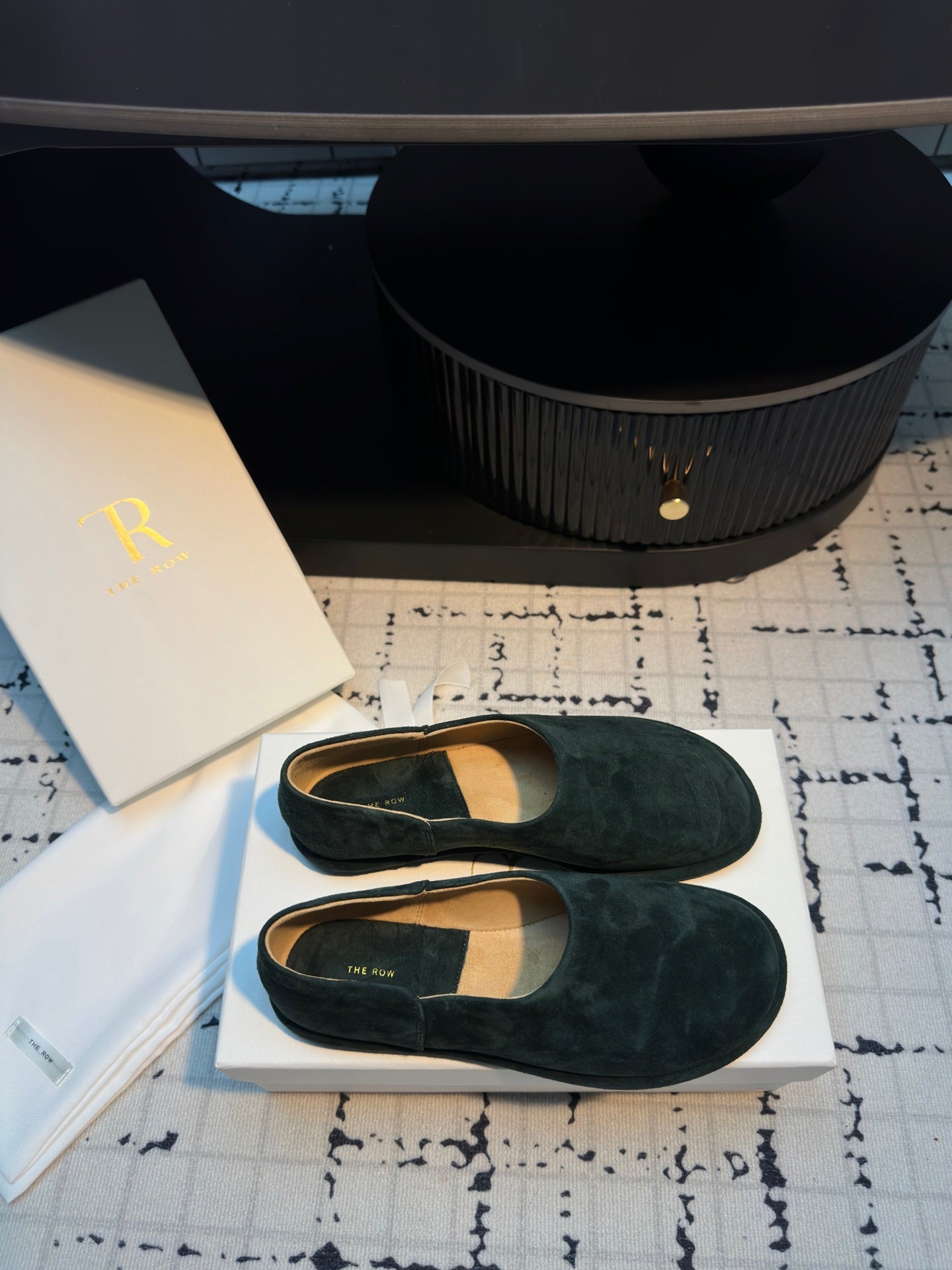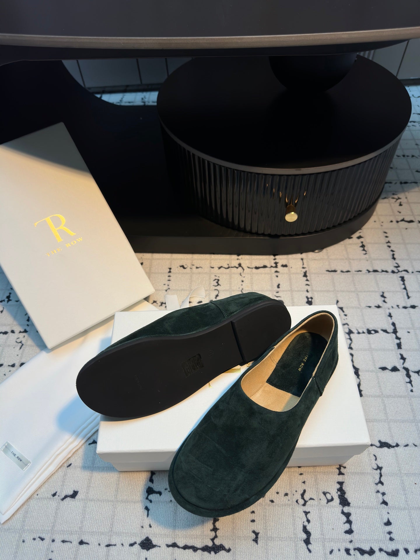 The Row Flat Loafer Dark Olive Green Cow Suede 334451