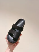 The Row Hugh Slides Black Cowhide Rubber 451281
