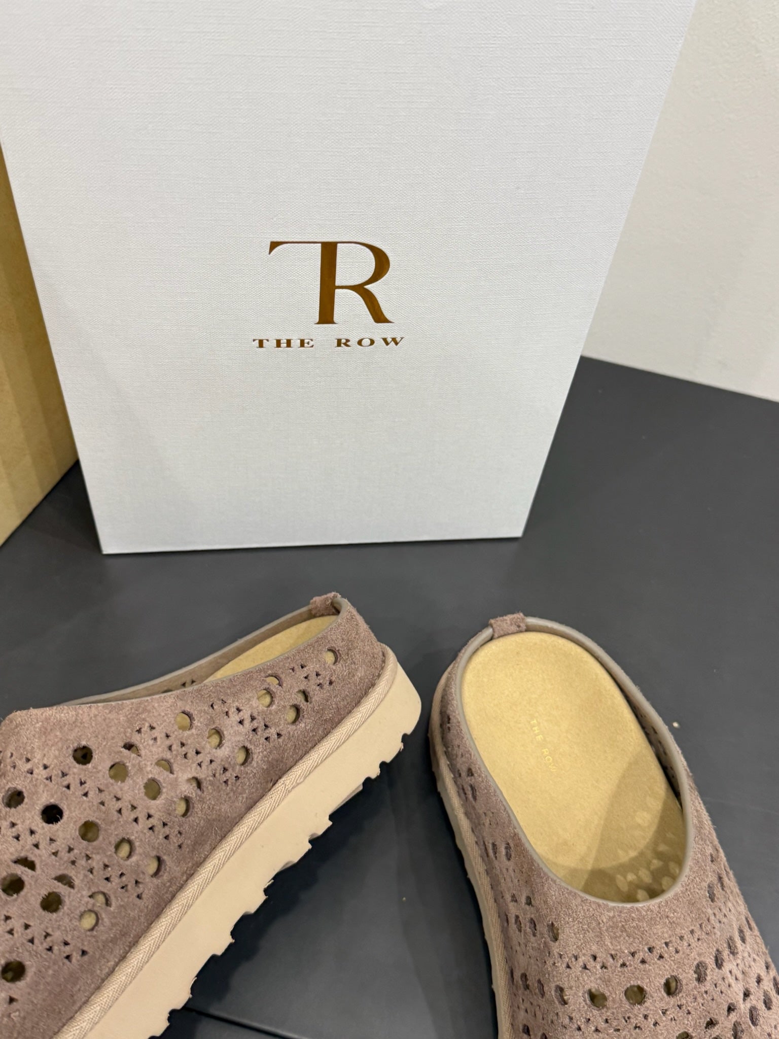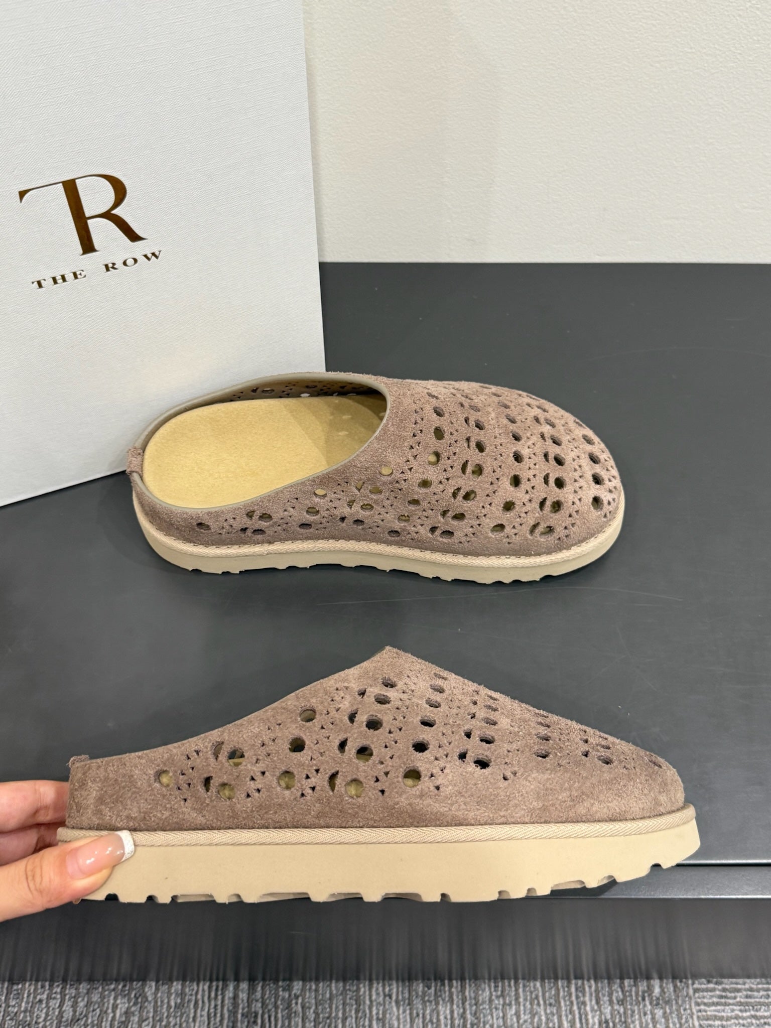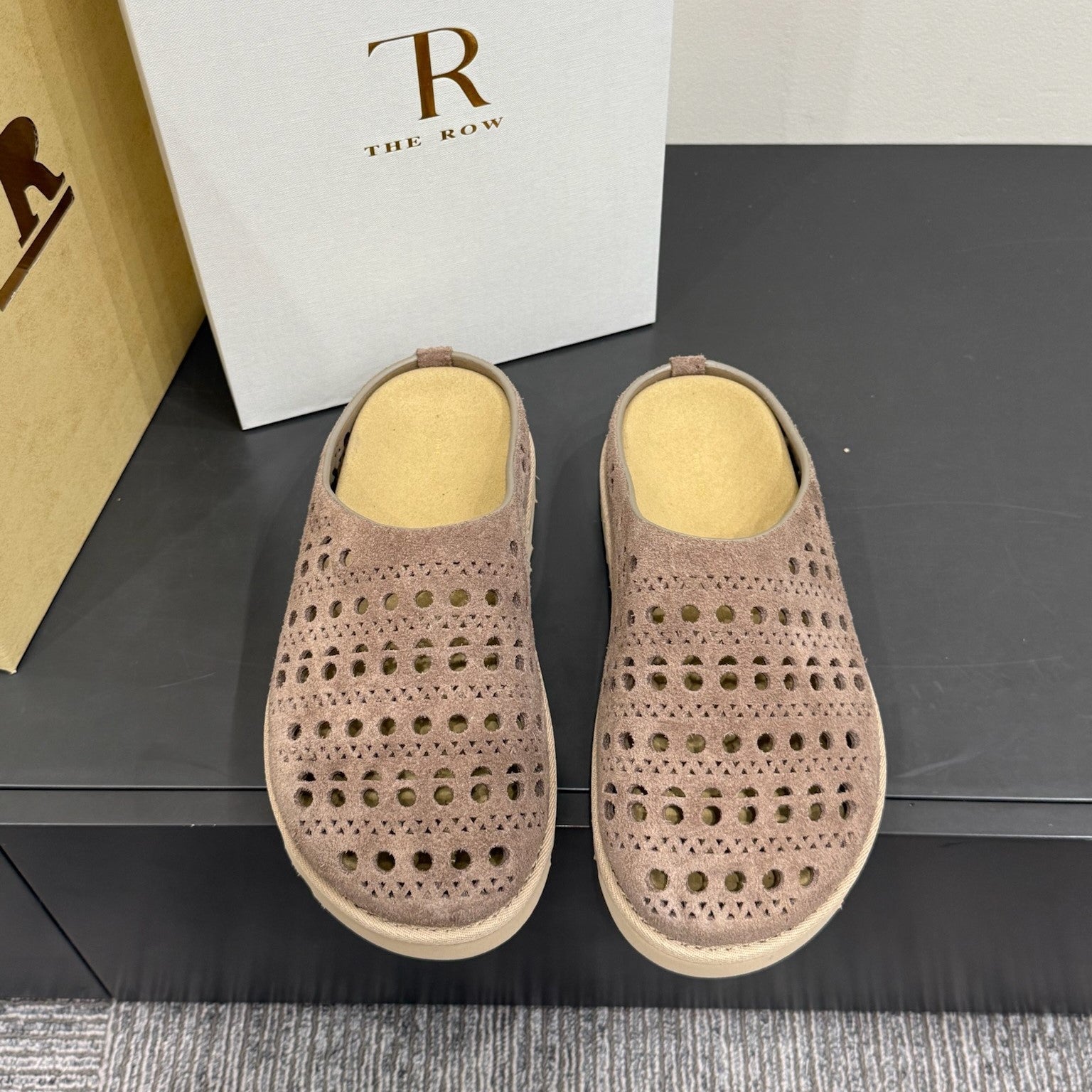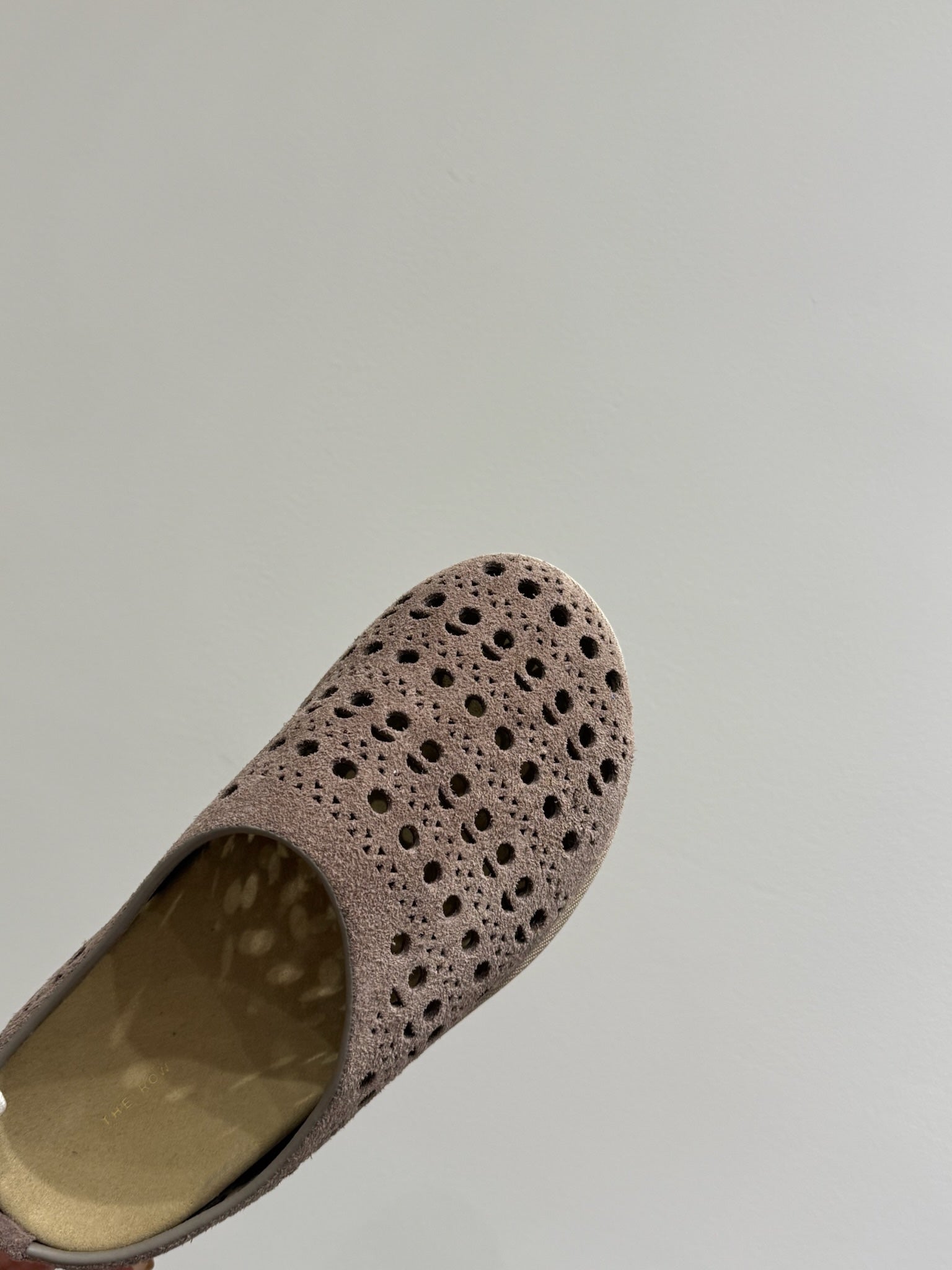The Row Laser-cut Toe Slippers Taupe Cow Suede 337485