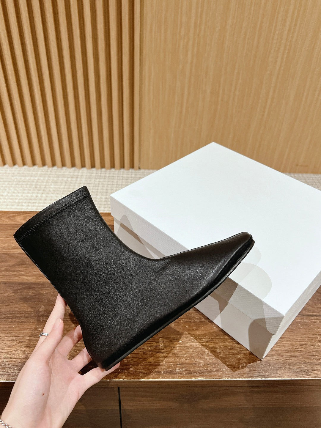 The Row Mid Sock Boots Black Sheepskin 427974