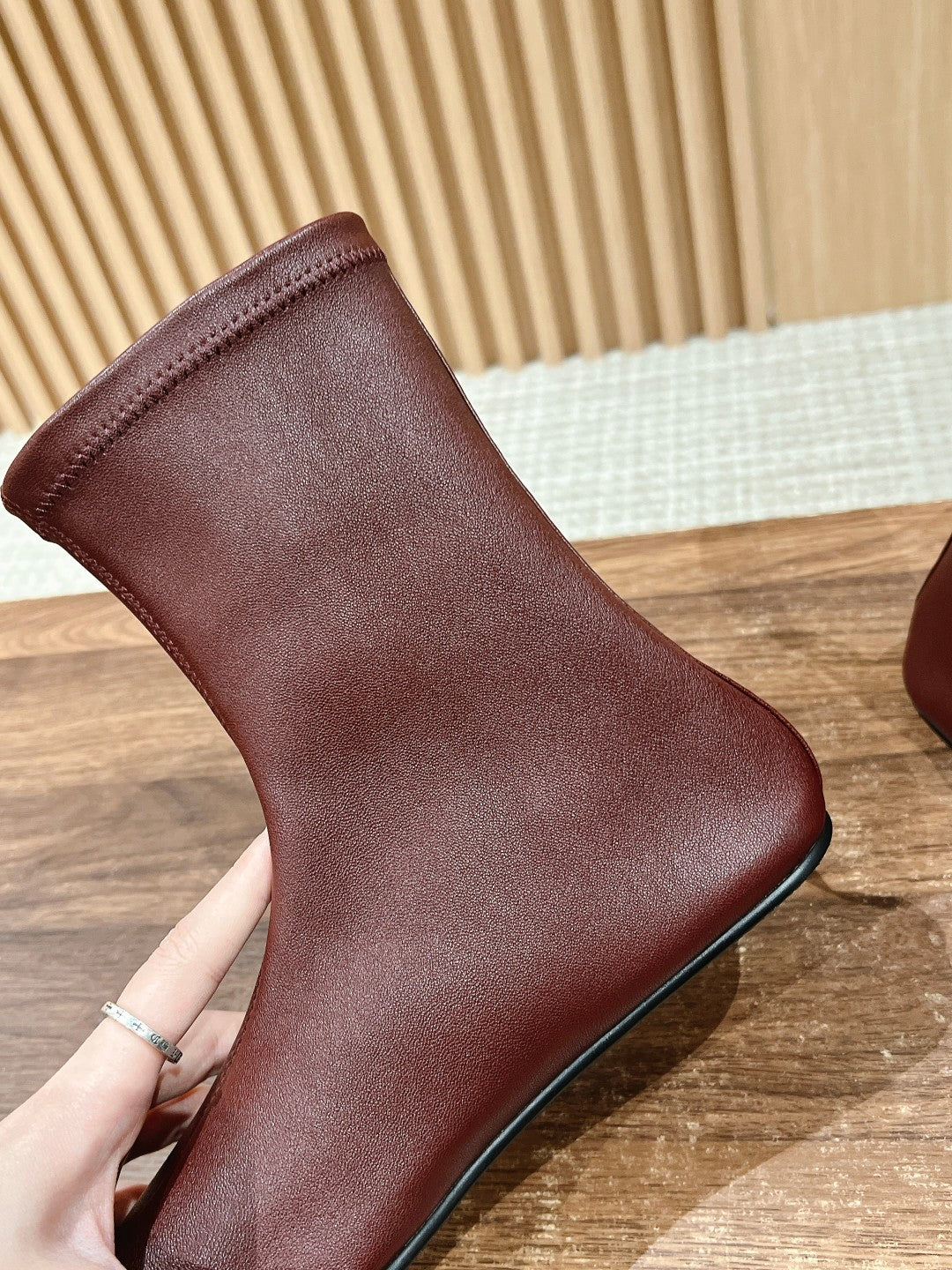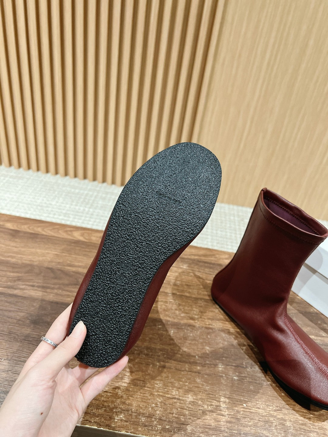 The Row Mid Sock Boots Burgundy Sheepskin 427974