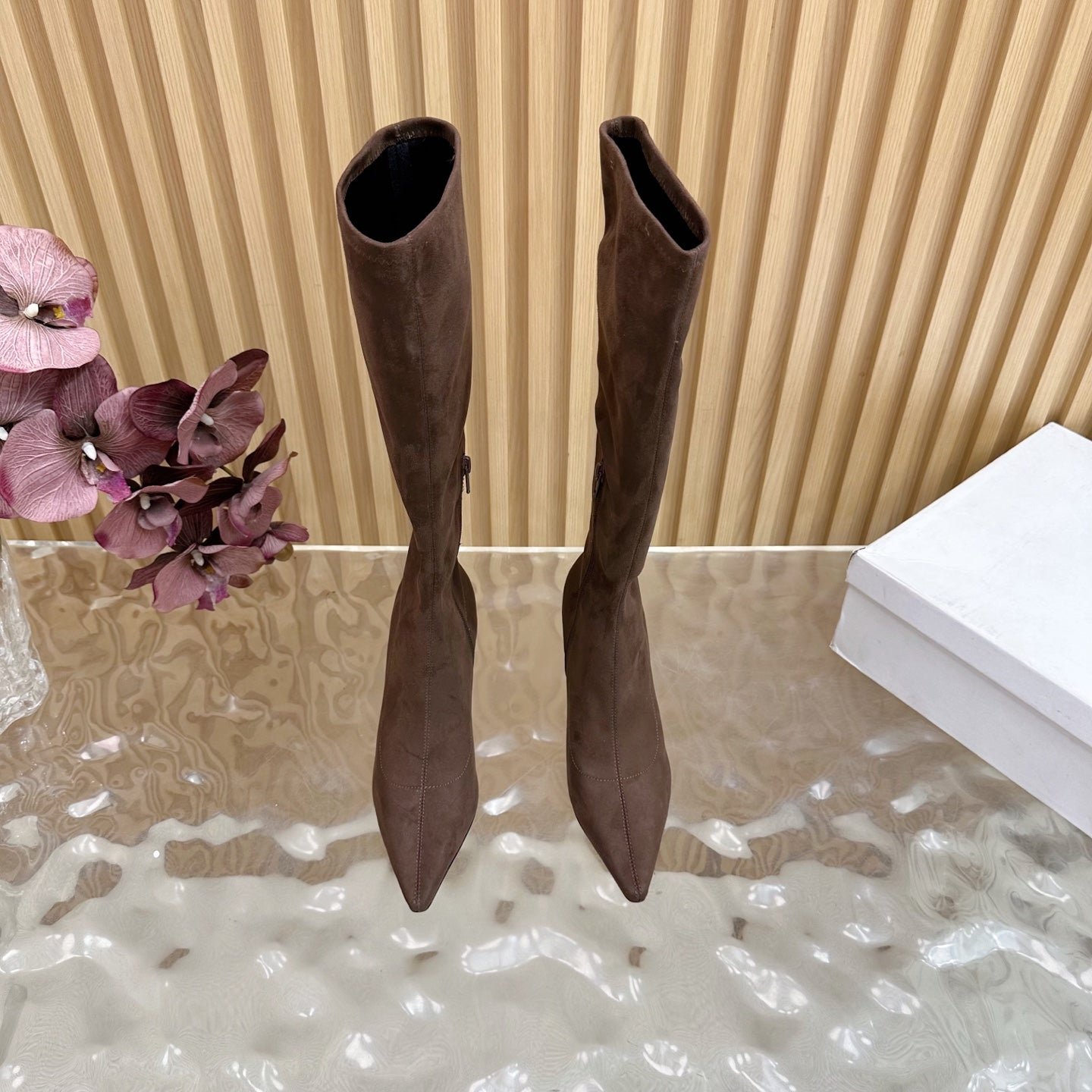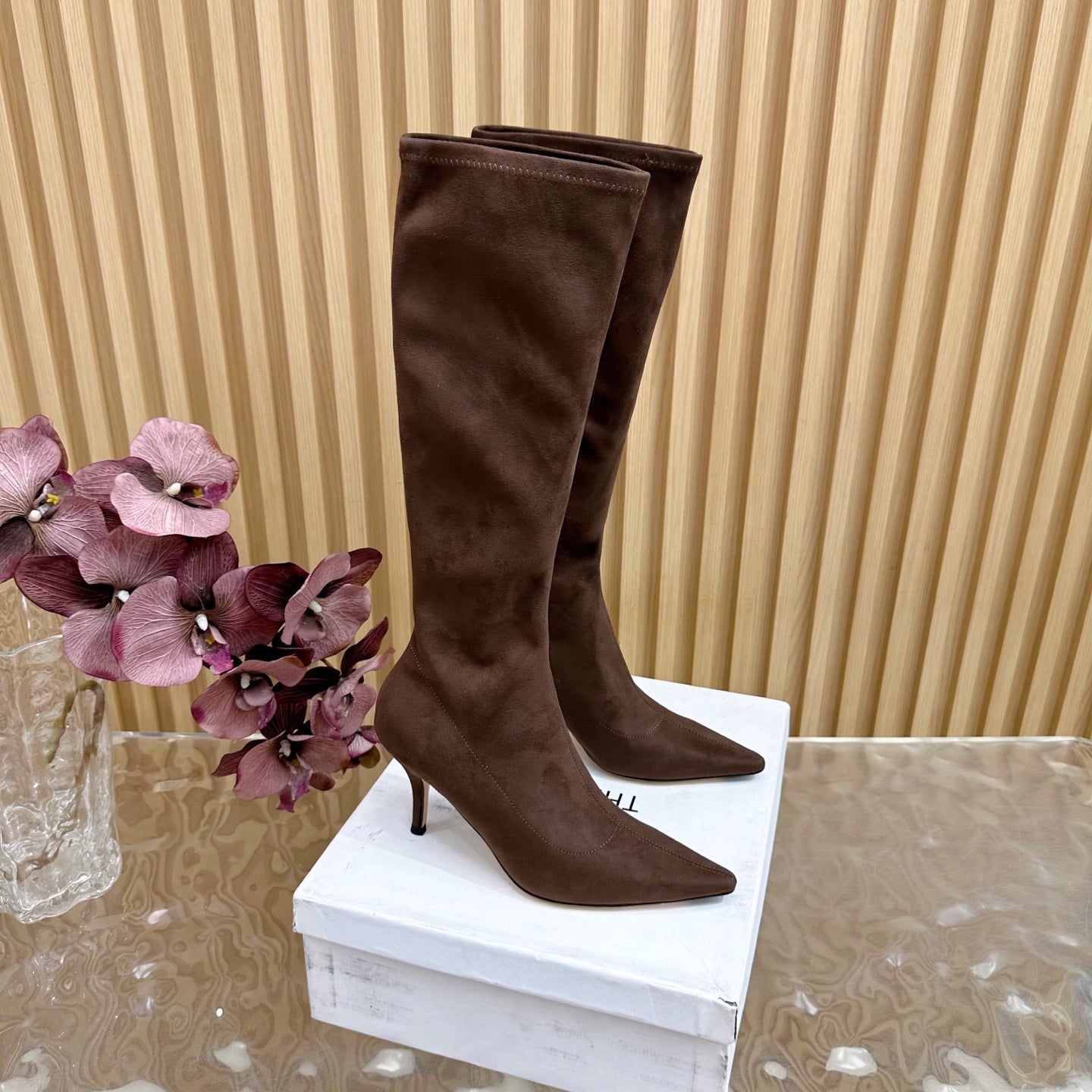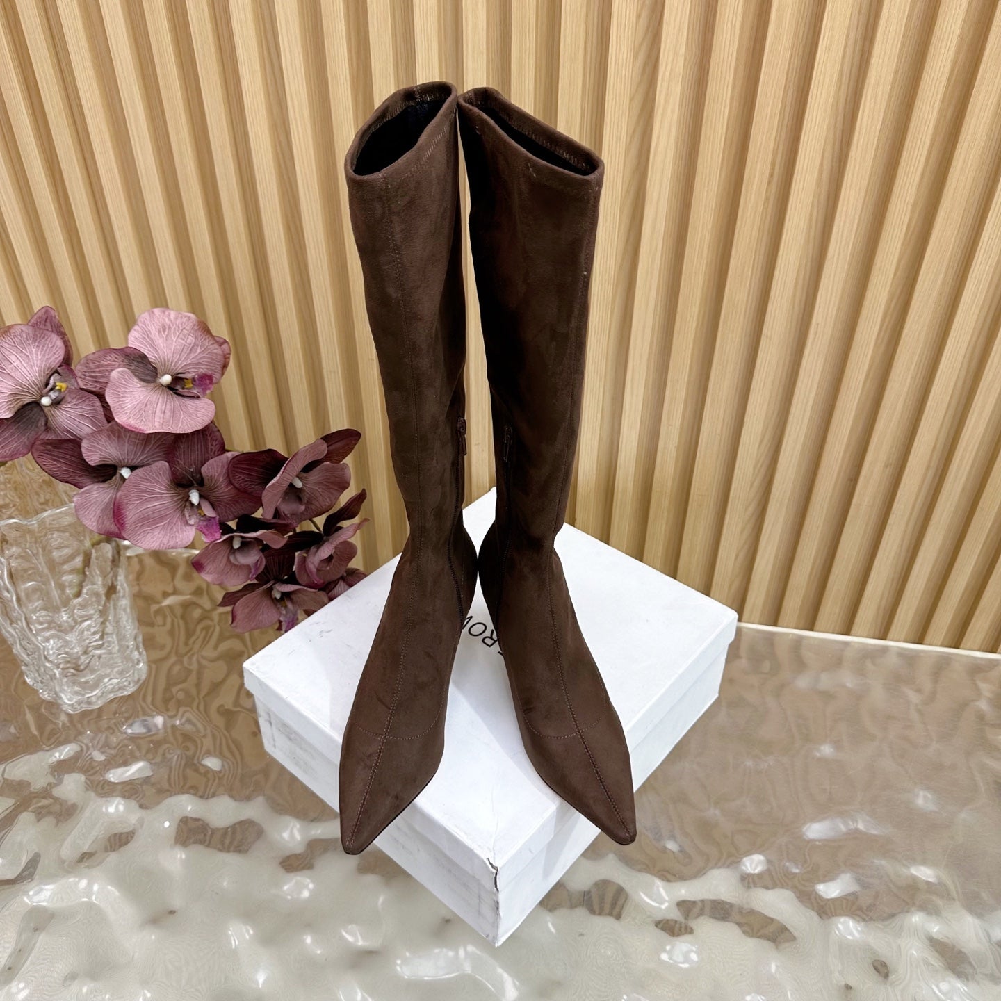 The Row Pointed-toe Knee-high Boots 35mm Dark Brown Suede 436640