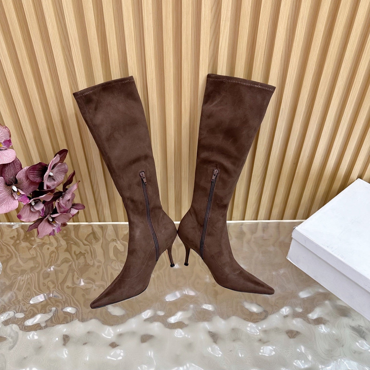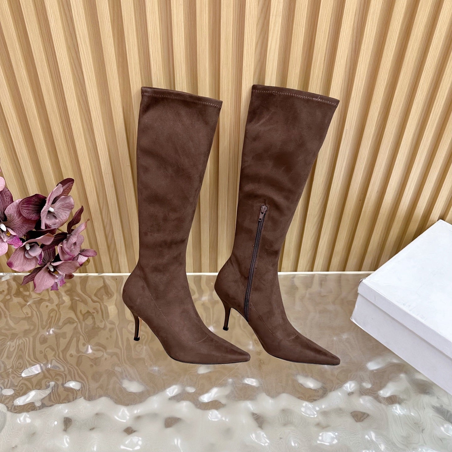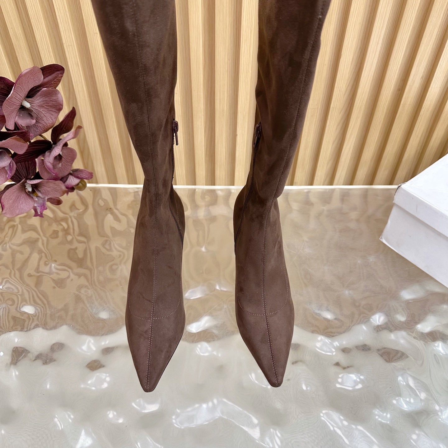 The Row Pointed-toe Knee-high Boots 35mm Dark Brown Suede 436640