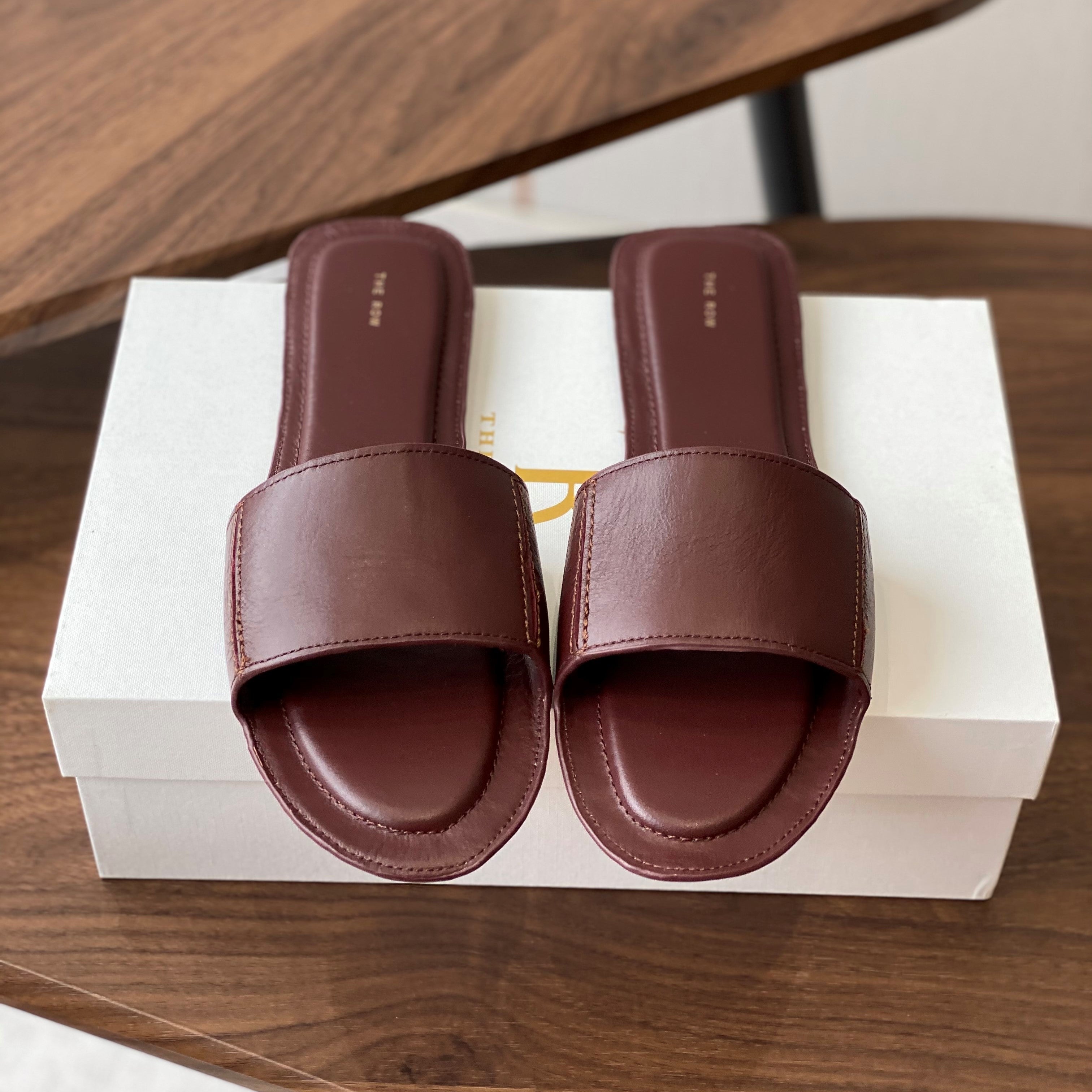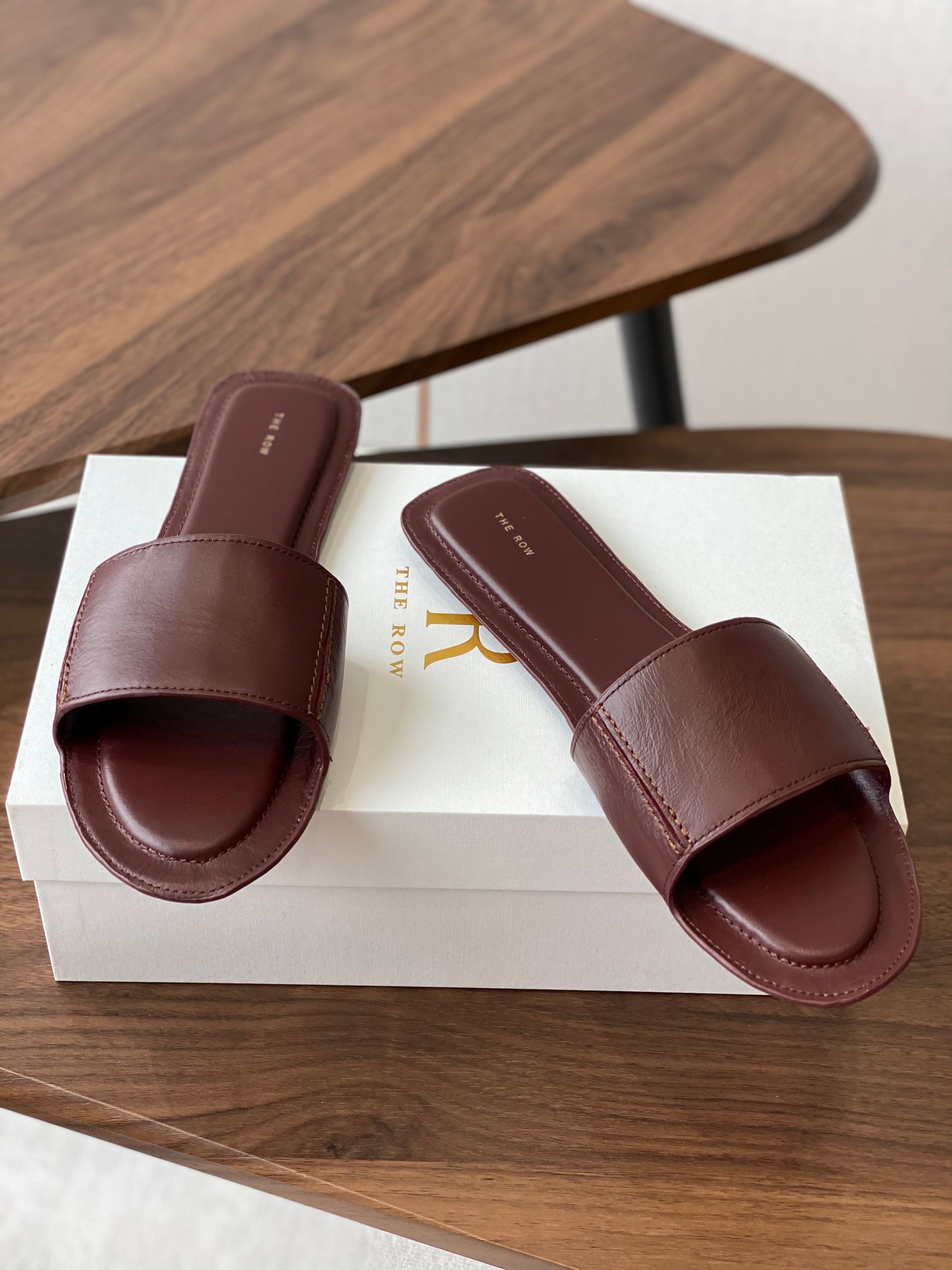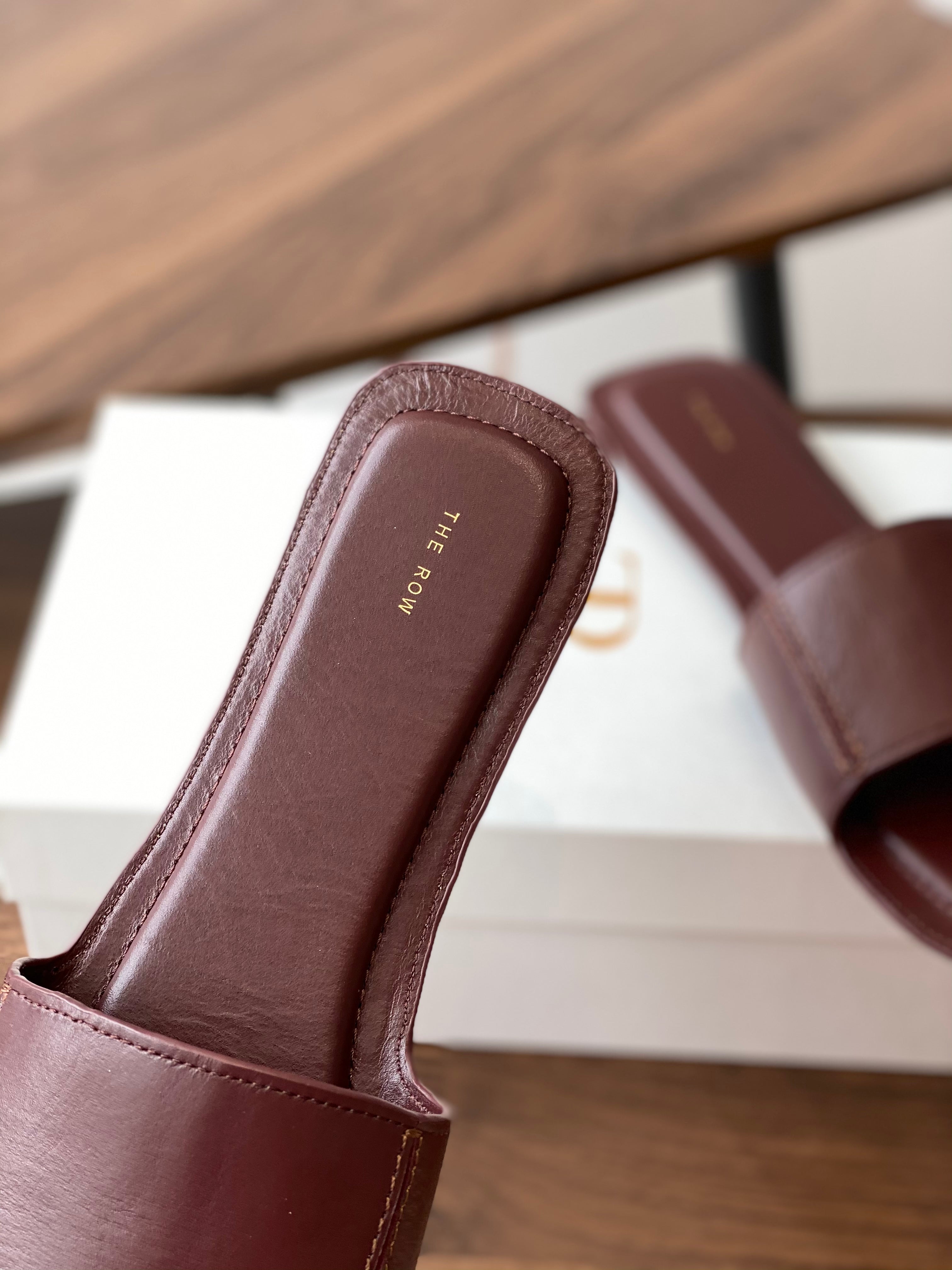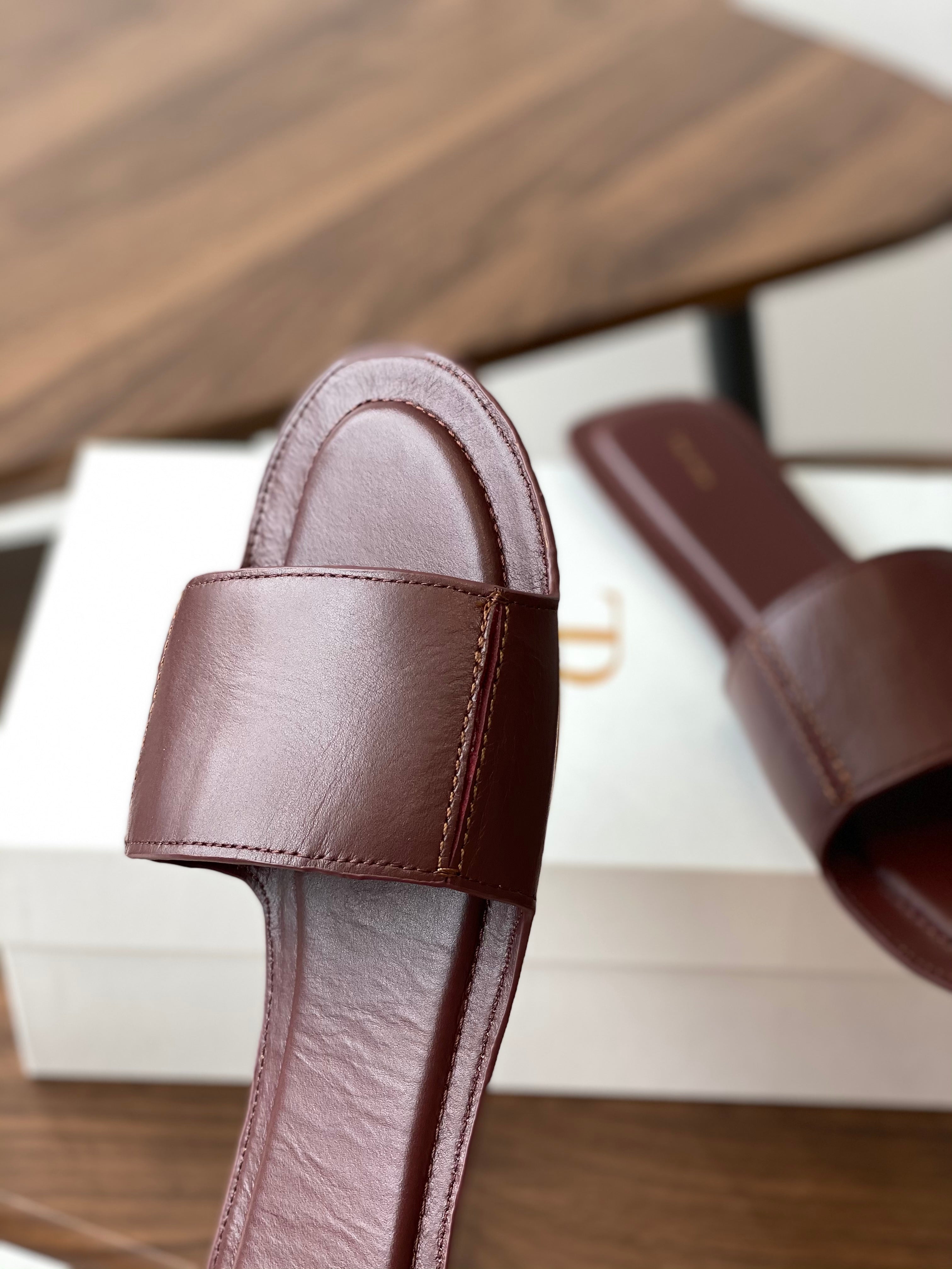 The Row Sara Strap Slide Sandal Dark Russet Brown Cowhide 330805
