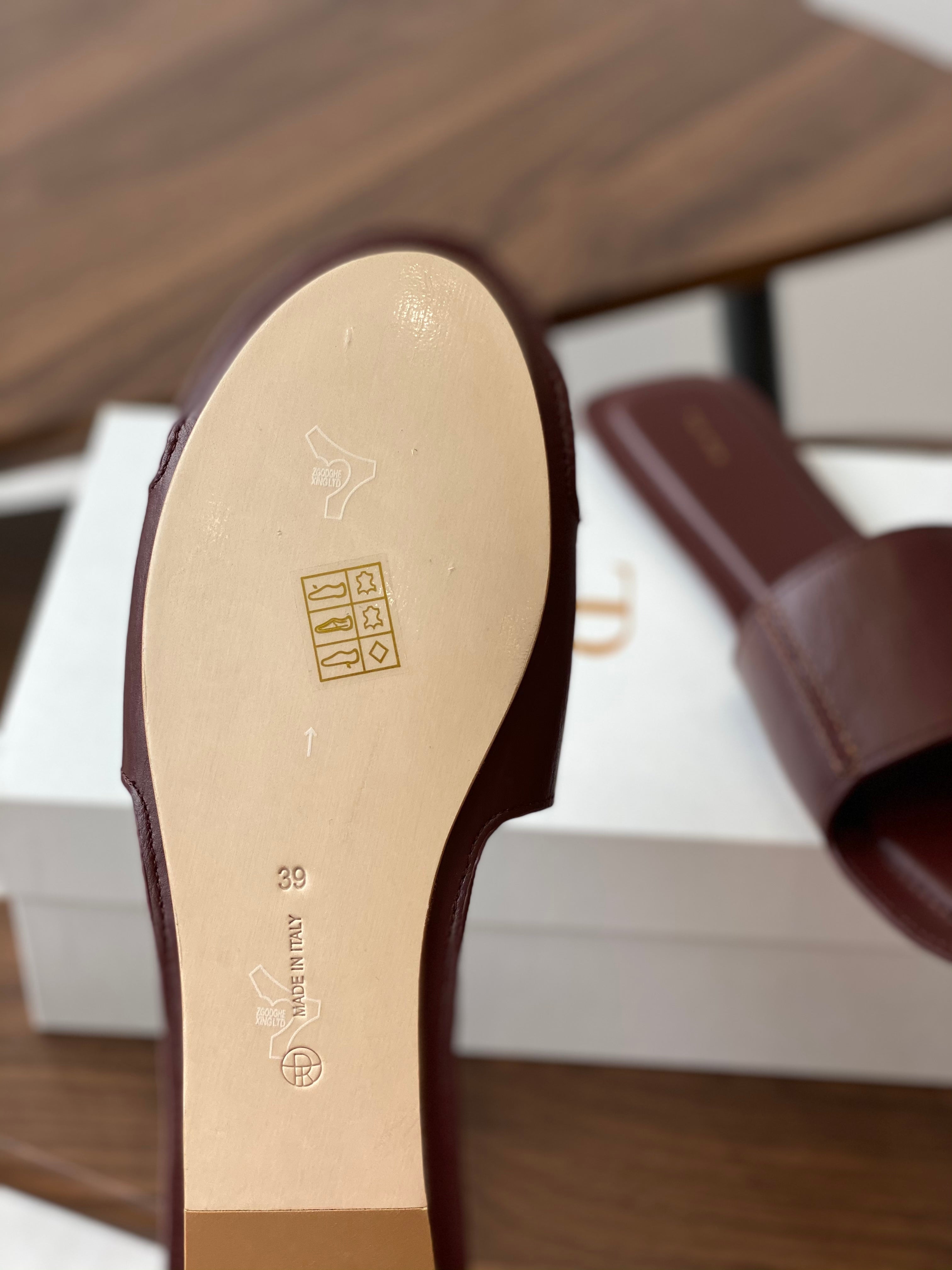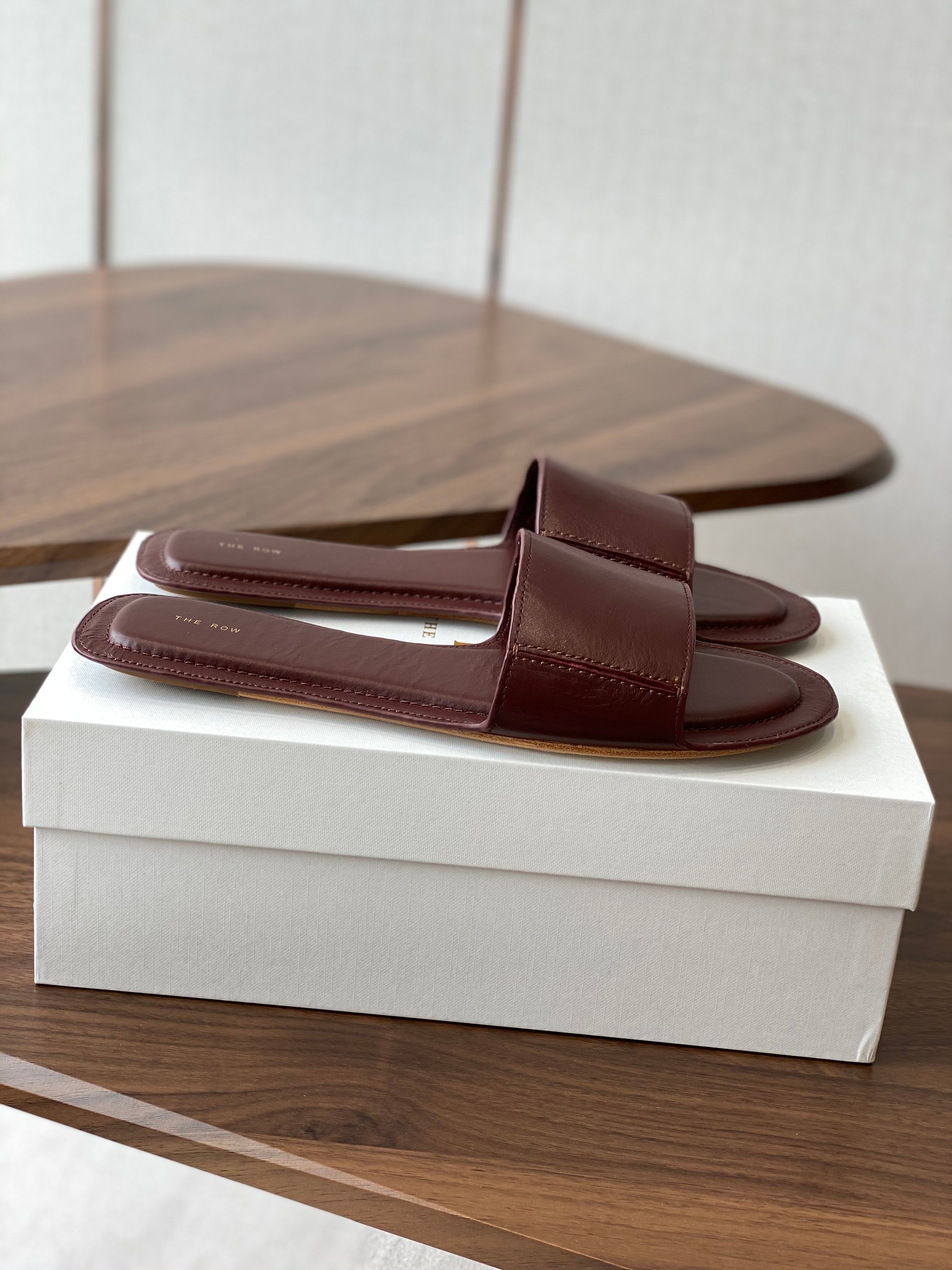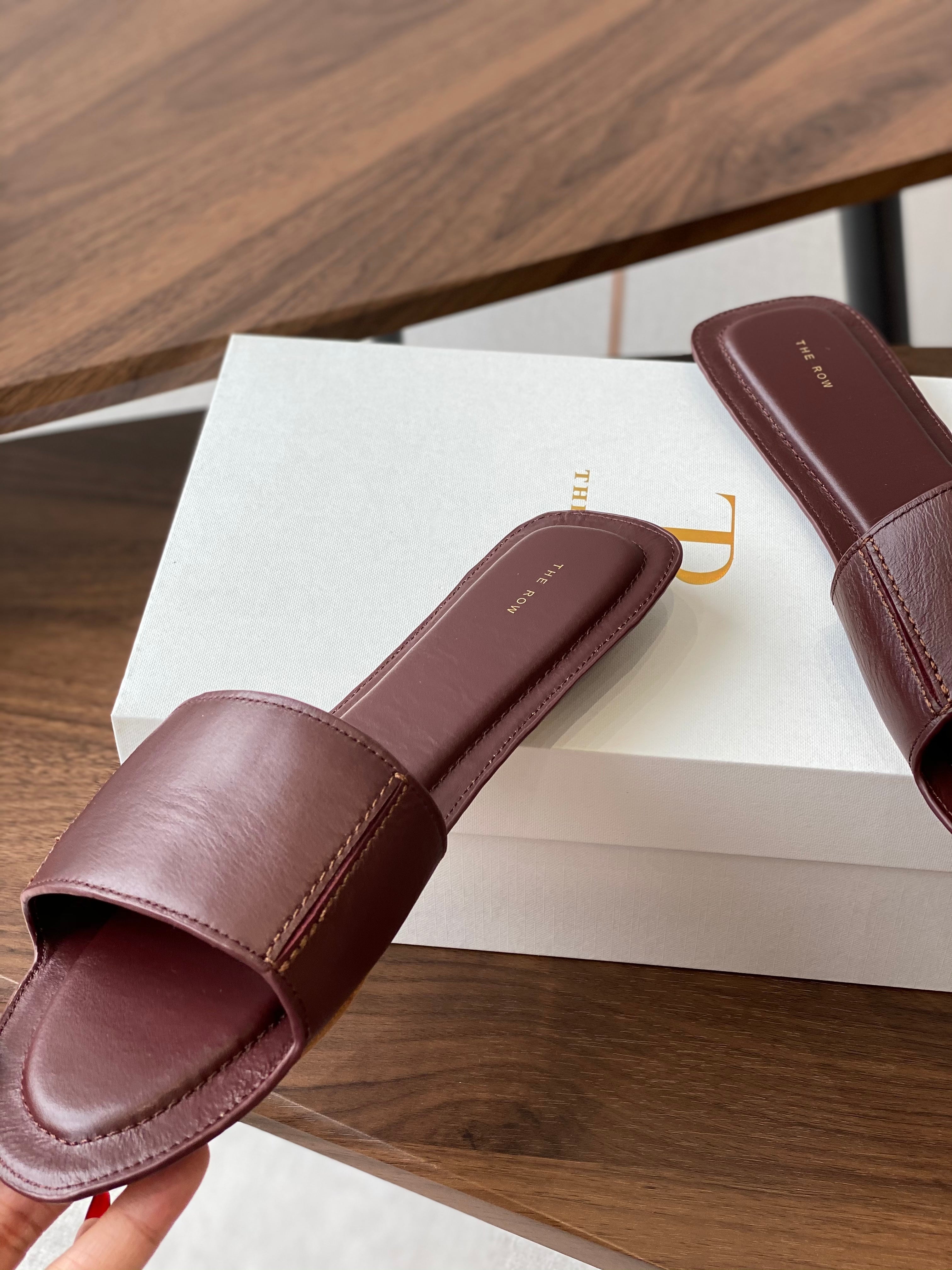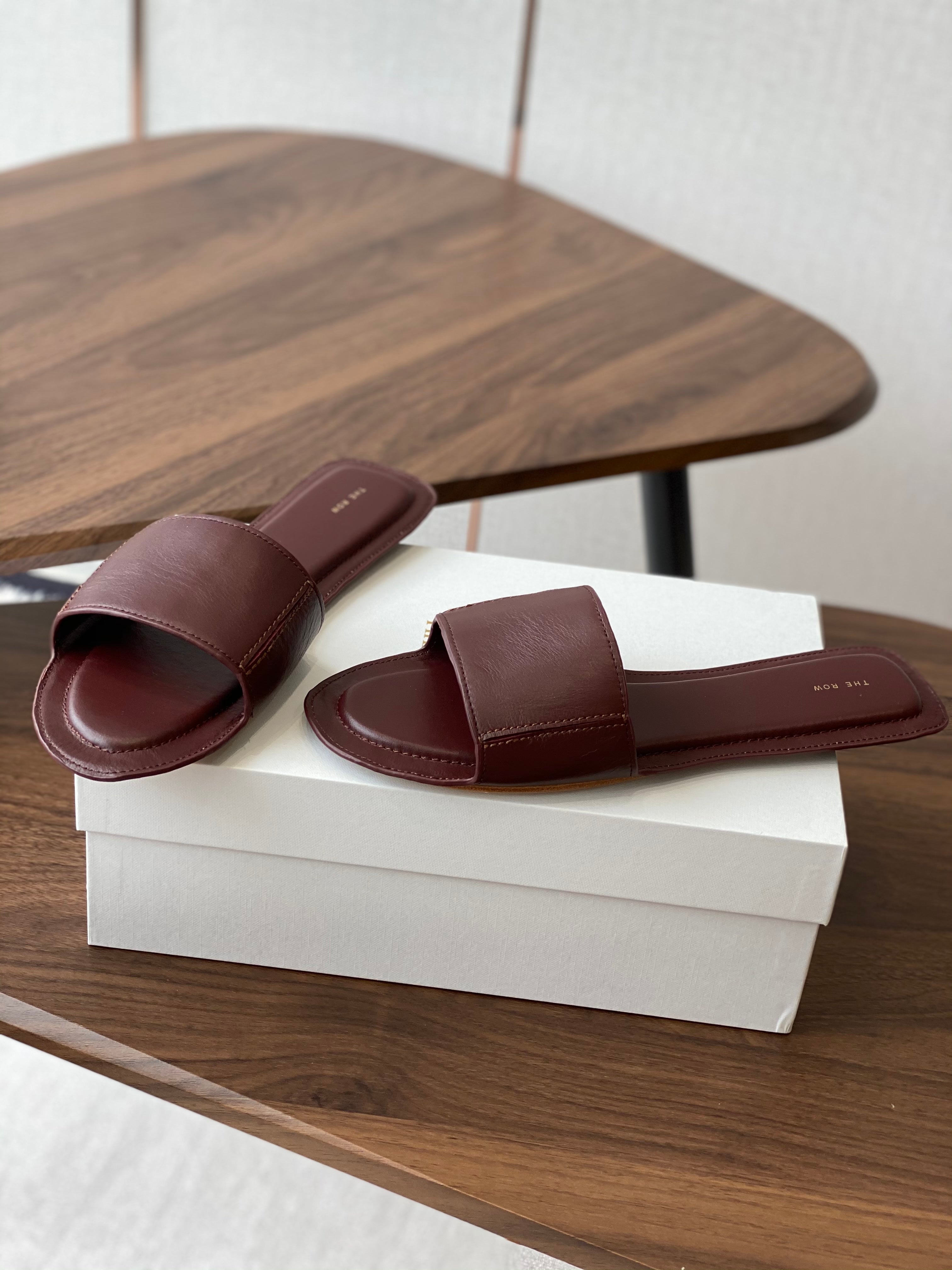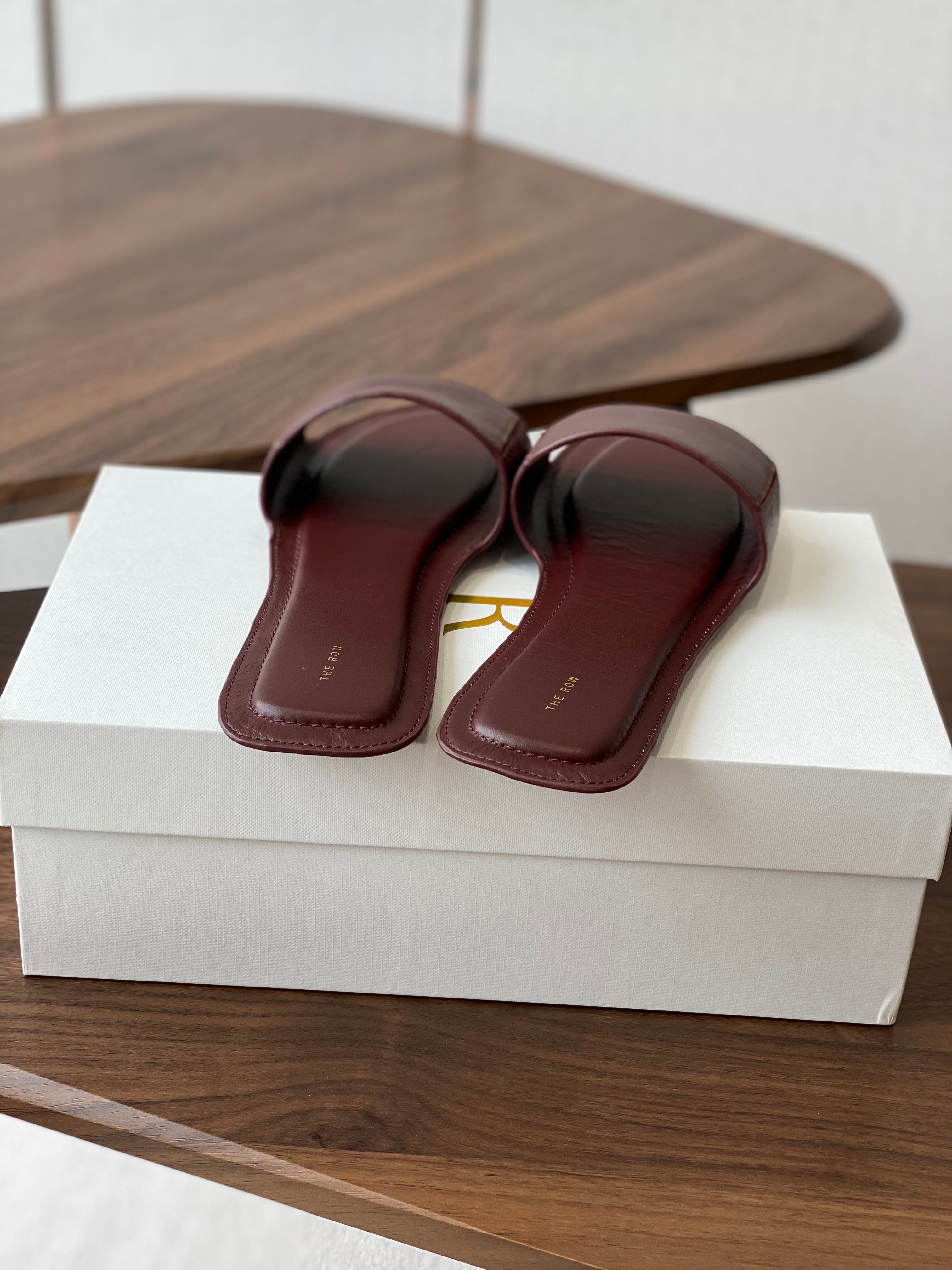 The Row Sara Strap Slide Sandal Dark Russet Brown Cowhide 330805