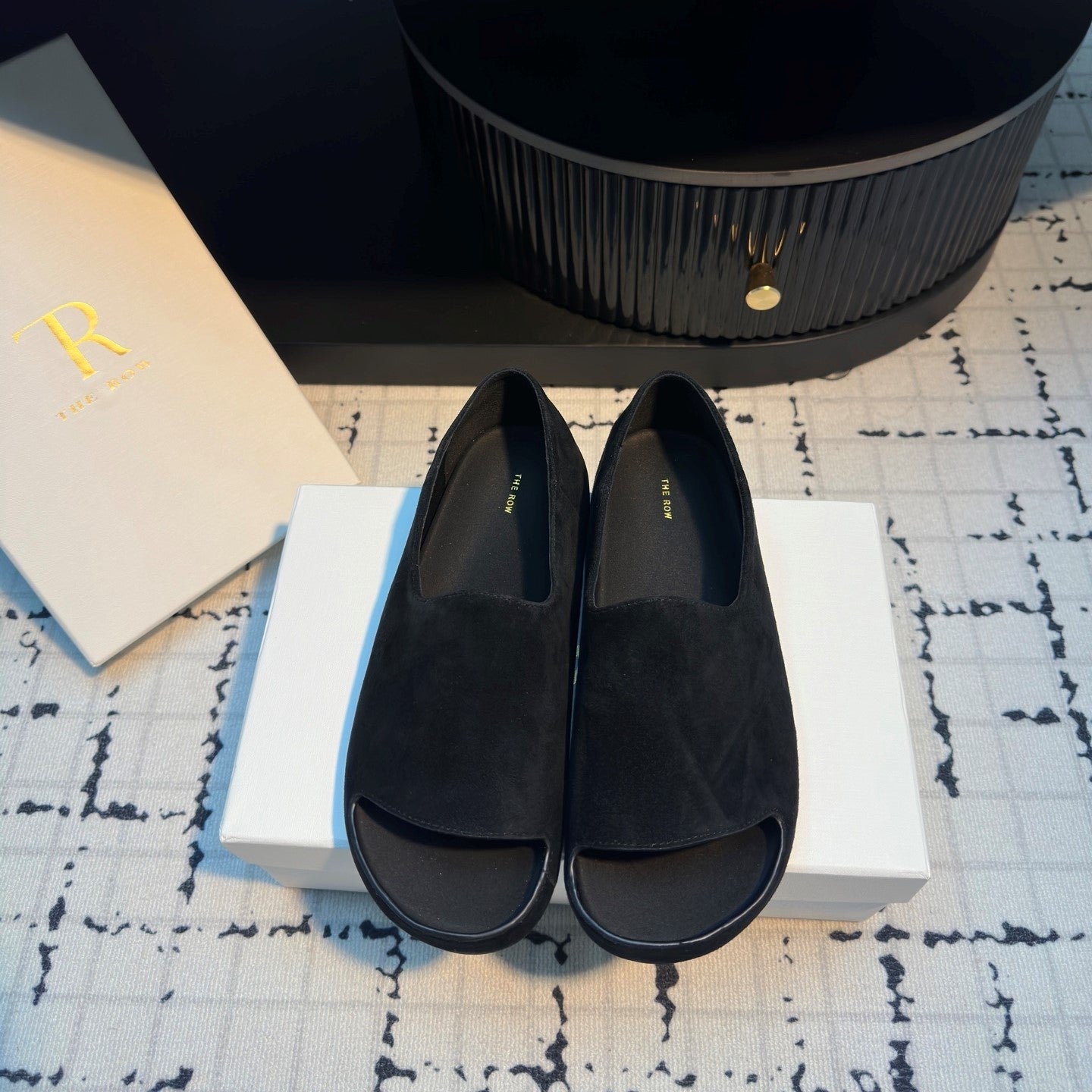 The Row Slide Mules Black Cow Suede 334352