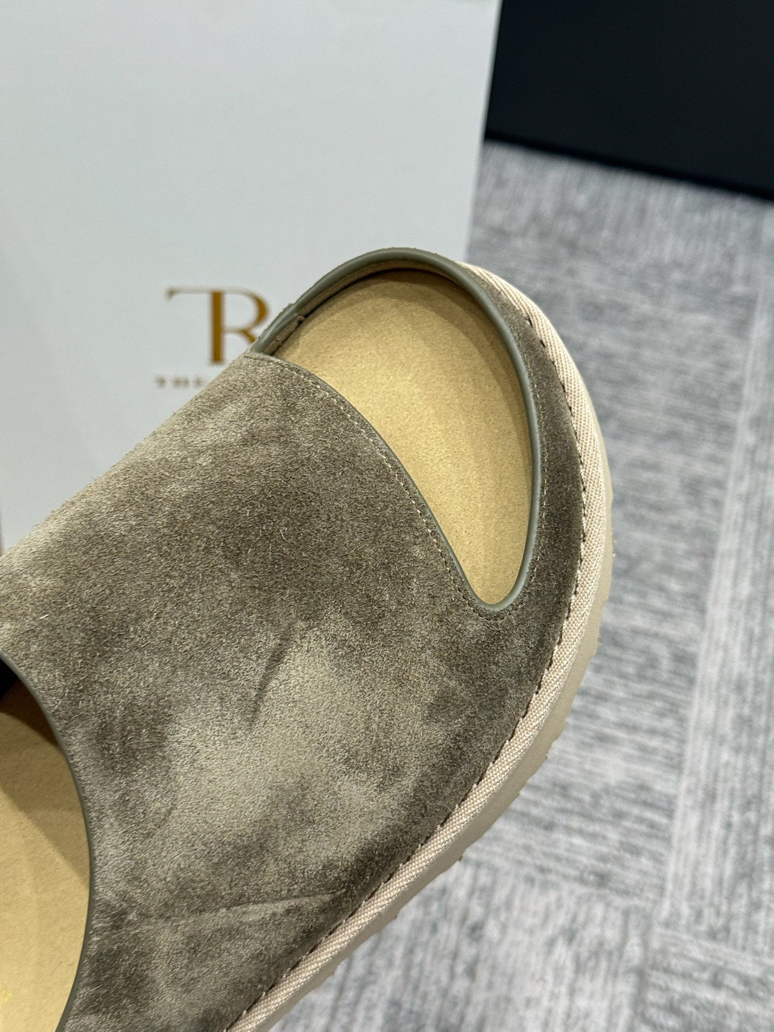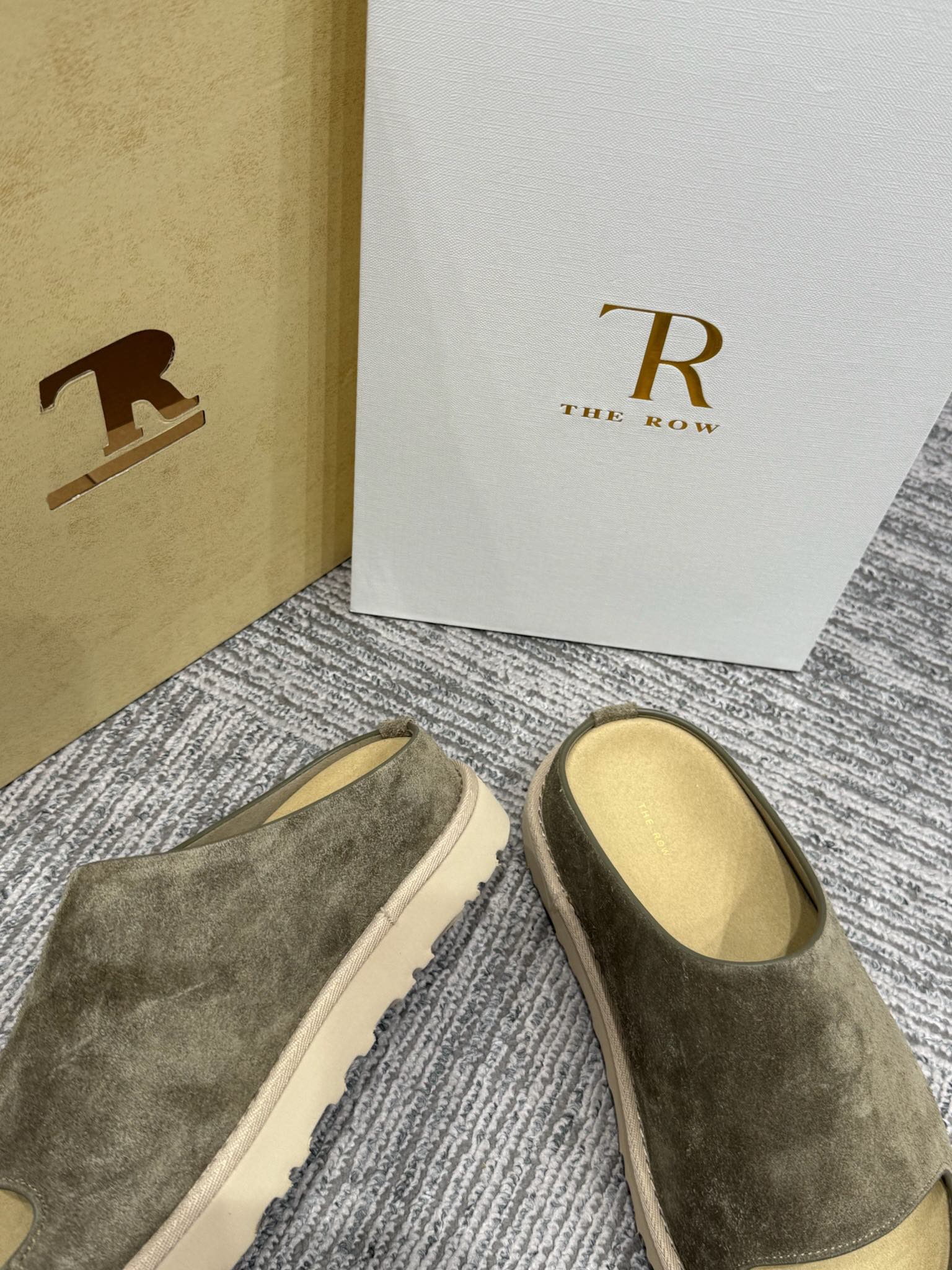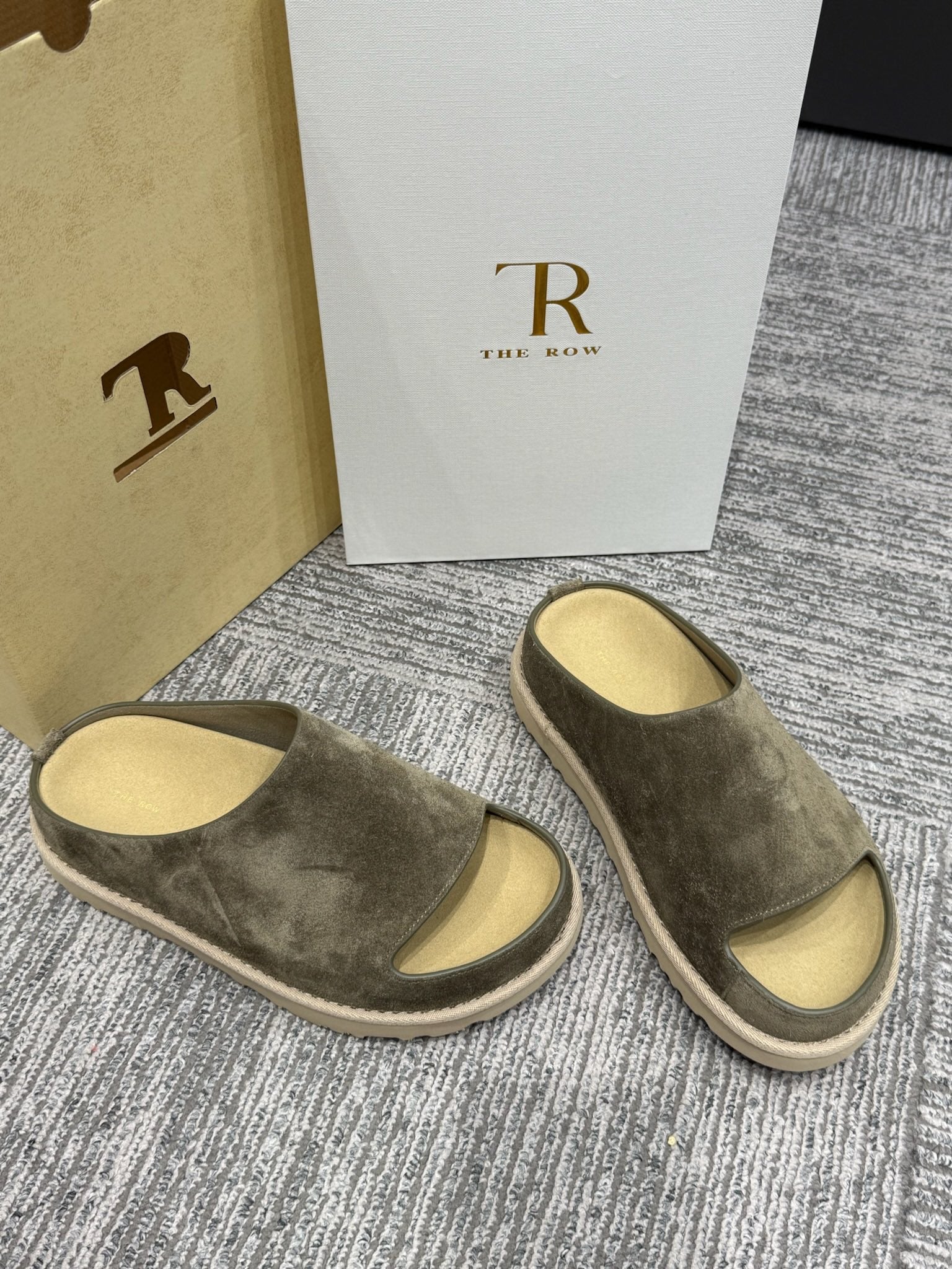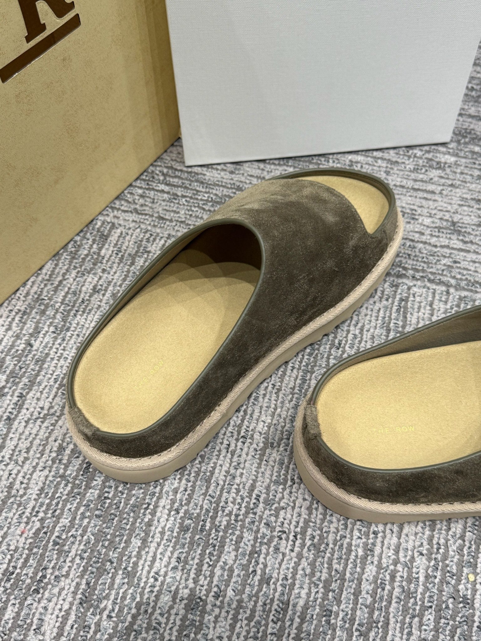 The Row Slide Sandals Olive Green Cow Suede 337473