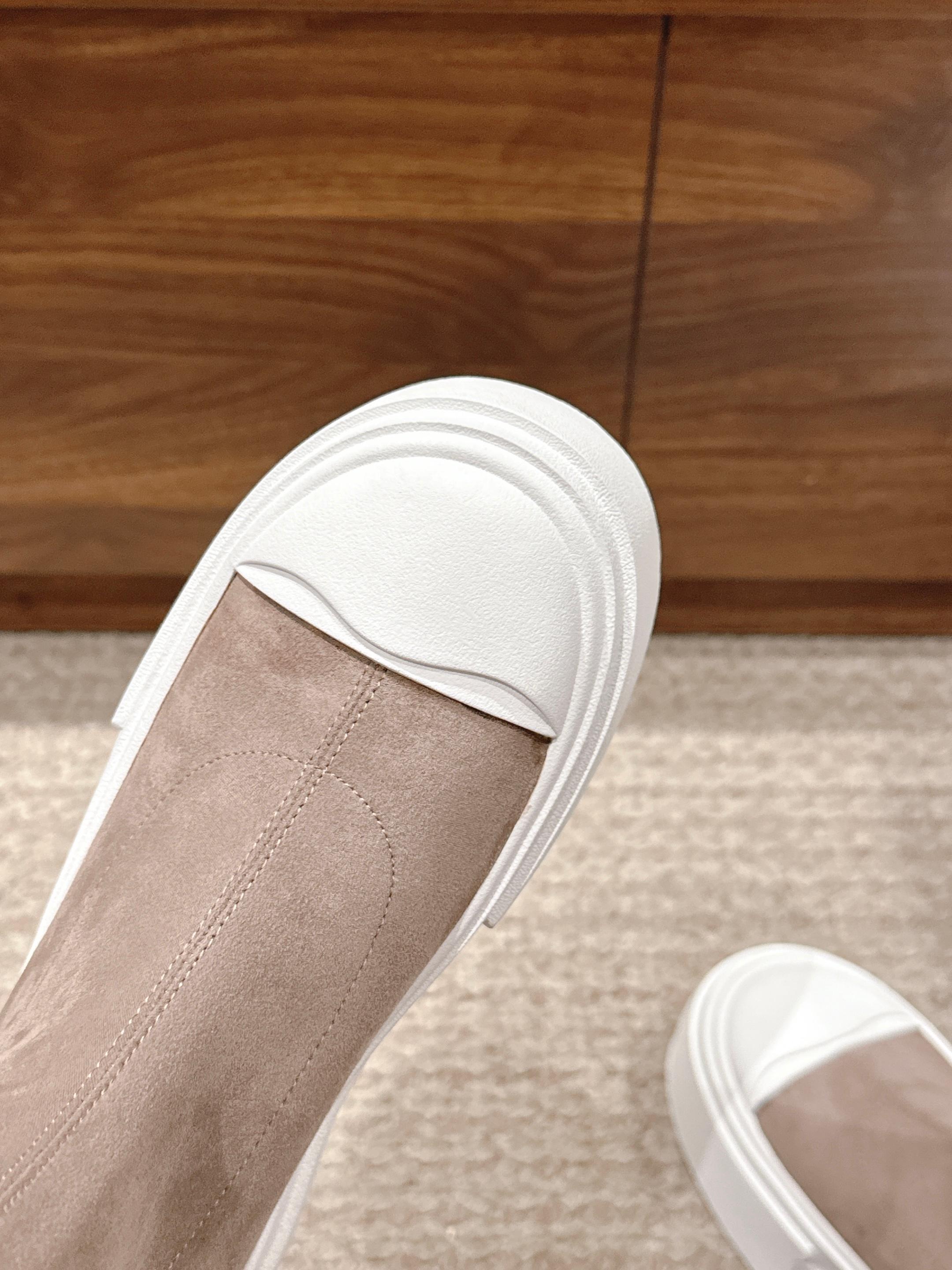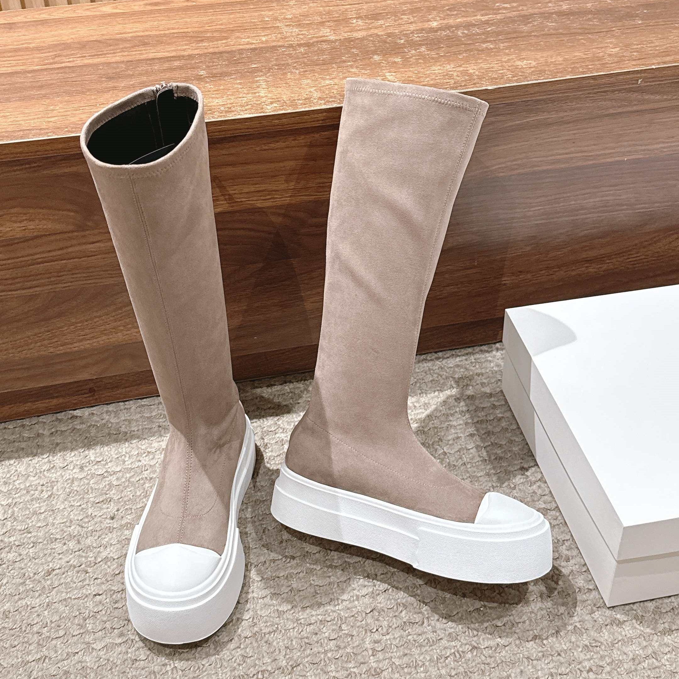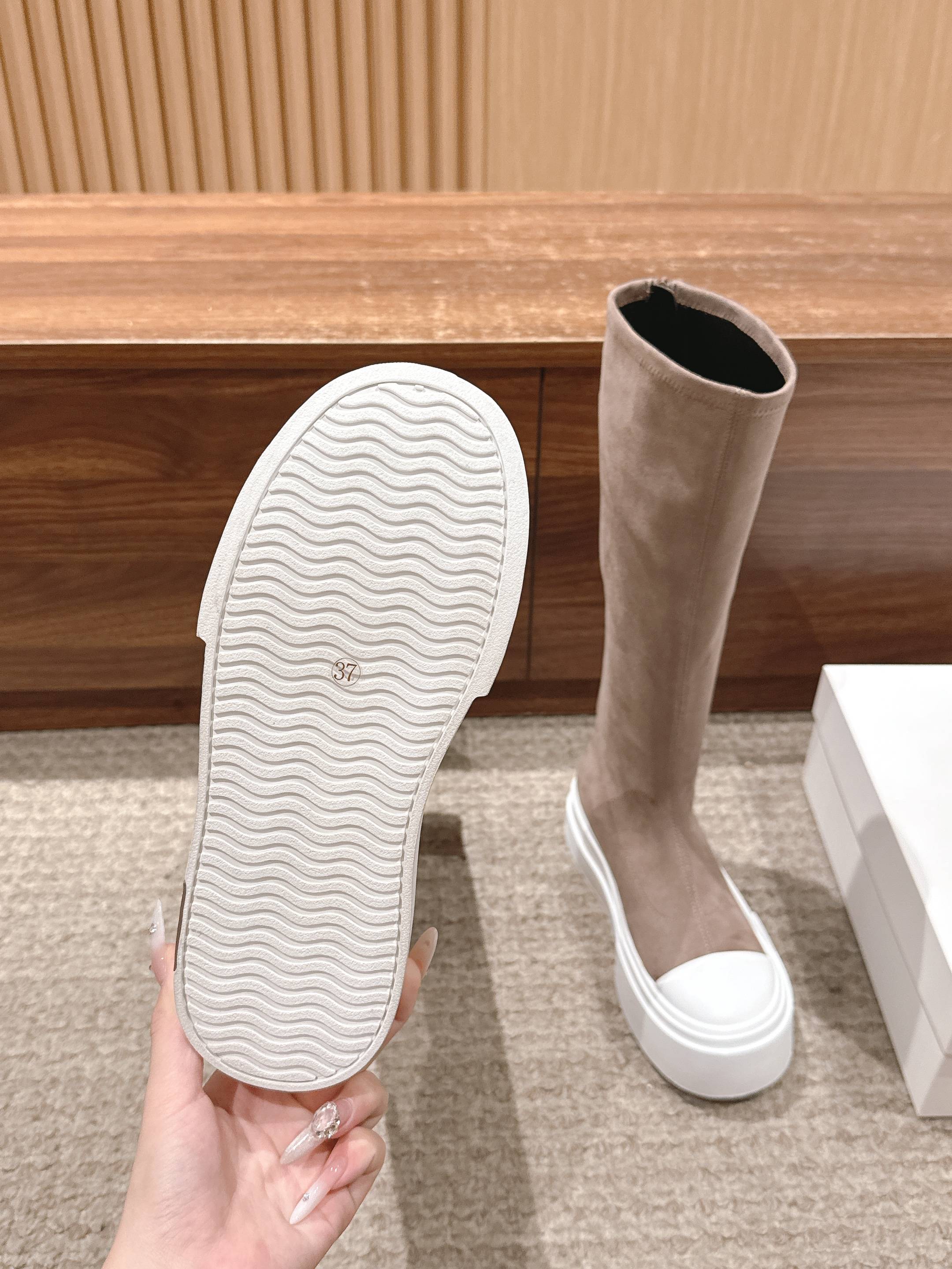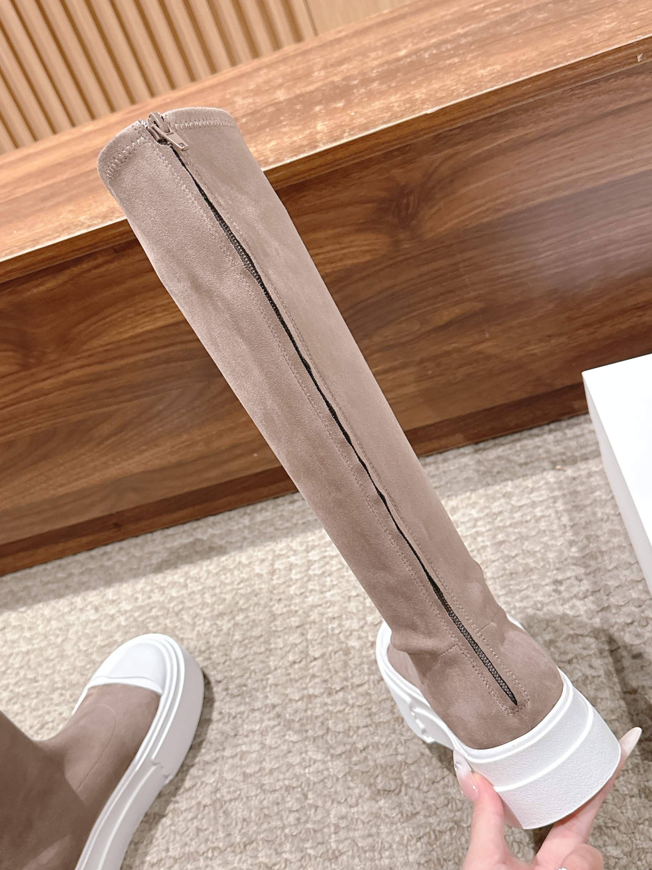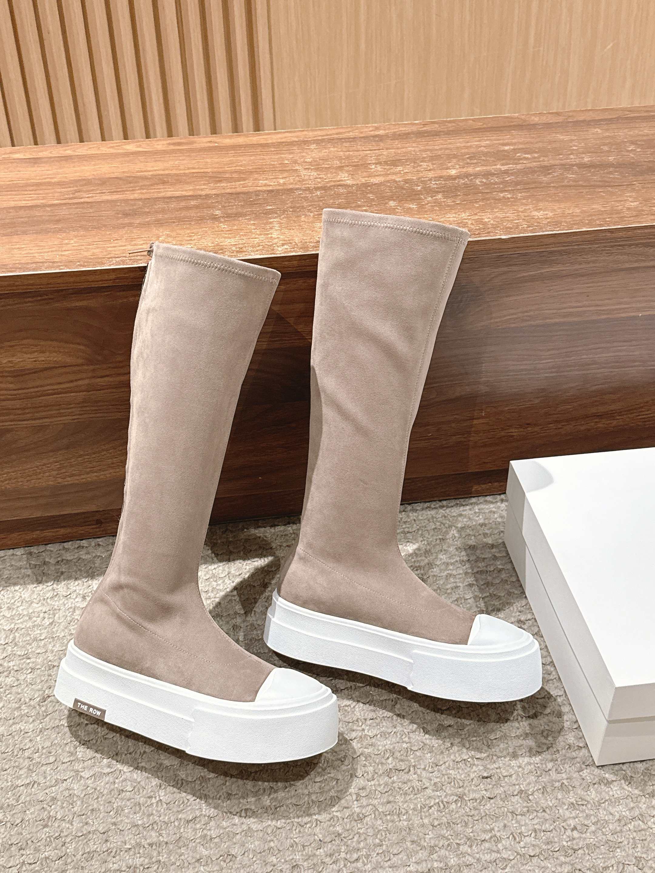 The Row Thick-soled Classic Knee-high Boots Light Brown White Suede 444172