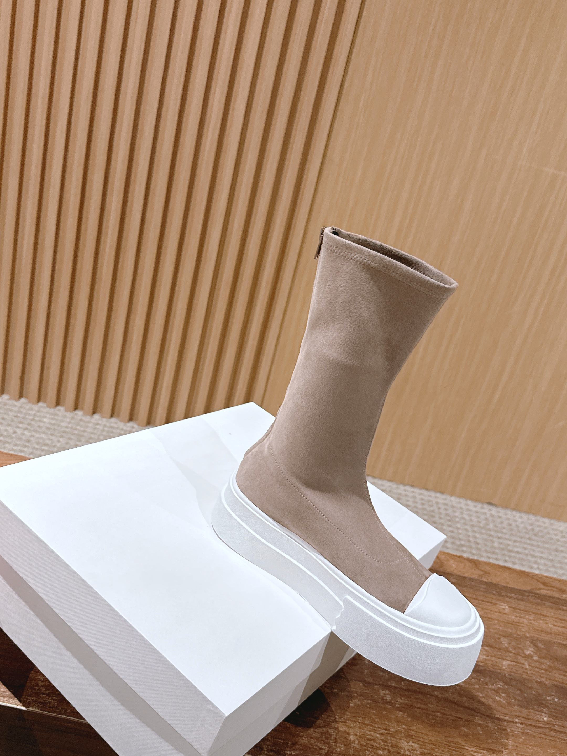 The Row Thick-soled Classic Round Toe Stretch Boots Light Brown White Suede 444174