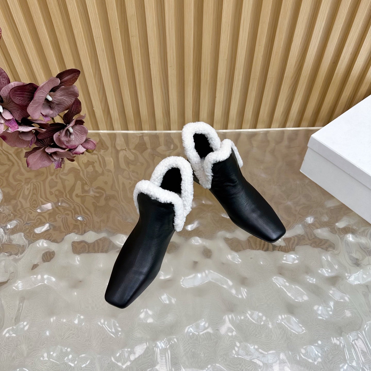 The Row Mules 50mm Black Sheepskin 324739