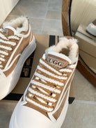 UGG Casual Sports Sneakers Brown White Suede Wool Rubber 512824