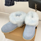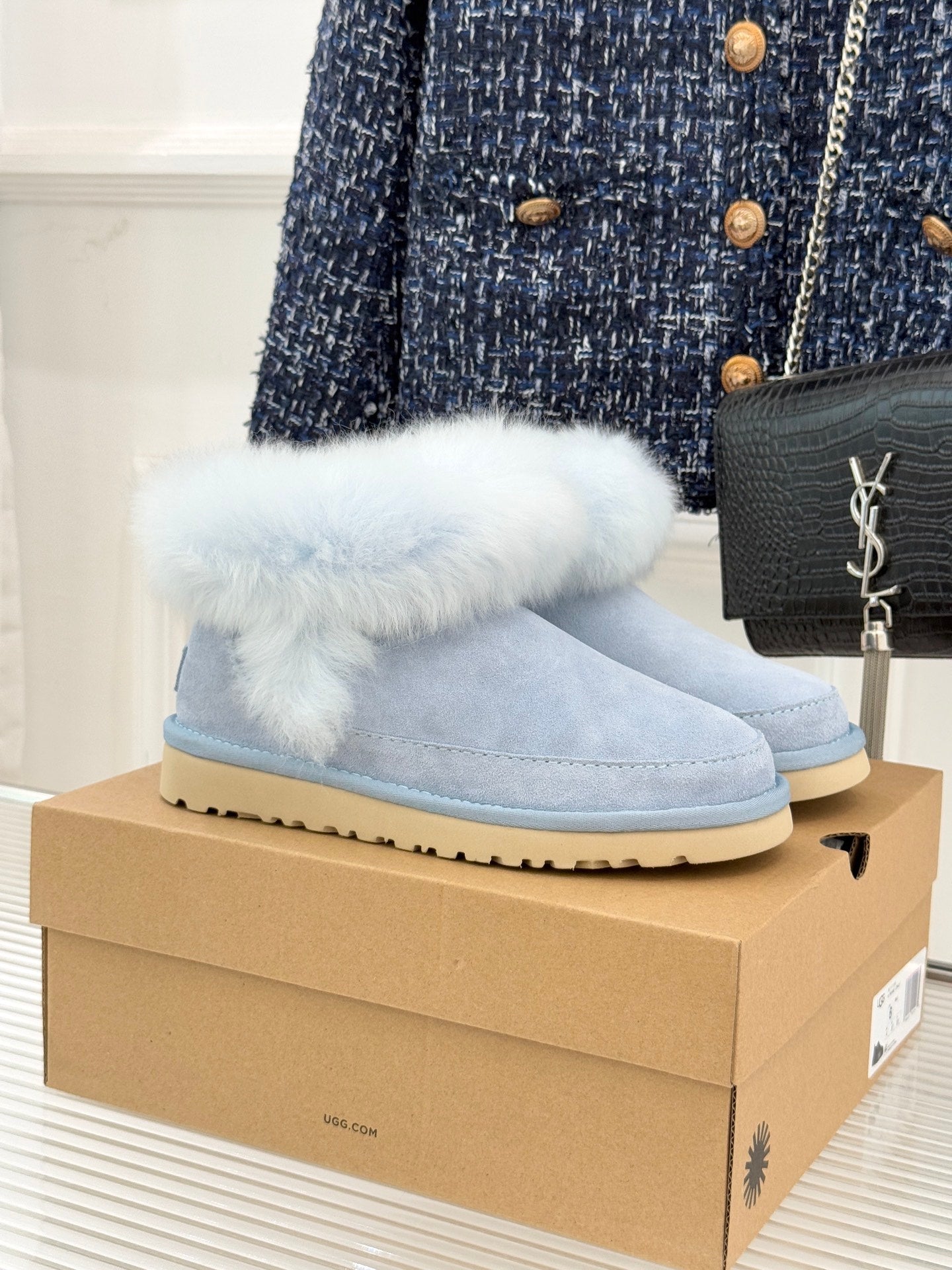 UGG Classic Ultra Mini Chalet Boots Light Blue Suede Sheepskin Cuff 517487