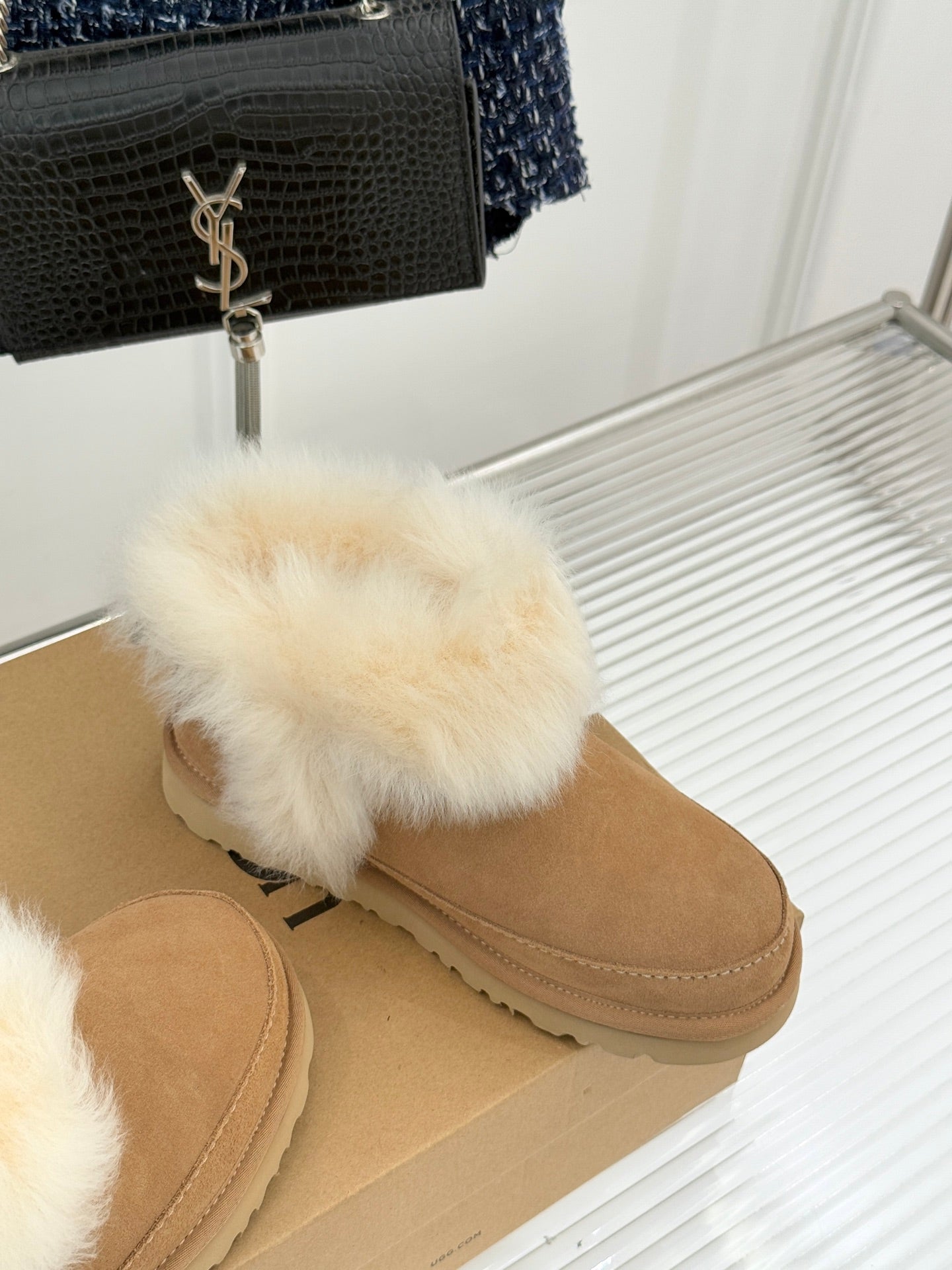 UGG Classic Ultra Mini Chalet Boots Warm Brown Suede Sheepskin Cuff 517488