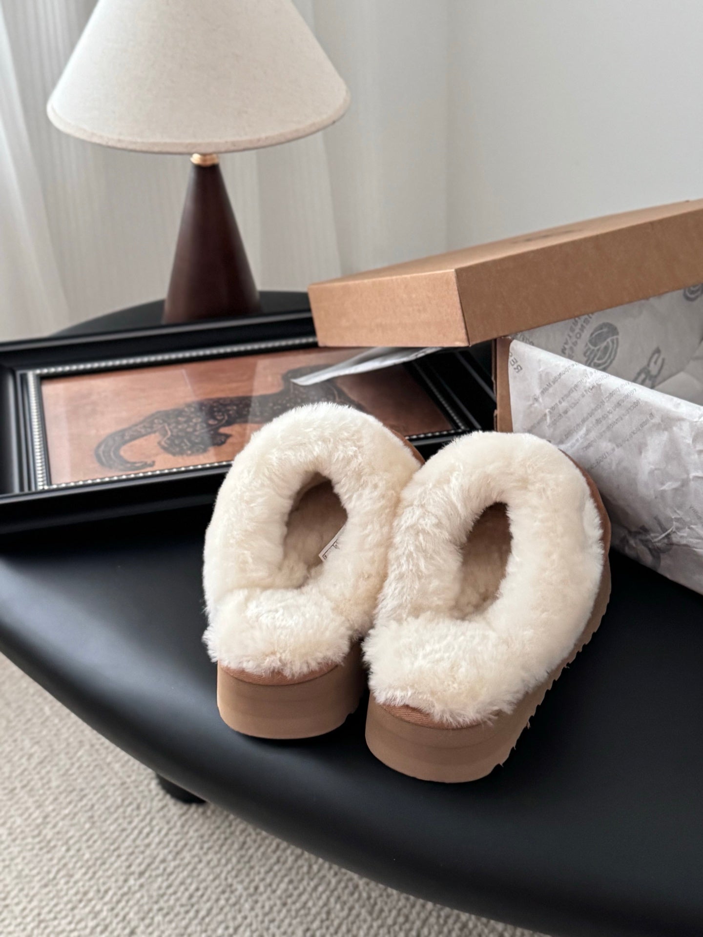 UGG Disquette Slippers Brown White Wool Suede 508052