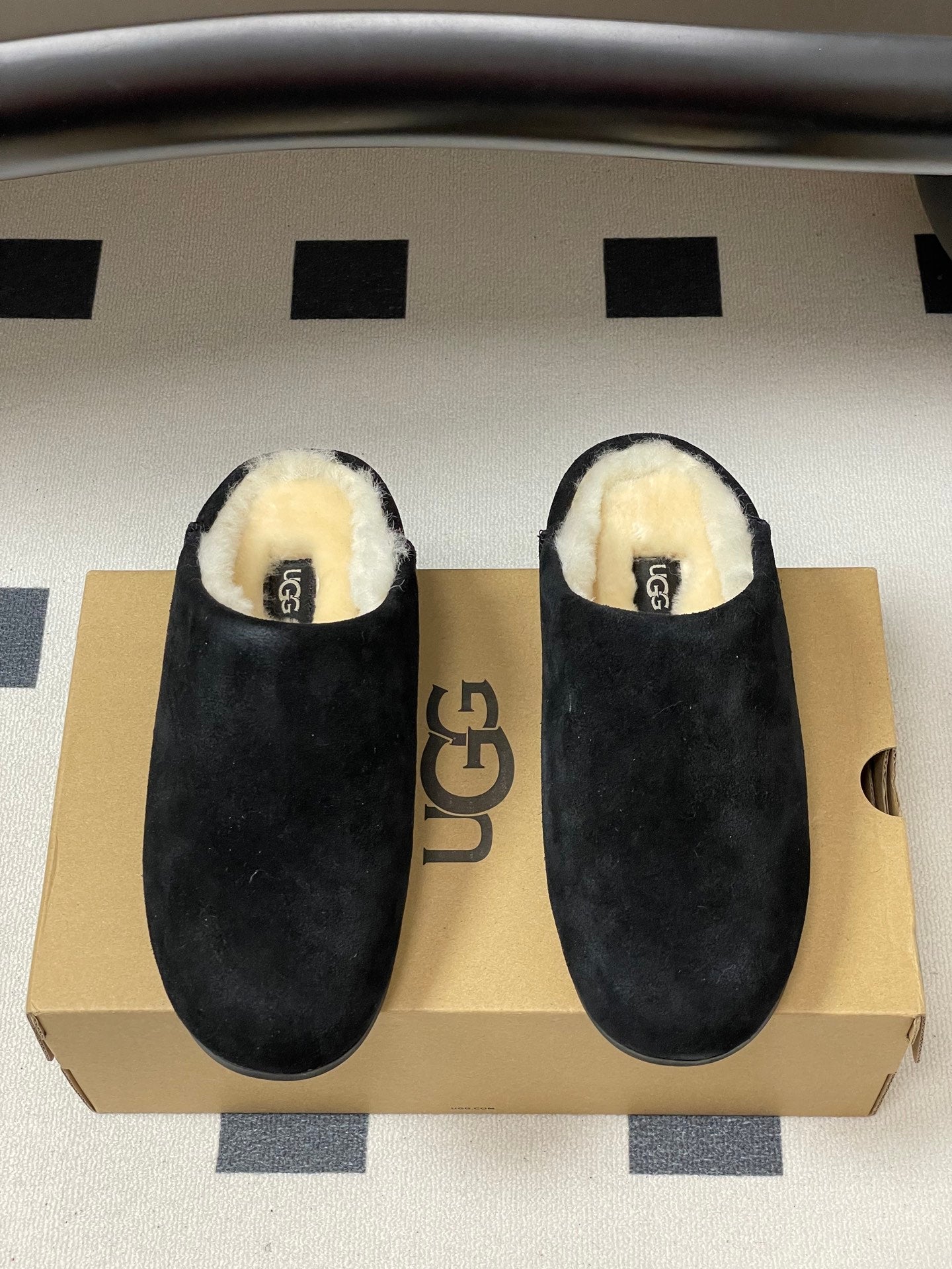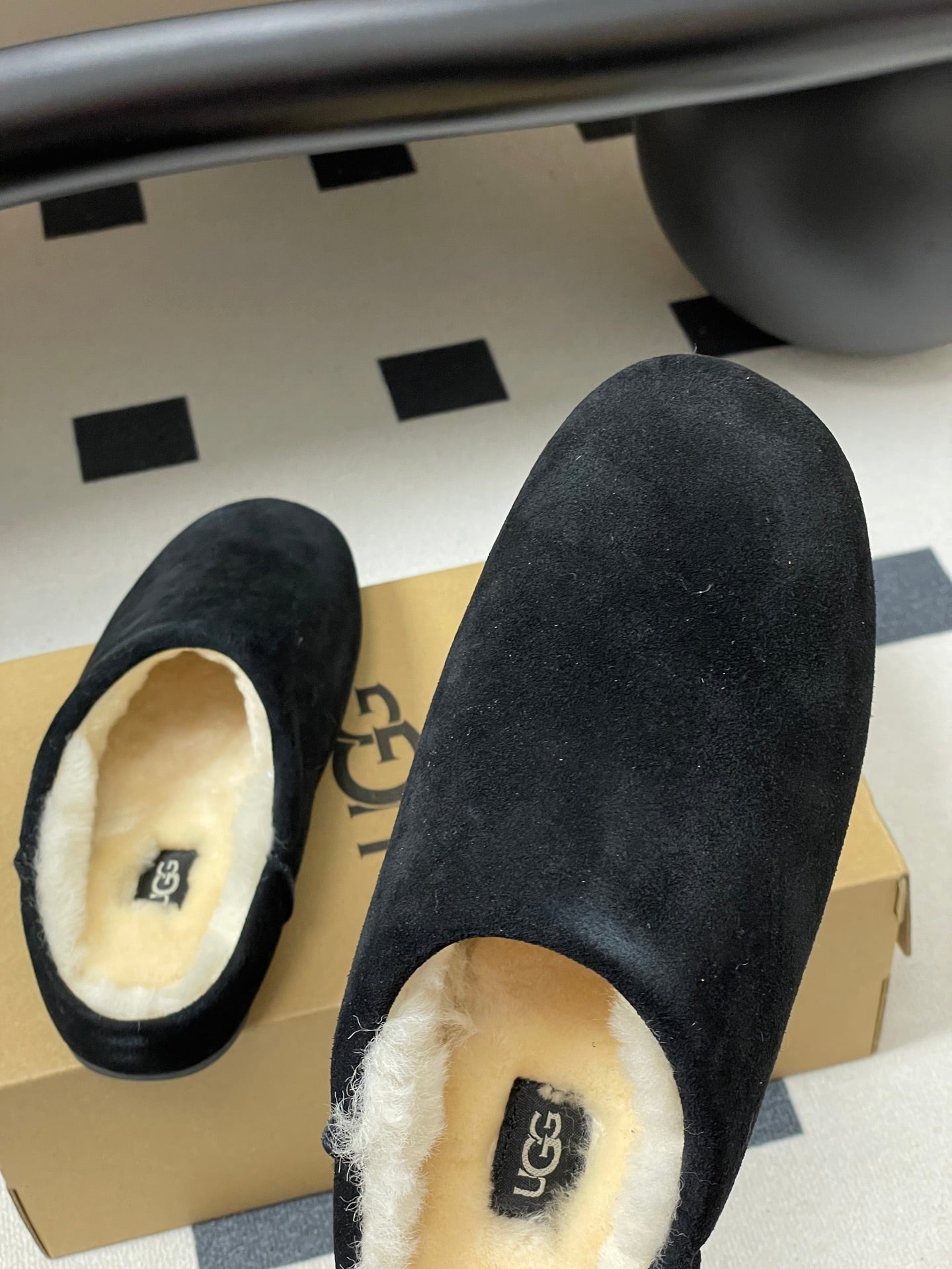 UGG Elea Slip-On Sandals Black Wool Suede 525949