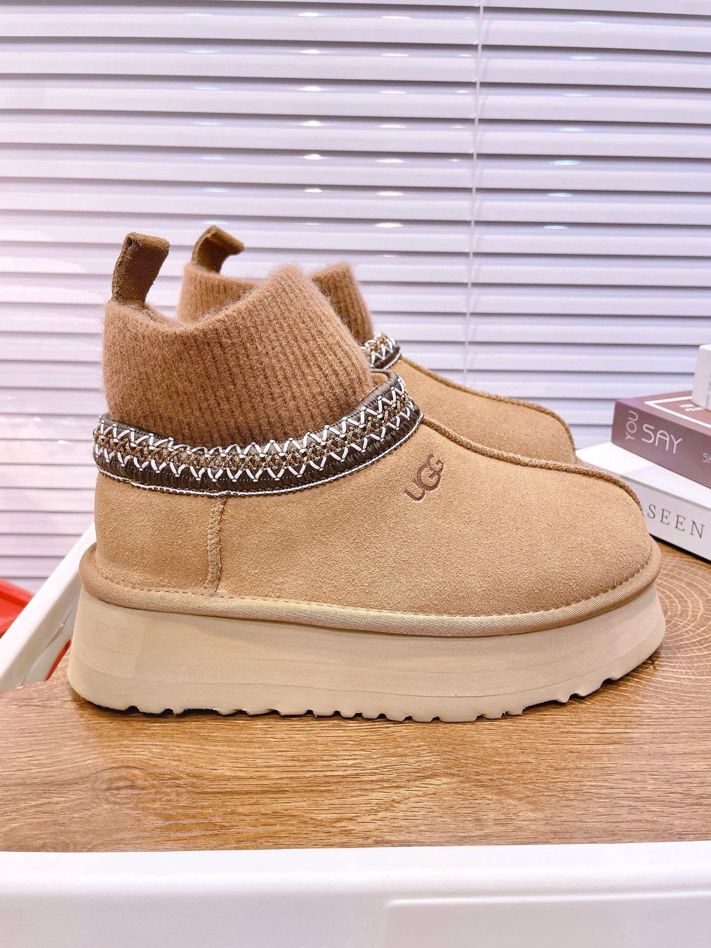 UGG Tazz Platform Boots Light Brown Frabic Suede 512867