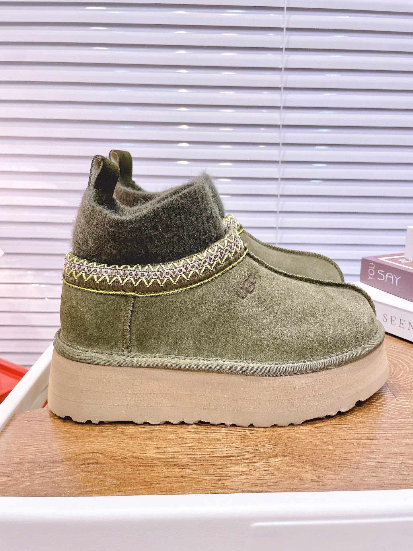 UGG Tazz Platform Boots Olive Green Frabic Suede 512864
