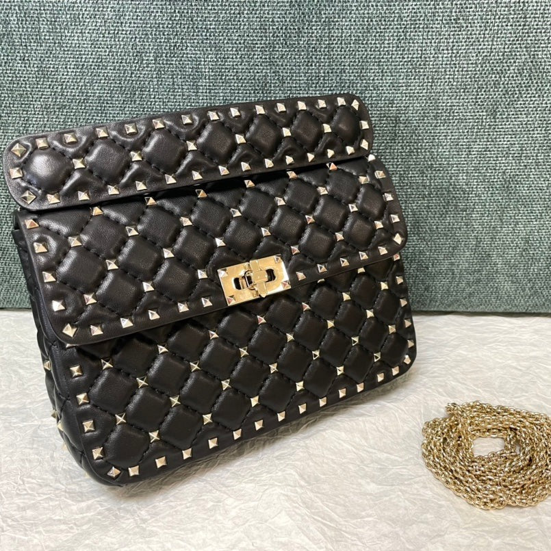 garavani rockstud spike medium 24cm black lambskin gold hardware