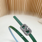 VL Belt 8mm Buckle Silver Diamond Leather Green Cloud Blue