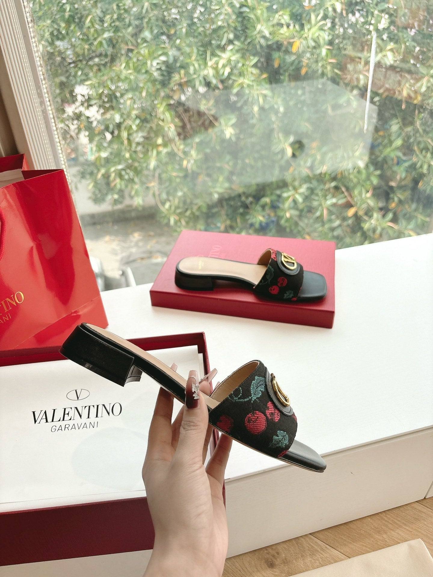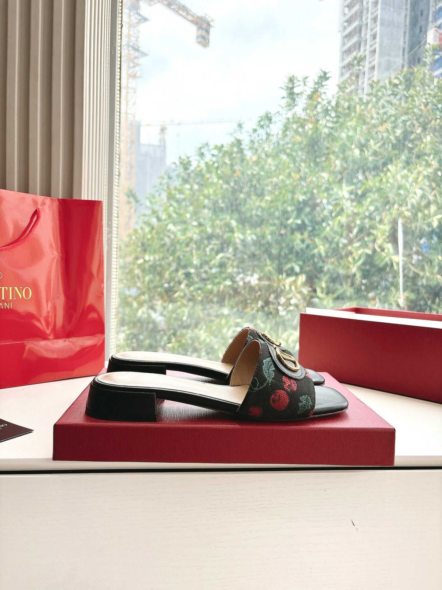VT 25 Cherryfic Leather Trimmed Slides Black Sheepskin 286496