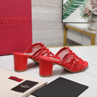WOMEN'S BLACK ROCKSTUD CHERRY RED MESH SLIDER SANDAL WITH MATCHING STUDS 65 MM